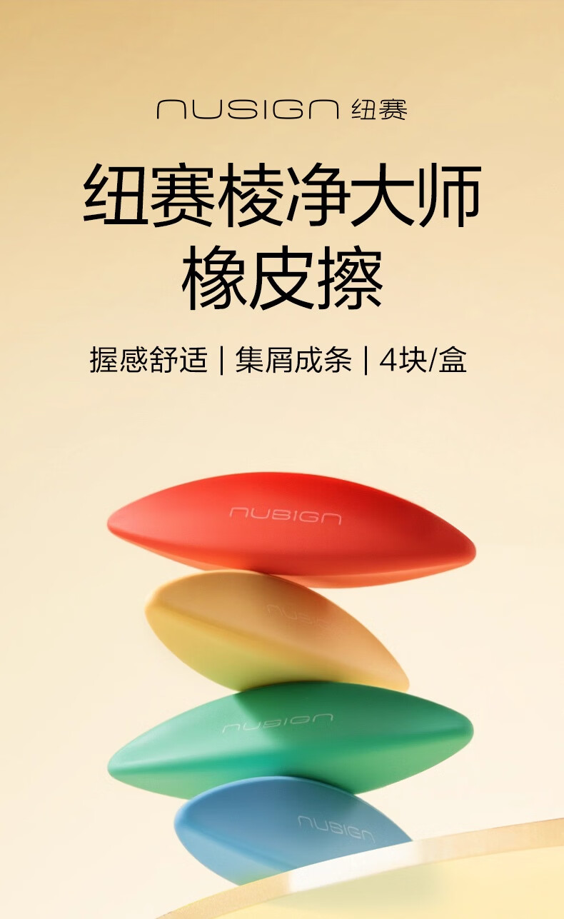 得力【棱净大师】纽赛真集屑三角棱形橡皮小学生专用无屑擦字成线橡皮擦安全无毒 【棱净大师】4桶16块装