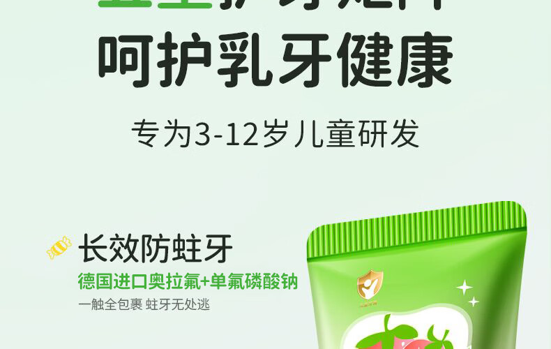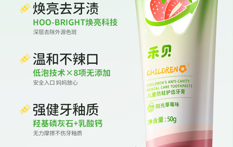 禾贝(HOOLBEY)儿童奥拉氟牙膏3-12岁草莓味防蛀固齿预防龋齿温和不辣口50g