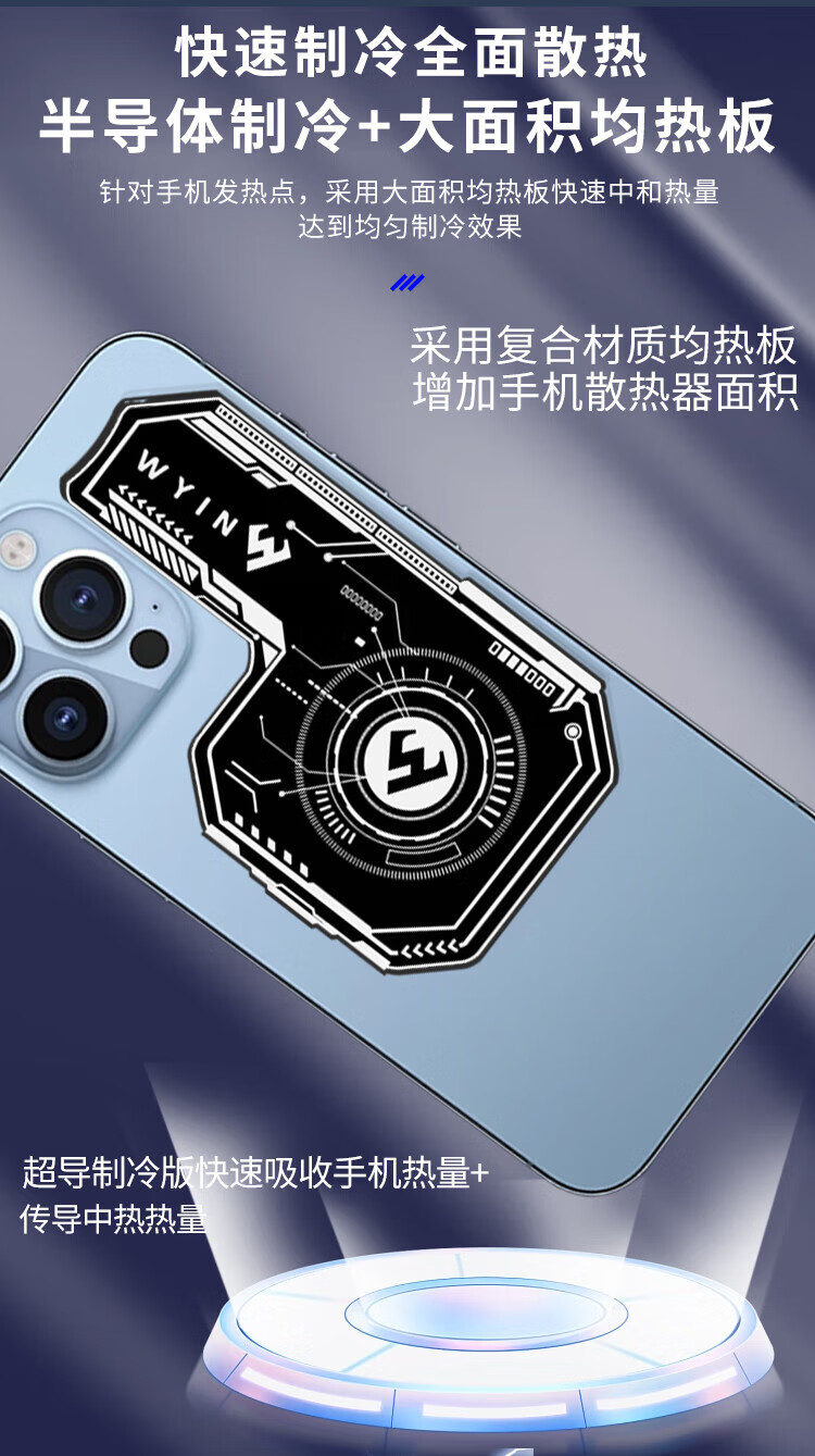 武影子 武影子2025新款X5三档温控结冰散热器可数显可关灯智能温控 武影子X5(全银指套+背夹+磁吸片)