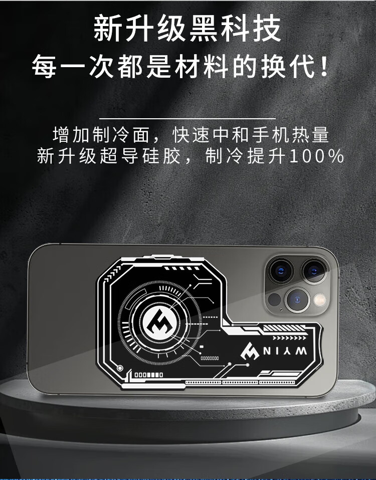 武影子X7新款智能AI温控散热器手机平板专用散热器可结冰可温控 武影子X7「黑色」(全银指套+背夹+磁吸片)