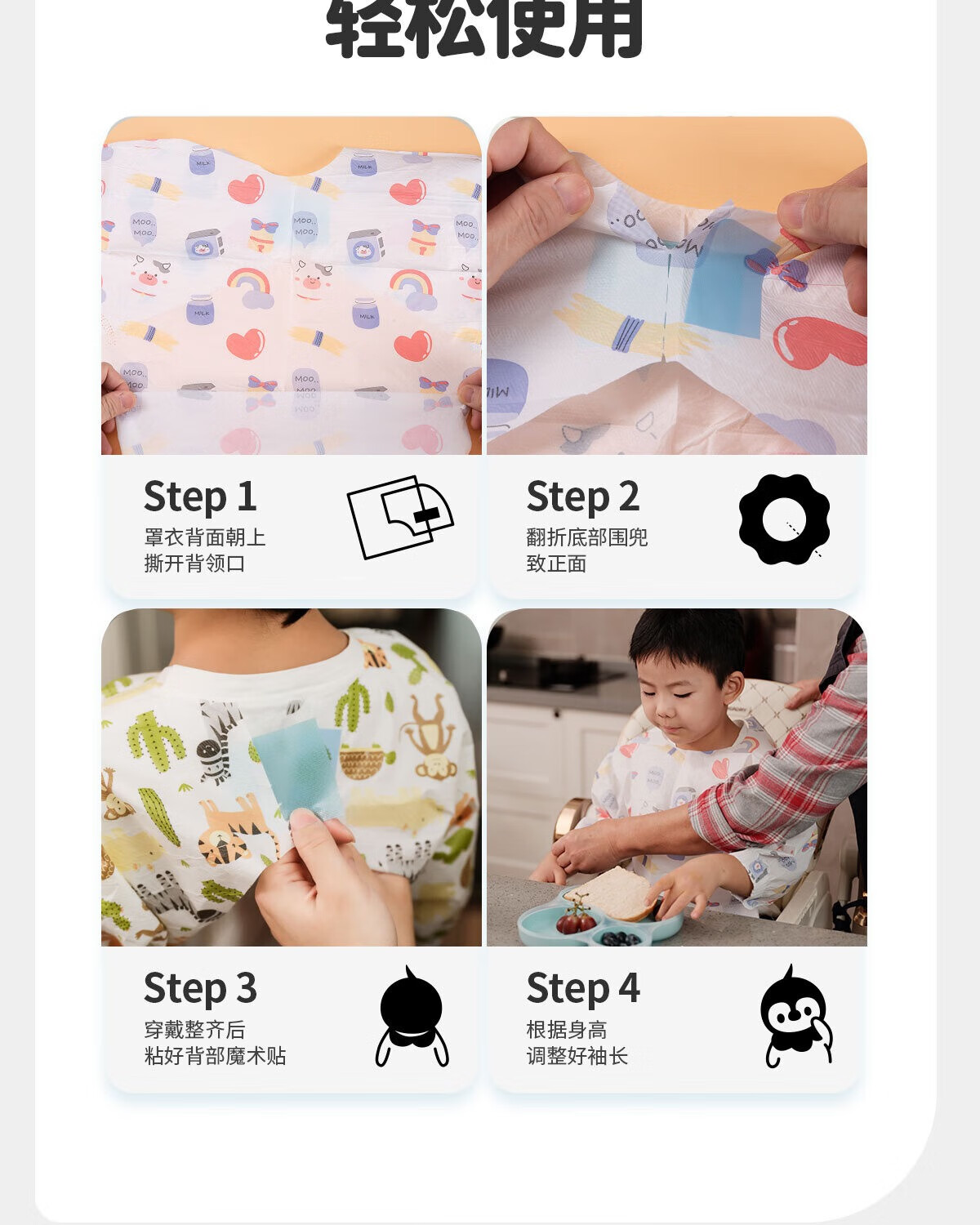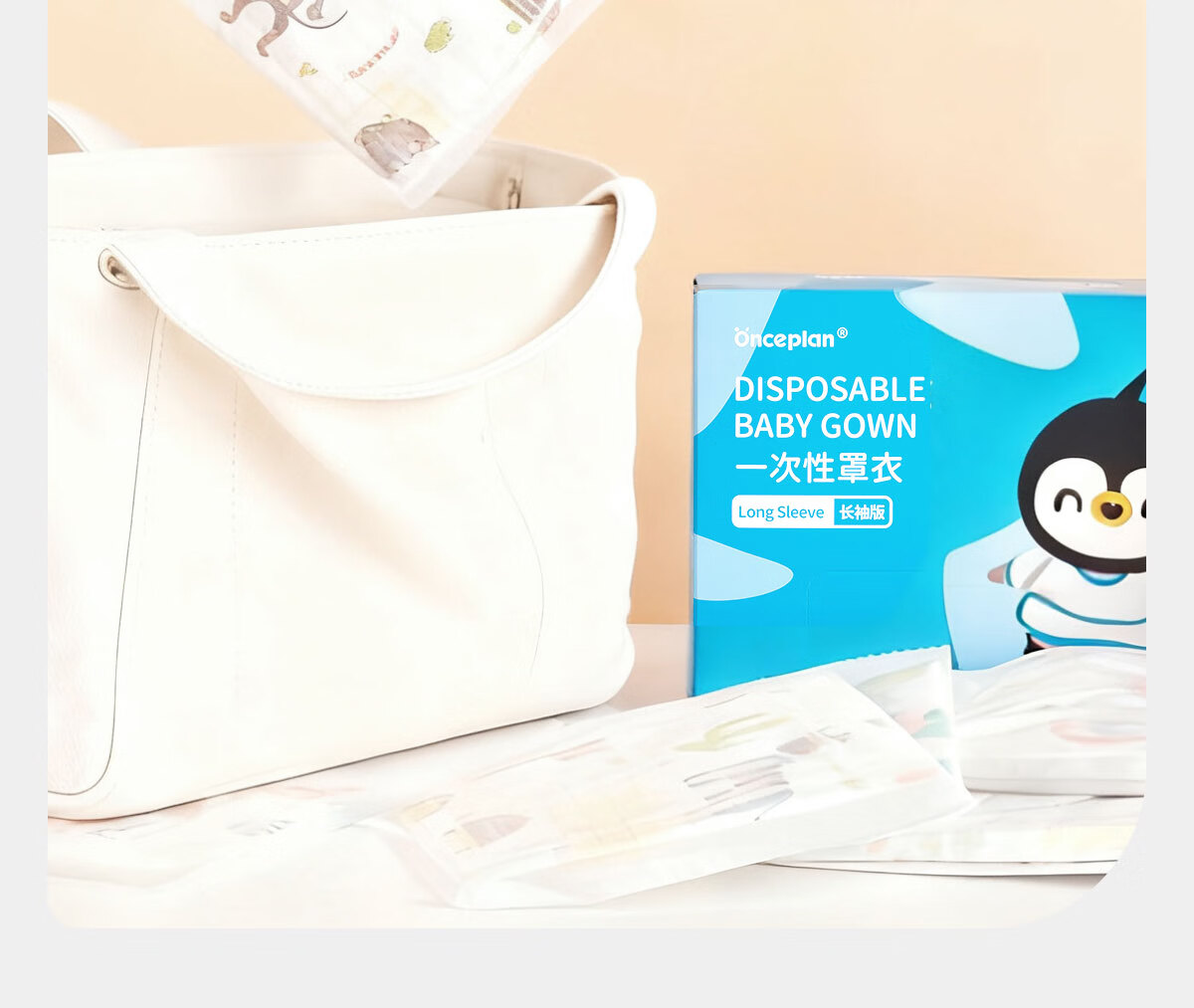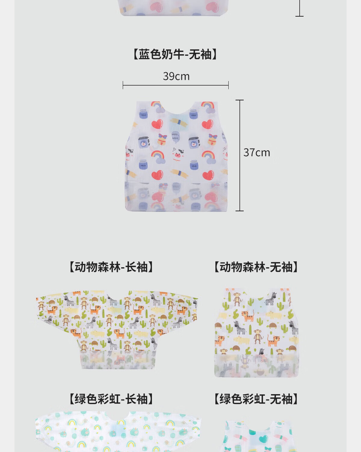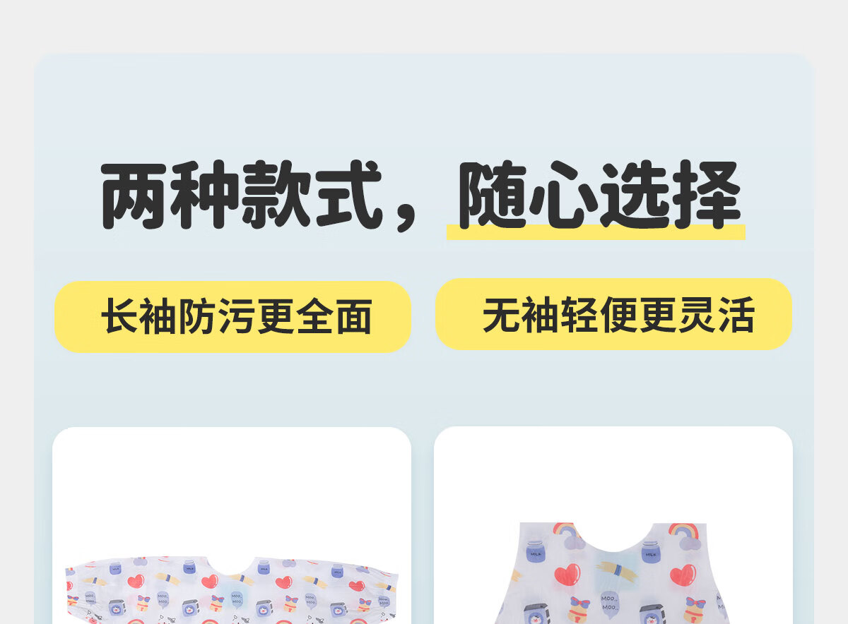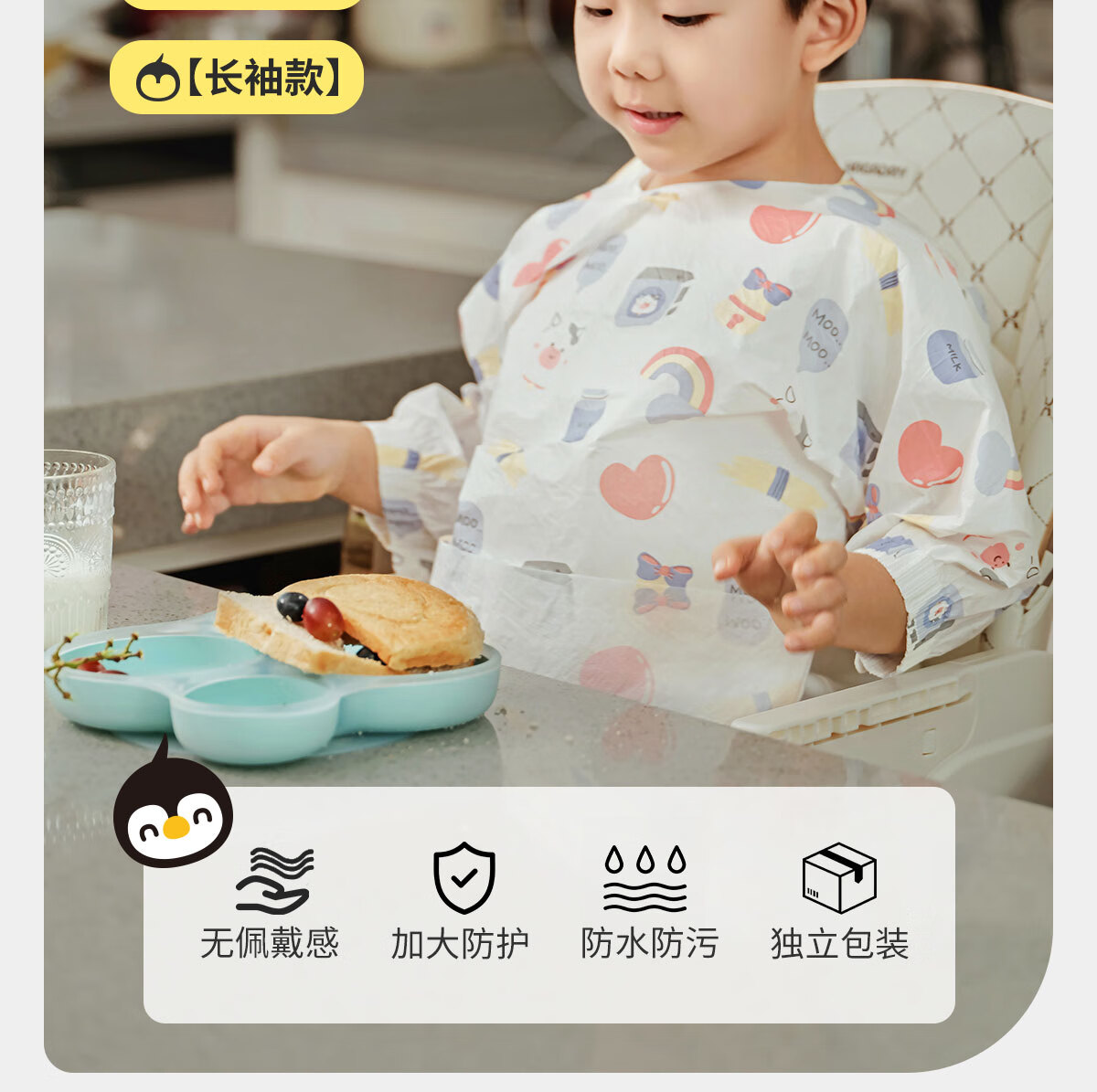 ONCEPLAN初计划一次性罩衣婴童吃饭围兜喂饭防水围裙宝宝辅食围嘴反穿衣 【10片独立装】动物森林-长袖