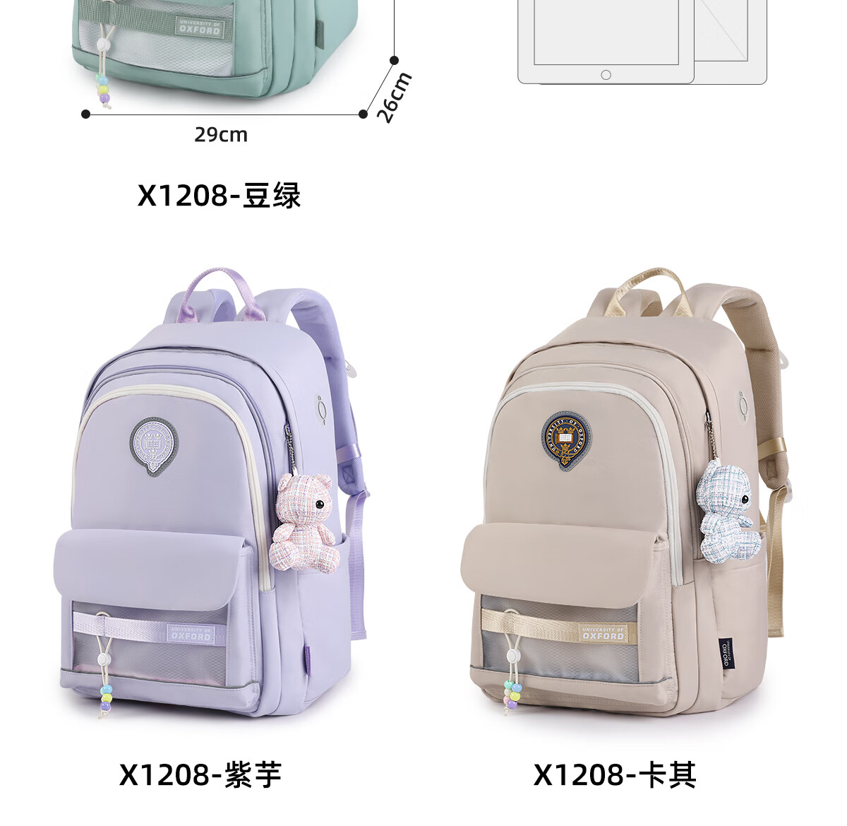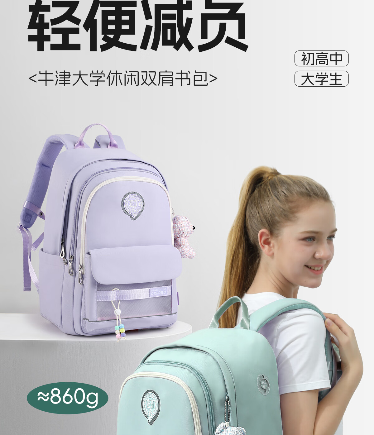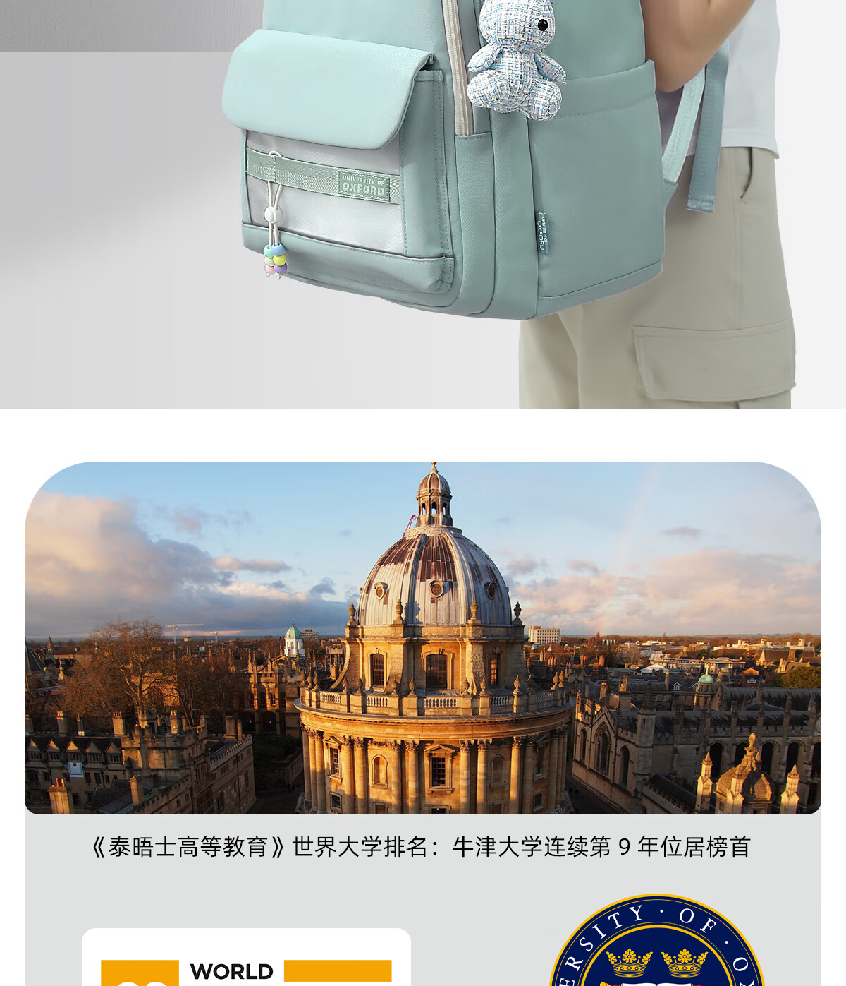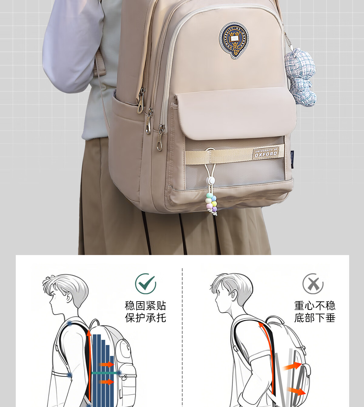 UNIVERSITY OF OXFORD牛津大学初中生书包女生2025年新款轻便减负大容量双肩包高颜值 X1208卡其 35L/适合初中生-大学
