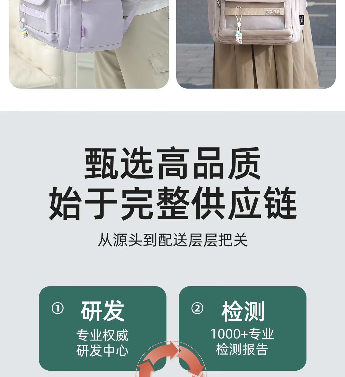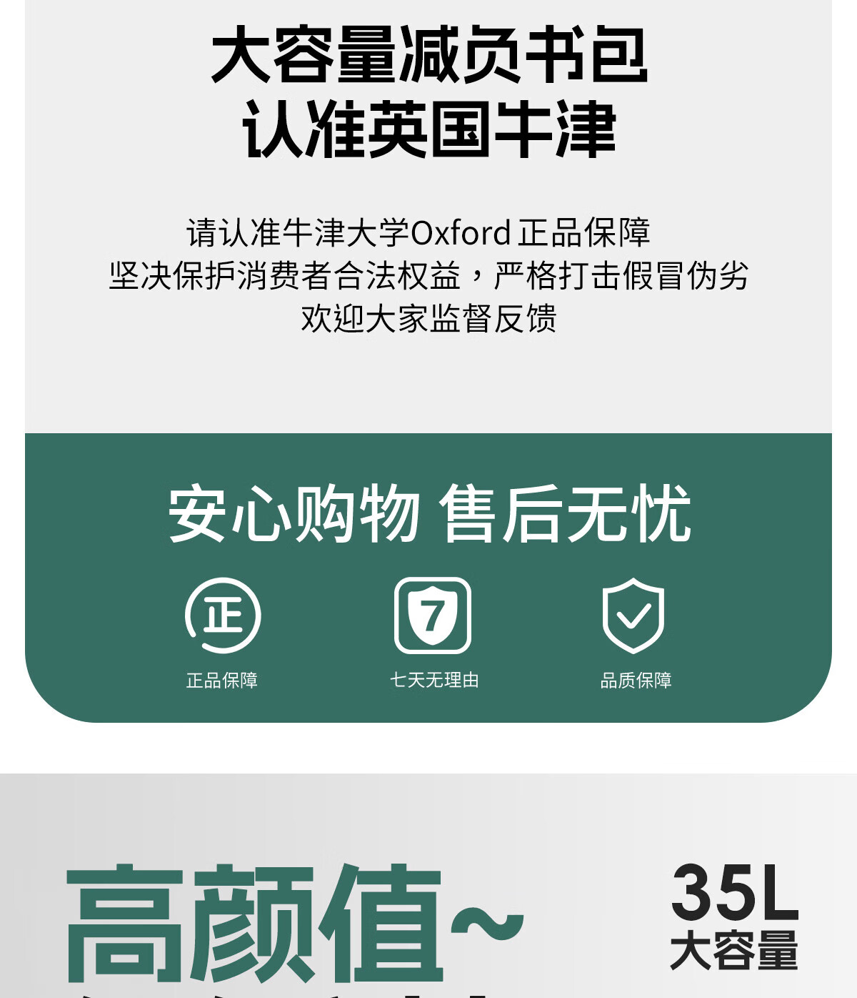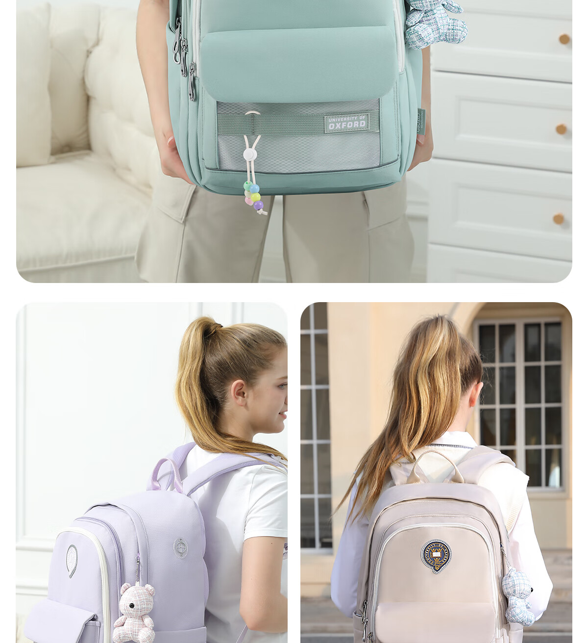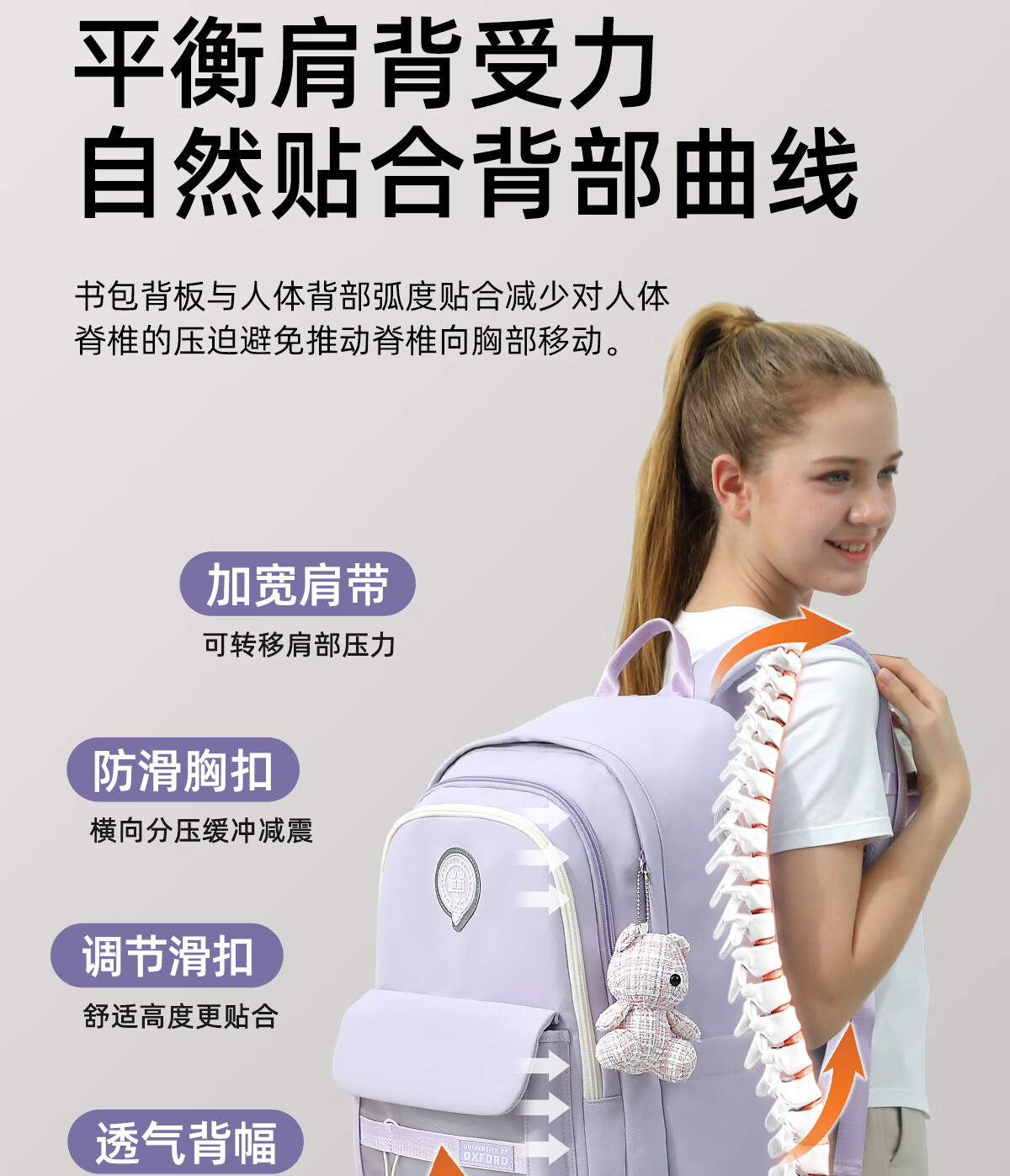 UNIVERSITY OF OXFORD牛津大学初中生书包女生2025年新款轻便减负大容量双肩包高颜值 X1208卡其 35L/适合初中生-大学