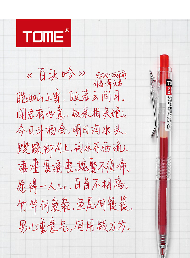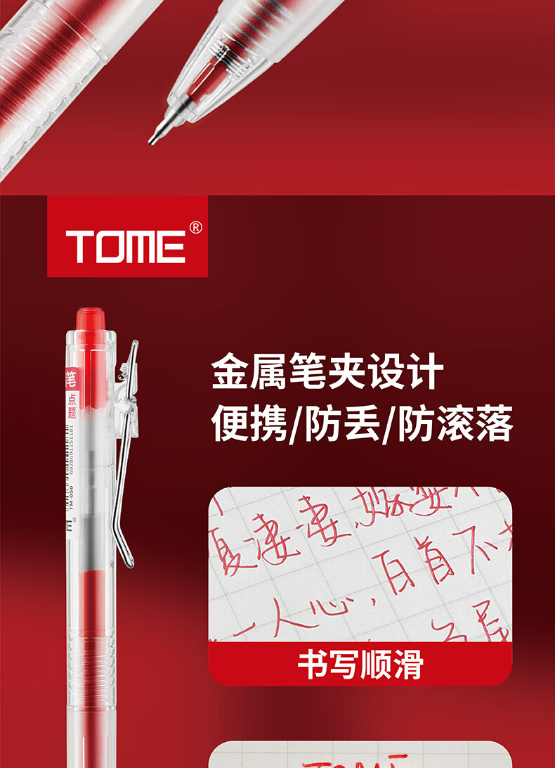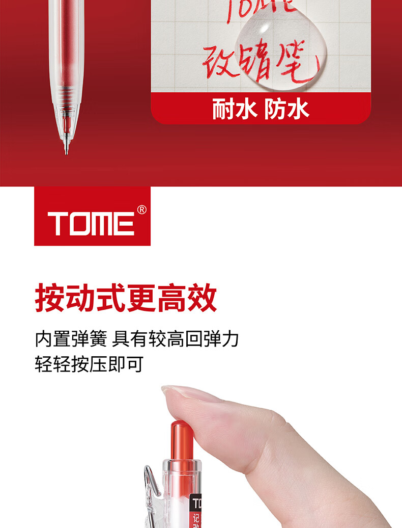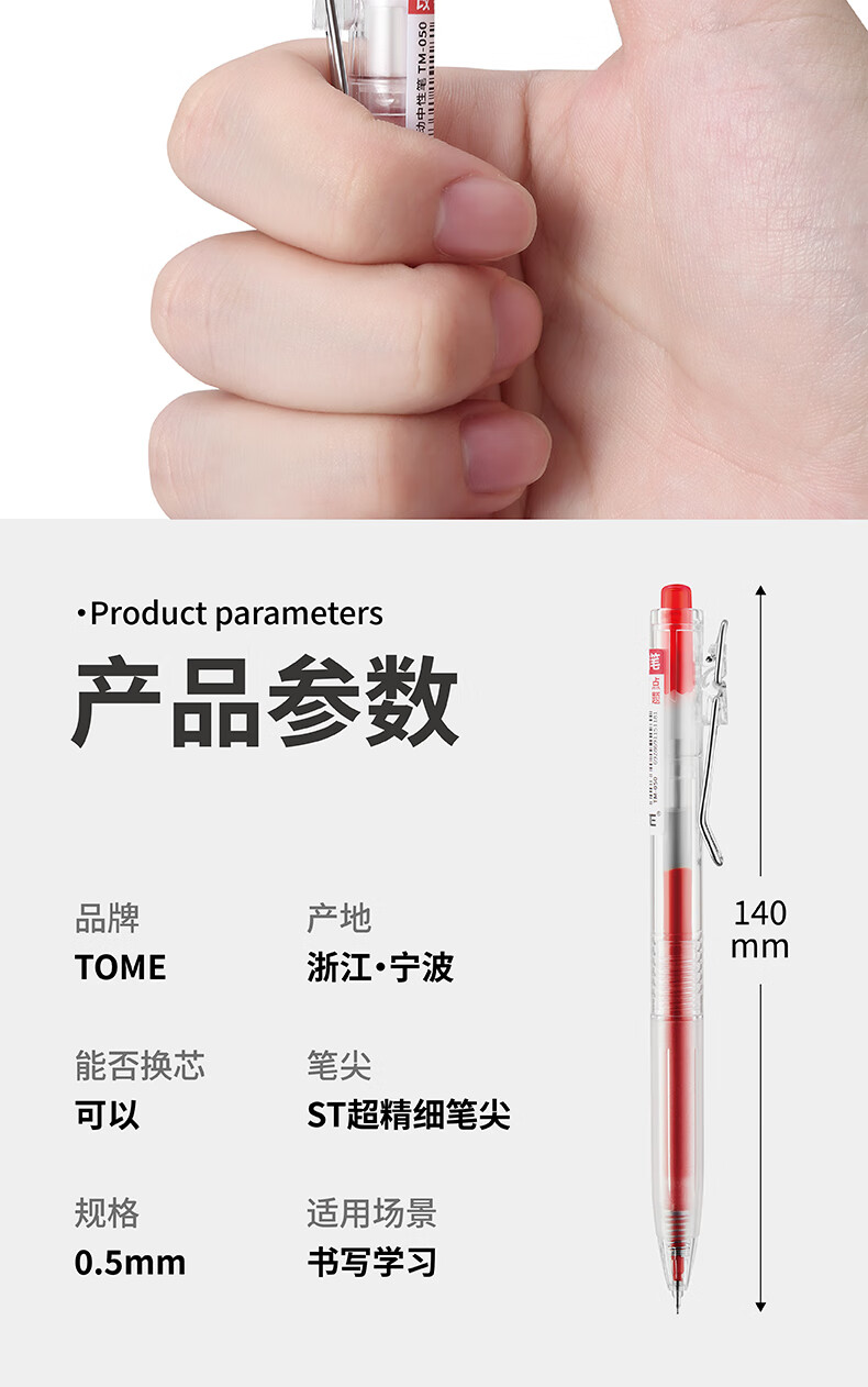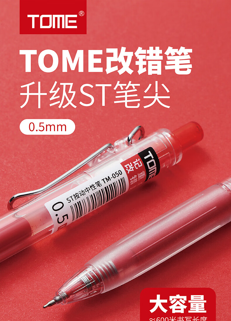 TOME红笔050高颜值st笔芯0.5学生老师批改作业专用红色中性笔按压式水笔可替换芯红笔芯 050红笔【3支】+5支原装红笔芯