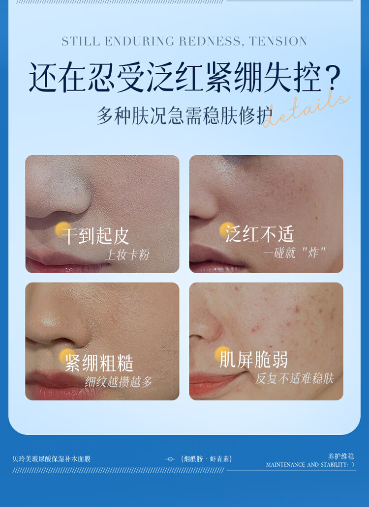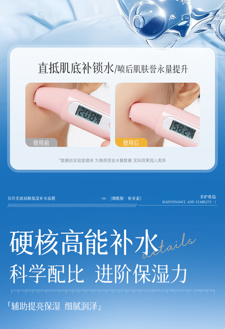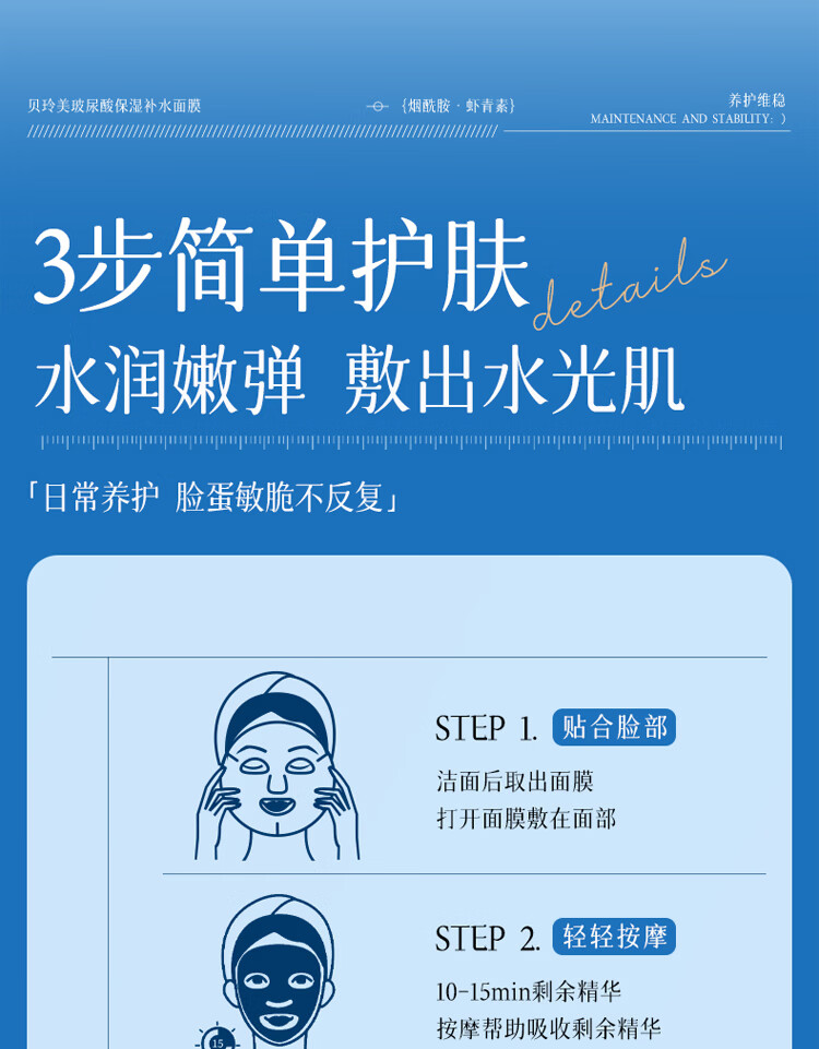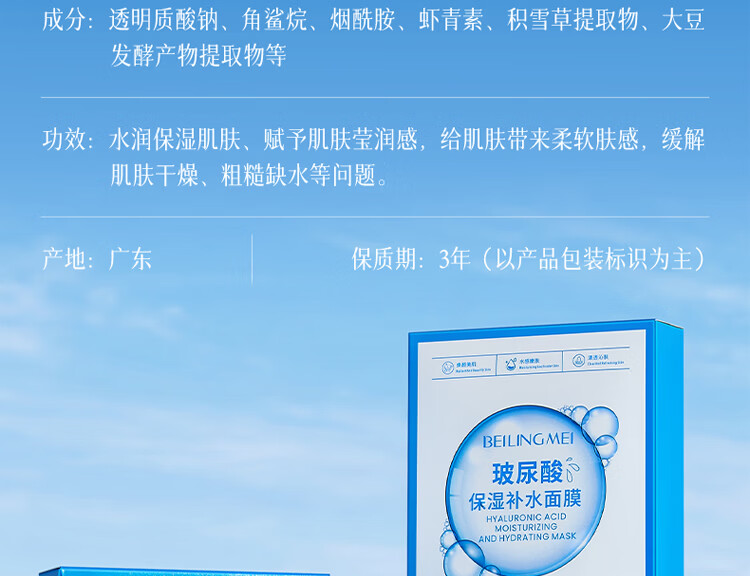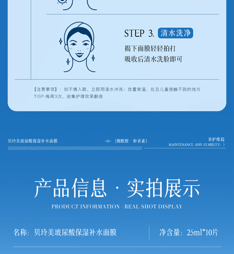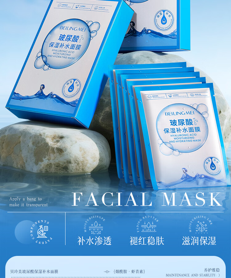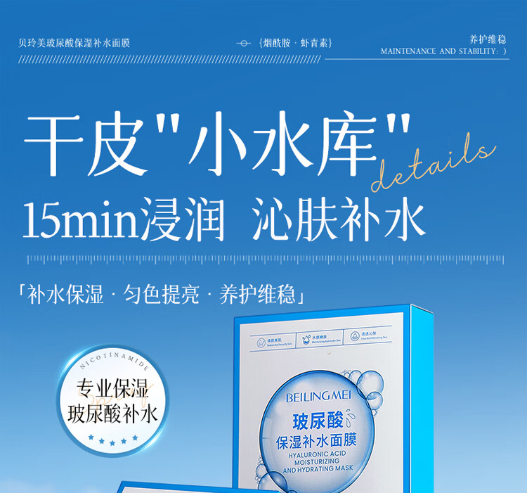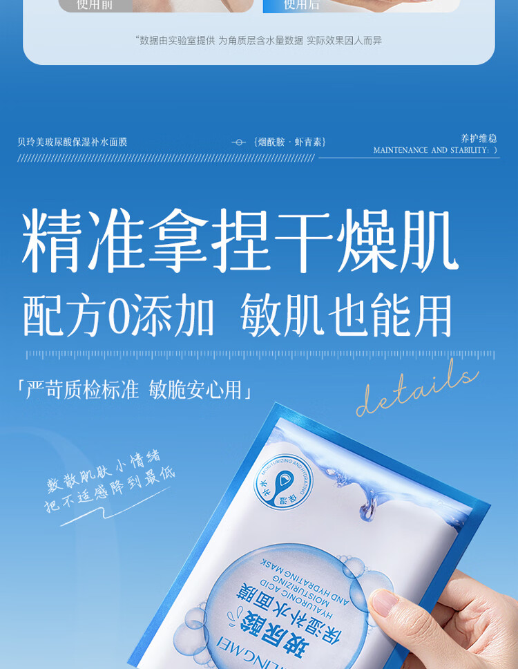 贝玲美玻尿酸补水保湿面膜贴补水保湿男女面膜护肤品 【补水保湿】补水面膜30片