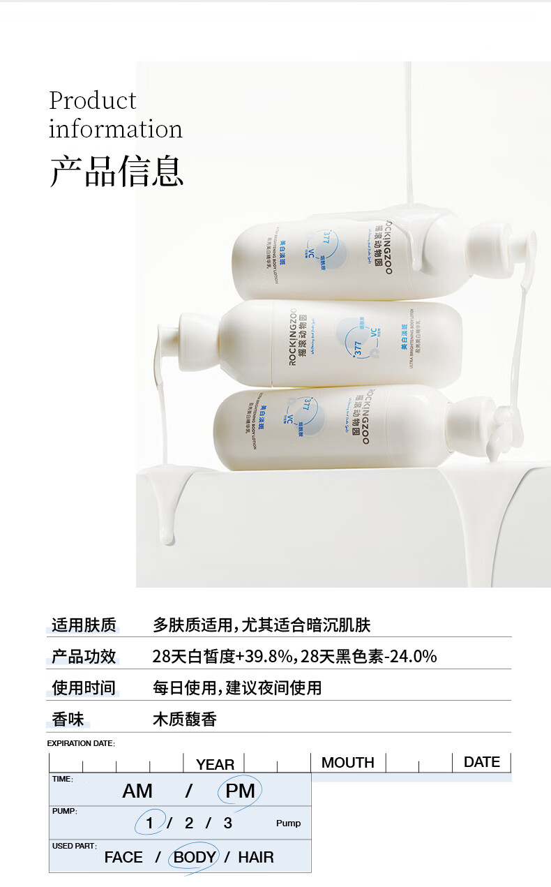 摇滚动物园清爽不粘腻身体乳亲肤丝滑木质香淡斑盈亮美白精华乳教师节礼物 盈亮美白精华乳(软管) 100g 1支