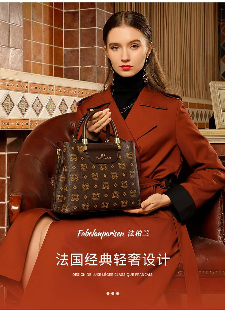 法柏兰[礼盒装]新年礼物品牌女包经典时尚大气原创设计休闲斜挎手提包x 【富婆太太都在用】复古咖色