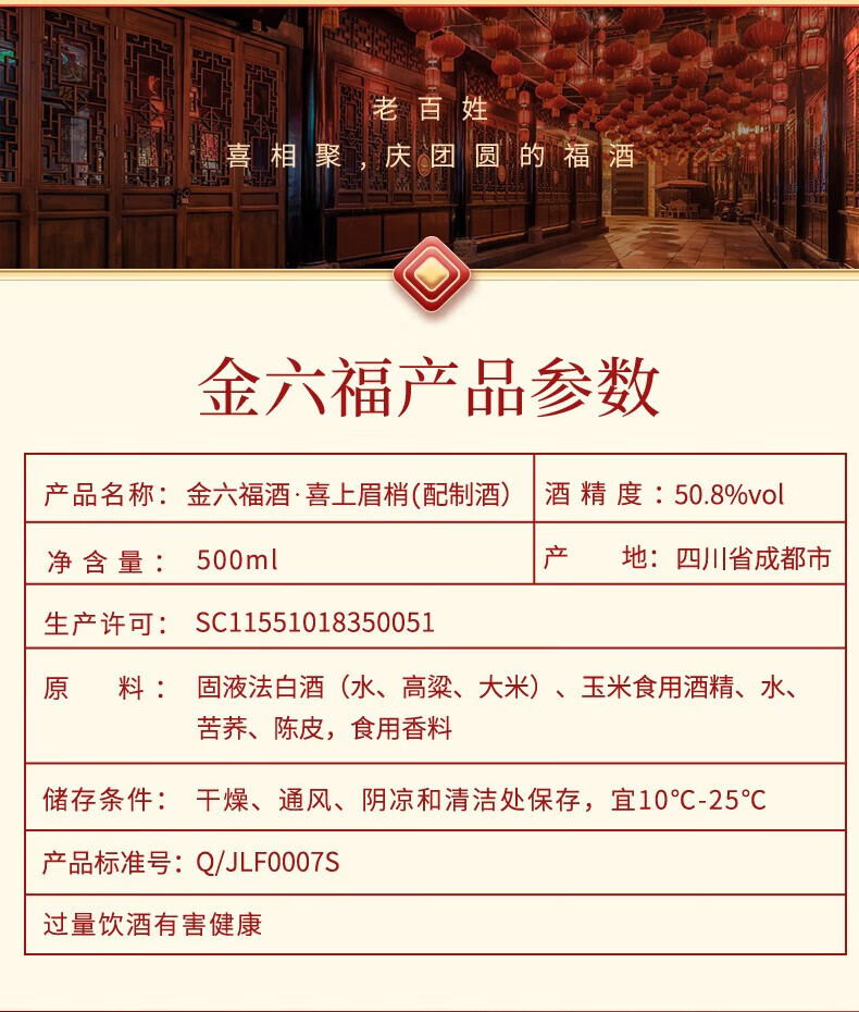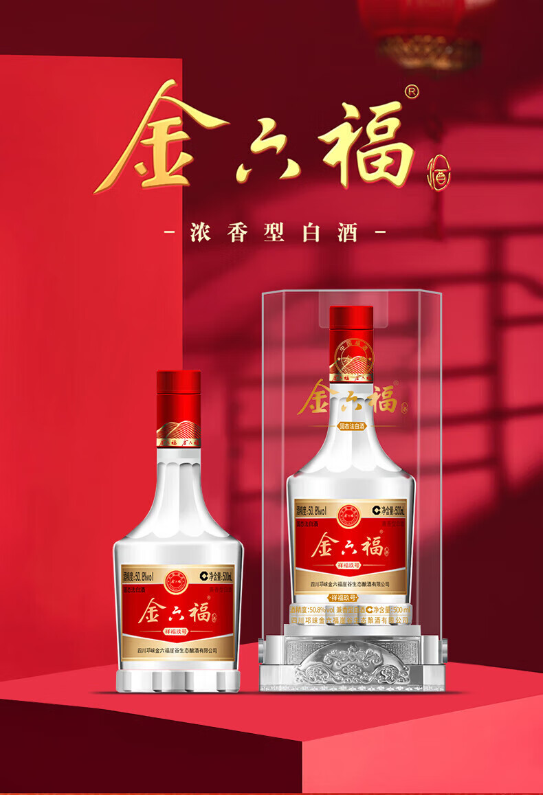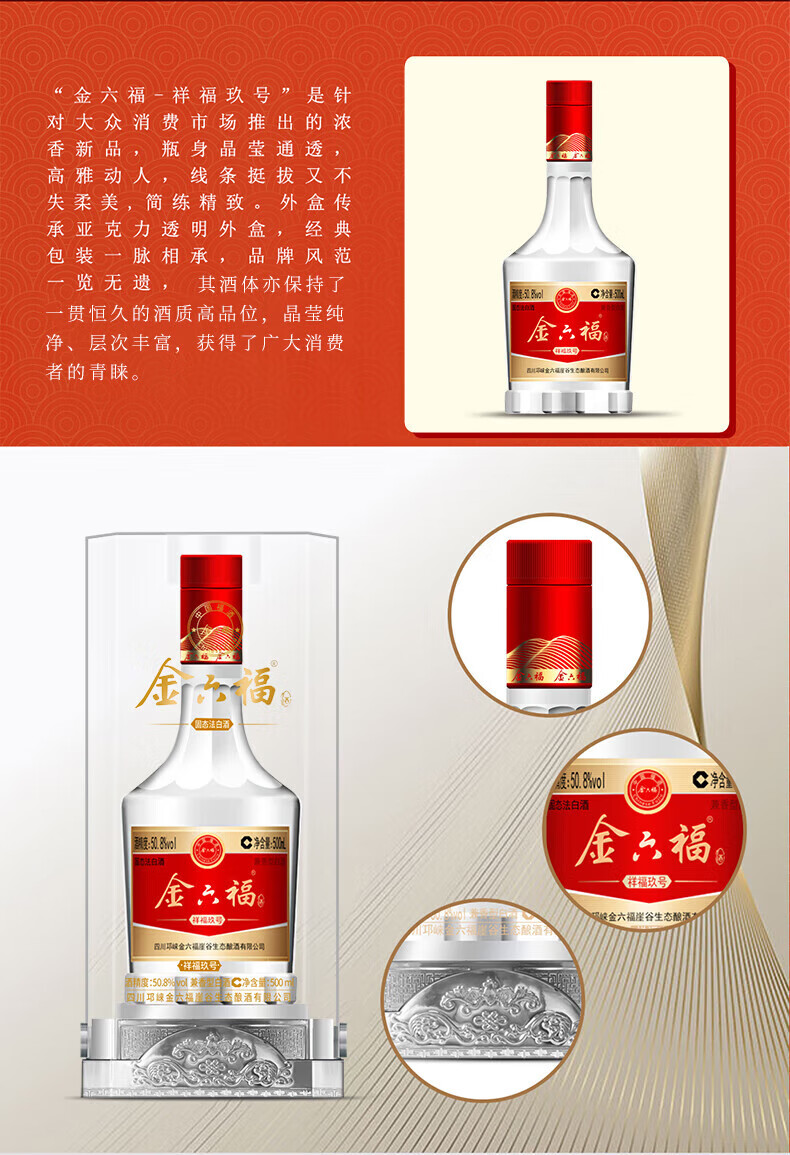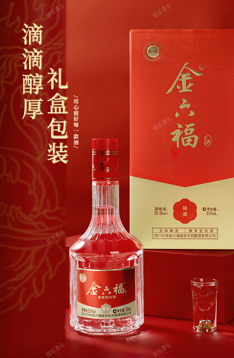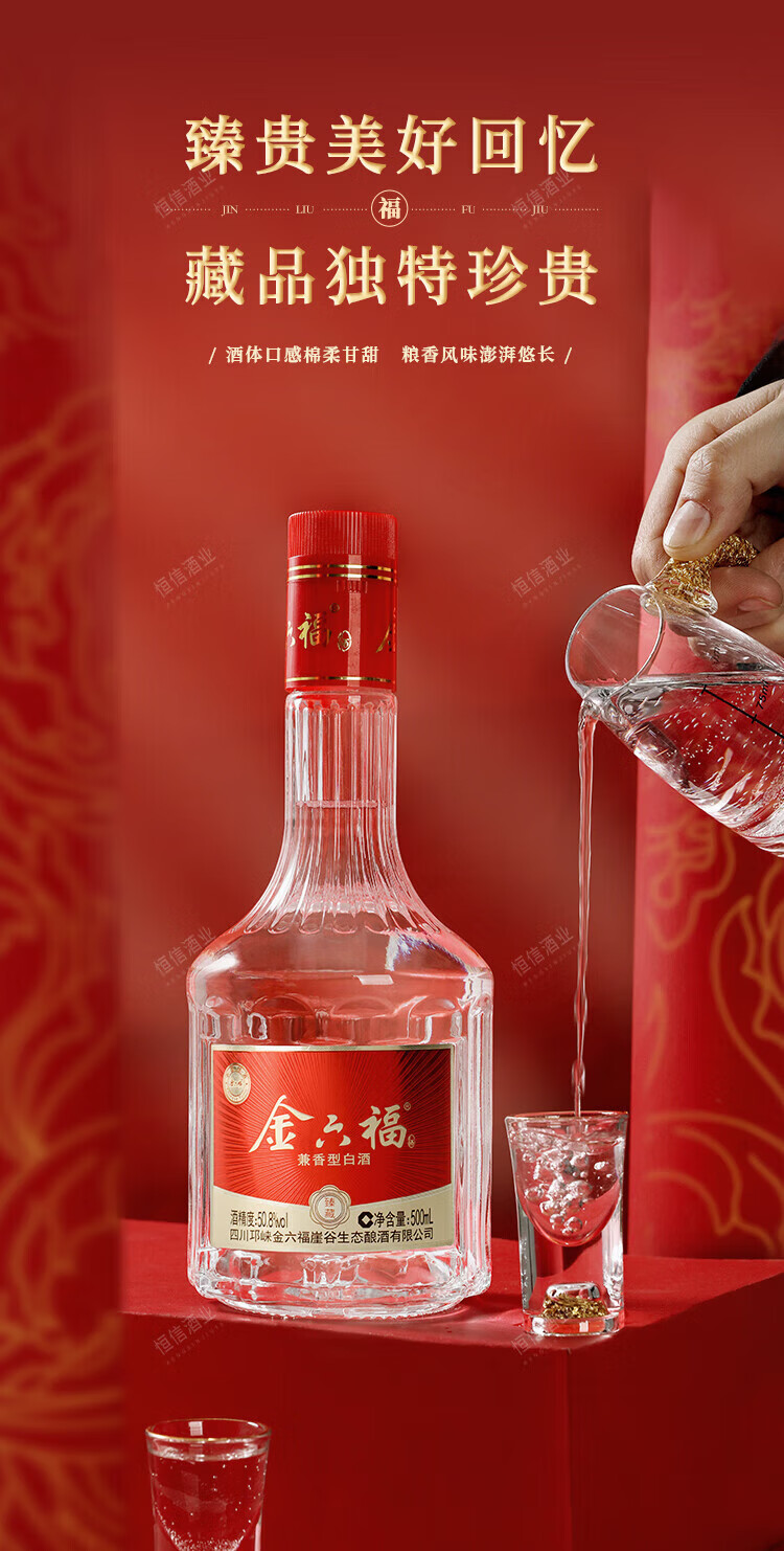金六福【官方正品】金六福兼白酒香型聚会节日高端粮食白酒喜酒粮食酒 50.8度 500mL 6瓶 金六福事事鸿福