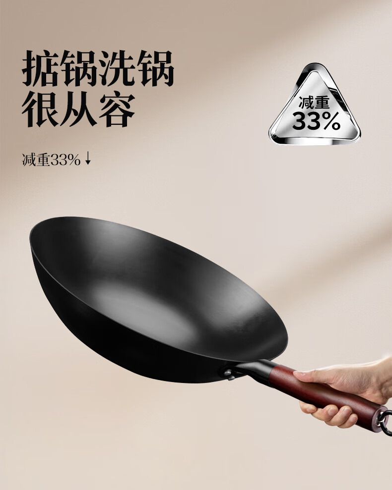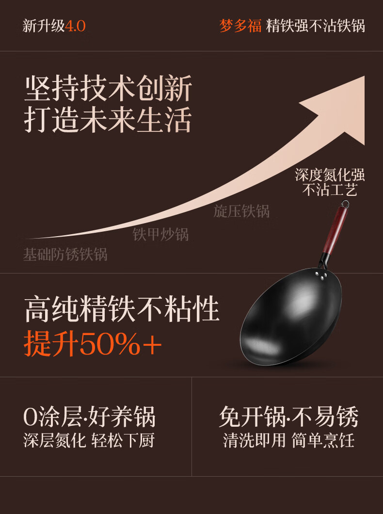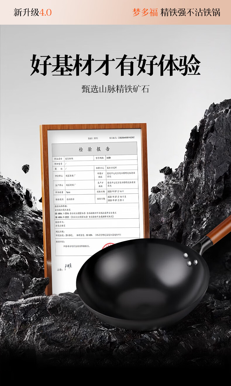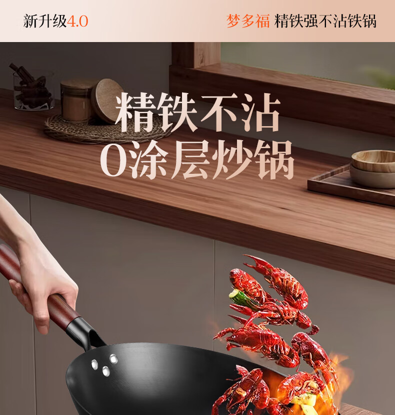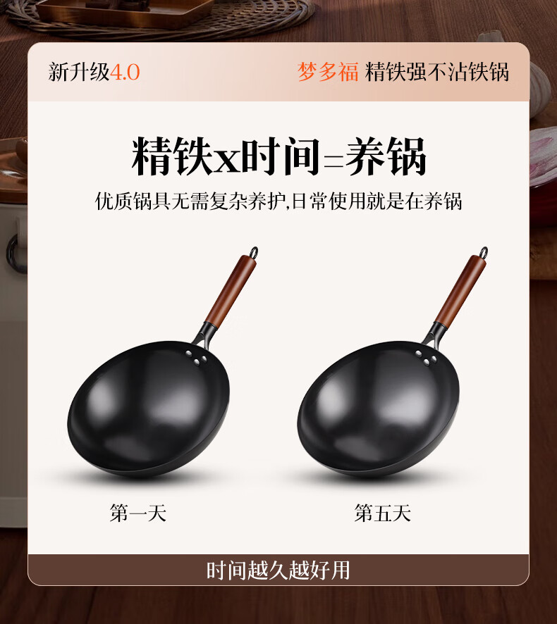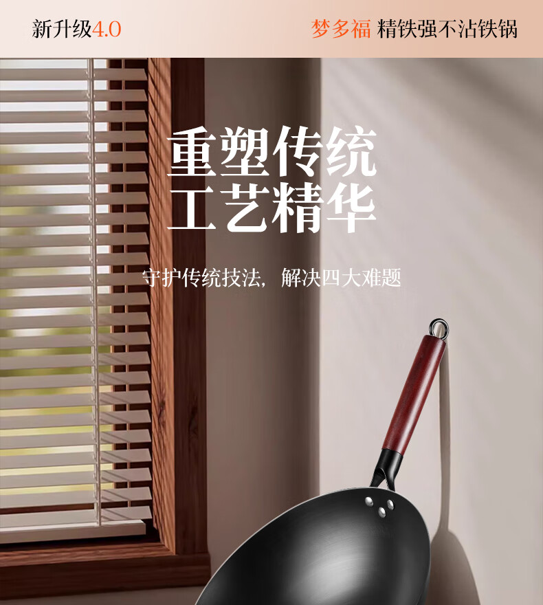 梦多福铁锅炒菜锅不粘锅无涂层炒锅燃气灶专用铸铁锅免开锅圆底炒锅家用 34CM【可视盖】3-7人用-已开锅 34cm 精铁不锈-健康无涂层-氮化不粘锅