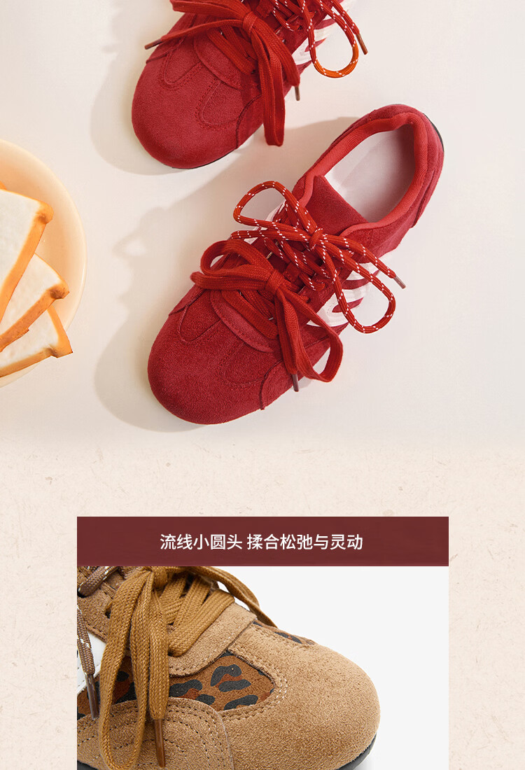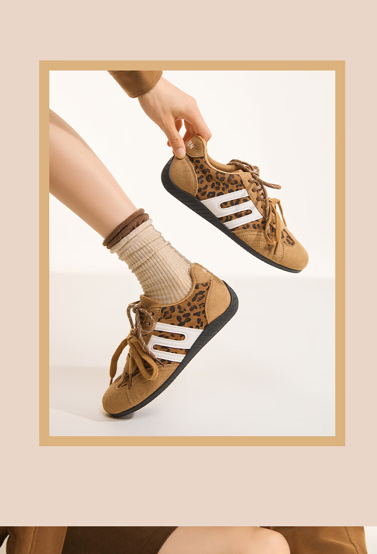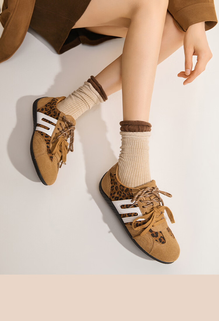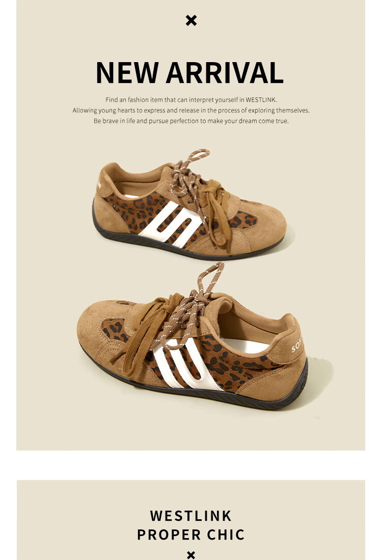 西遇(Westlink)软底德训鞋女2025新款秋季超火双鞋带豹纹休闲红色平底运动鞋 豹纹色 (预售15天) 38 (240)