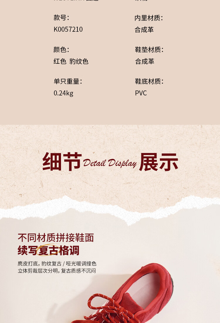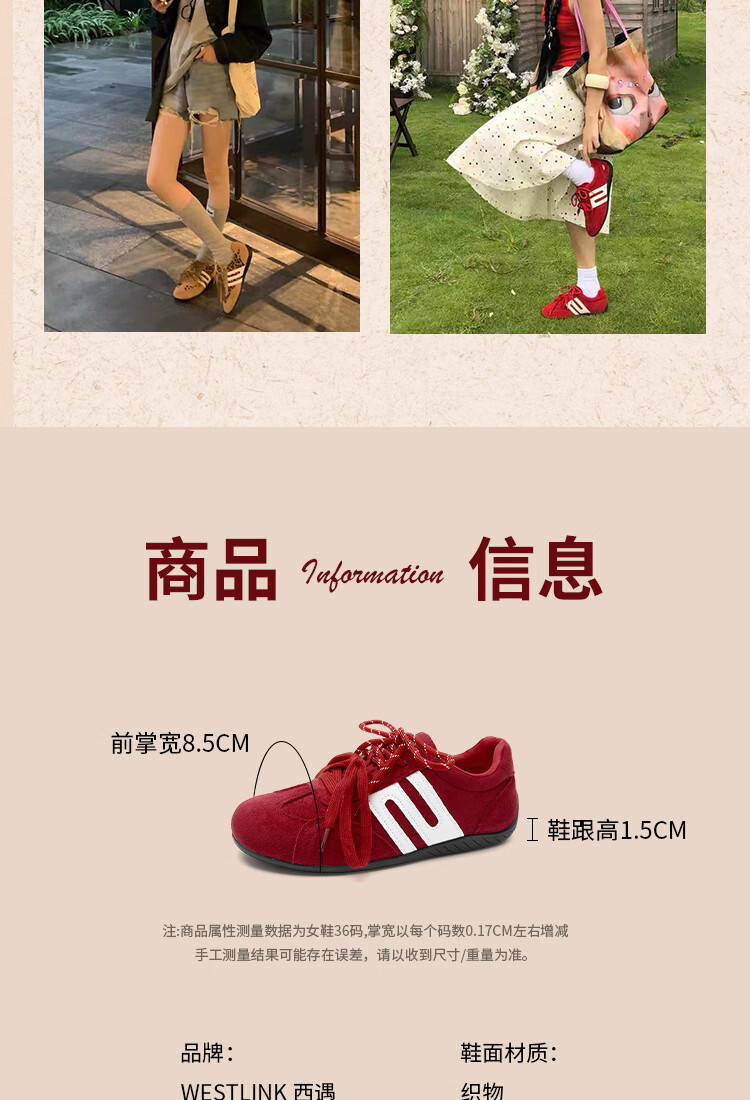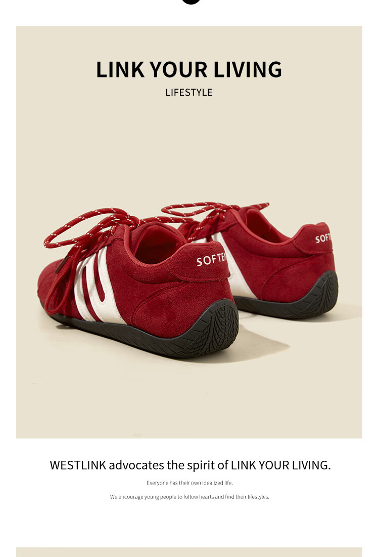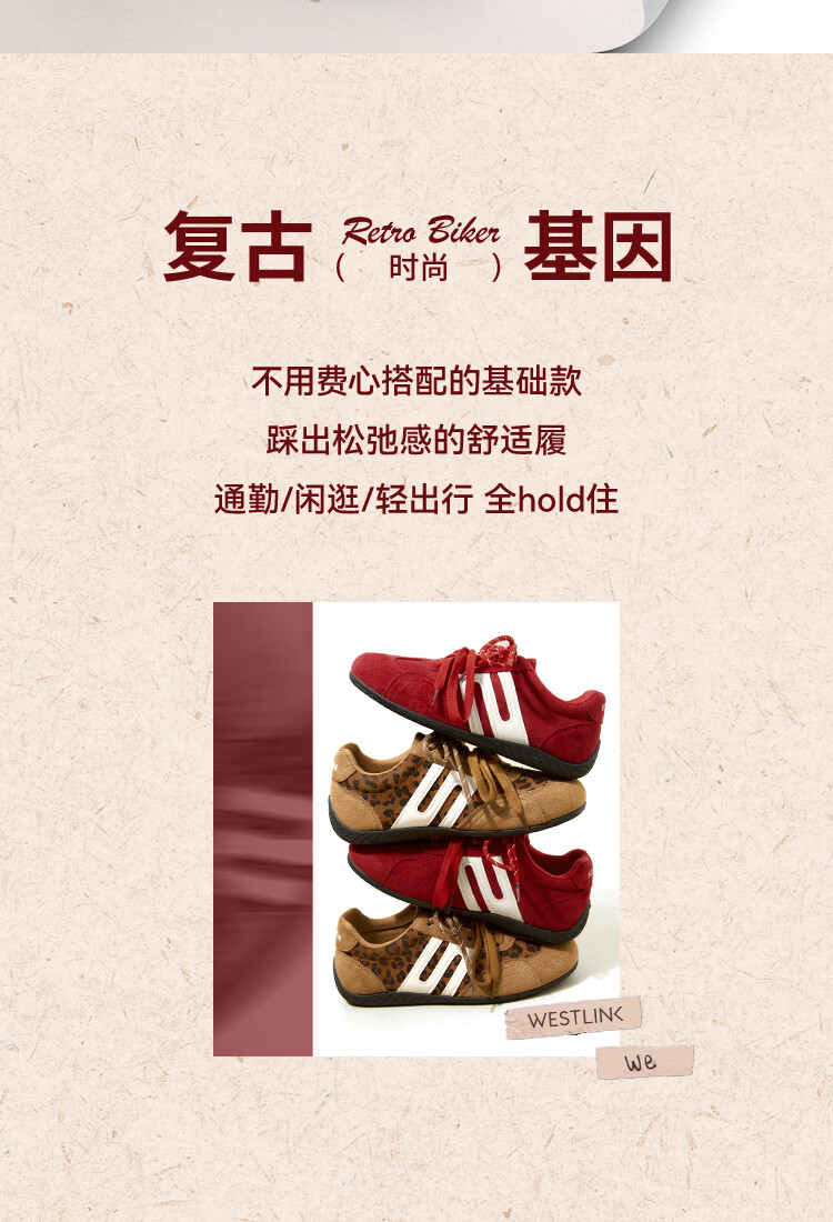 西遇(Westlink)软底德训鞋女2025新款秋季超火双鞋带豹纹休闲红色平底运动鞋 豹纹色 (预售15天) 38 (240)
