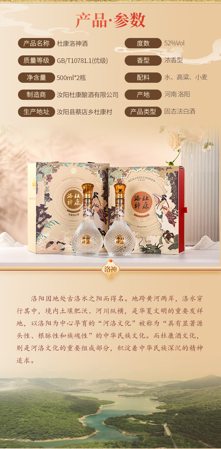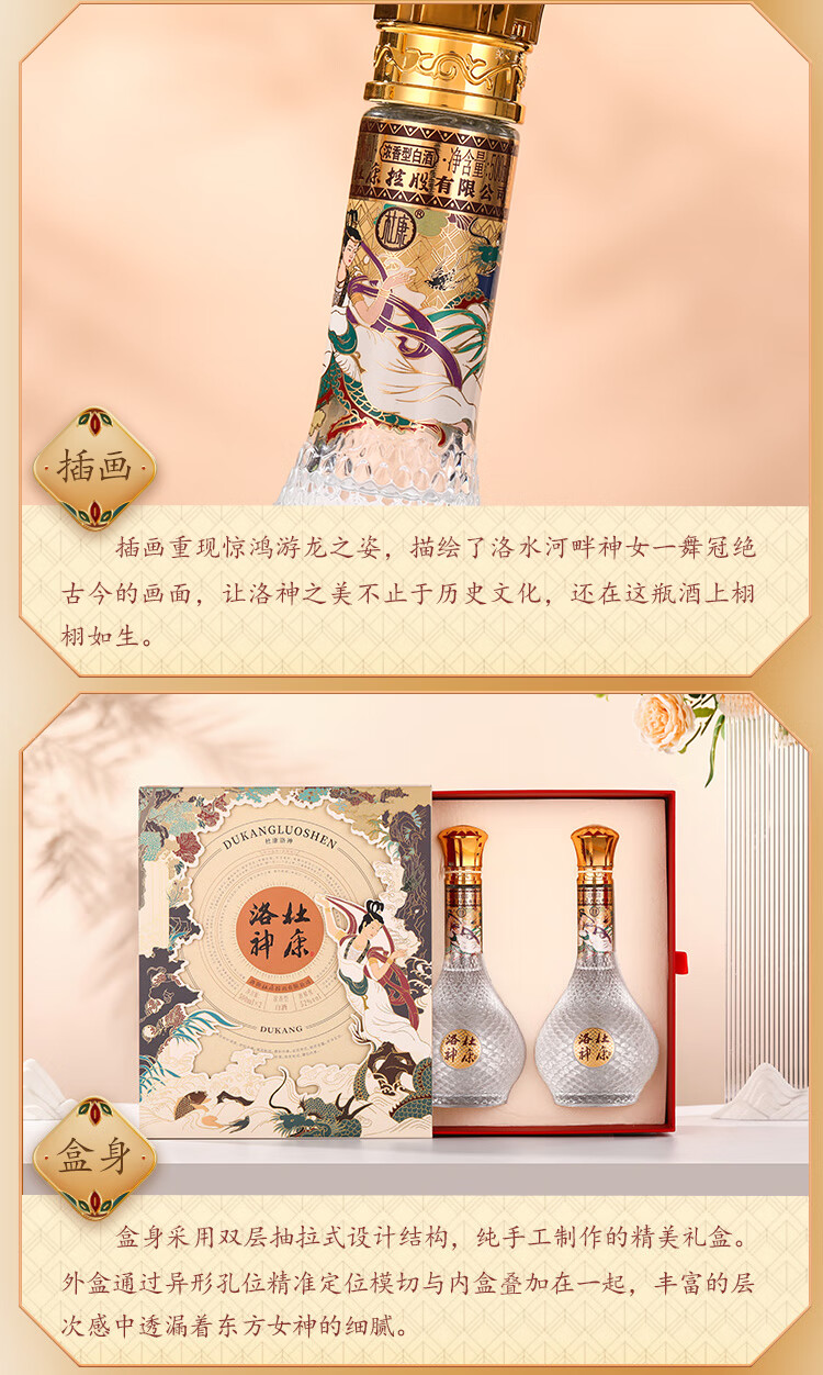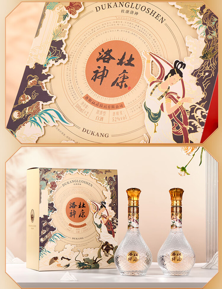 杜康洛神双支礼盒 翩若惊鸿 婉若游龙 东方之美佳品礼盒 送礼甄选 52度 500mL 2瓶 礼盒装