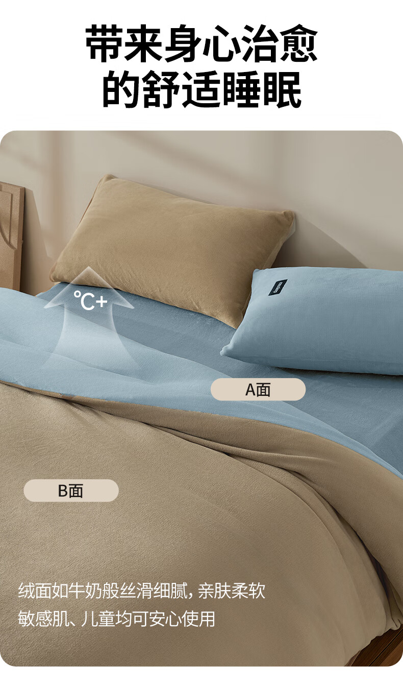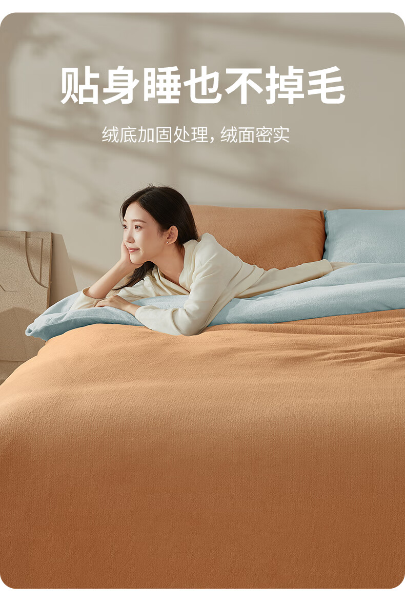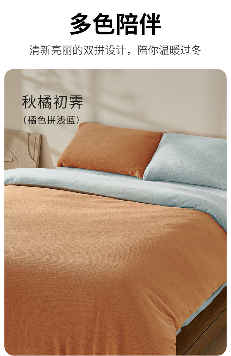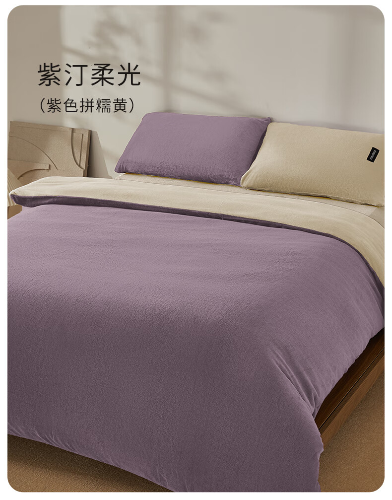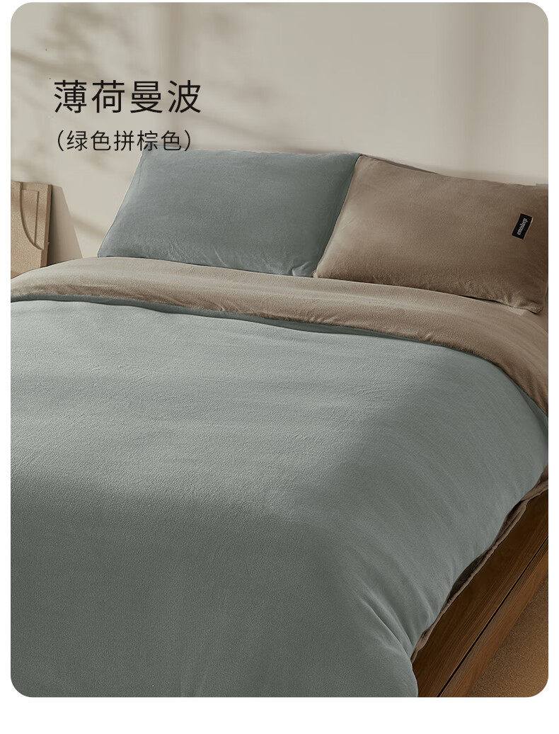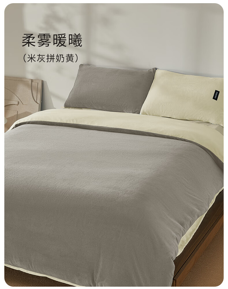 一默四件套冬季床单被套枕套保暖亲肤宿舍床上用品双拼牛奶绒四件套 双拼-柔雾暖曦 床单款 (被套200*230cm)