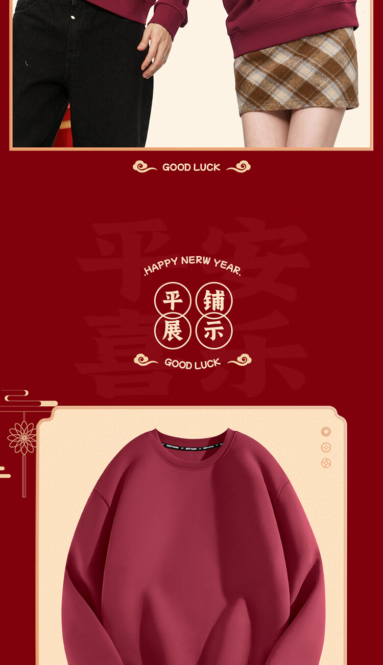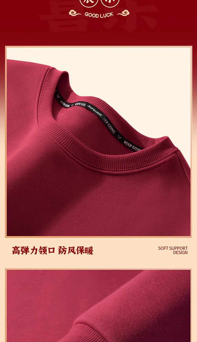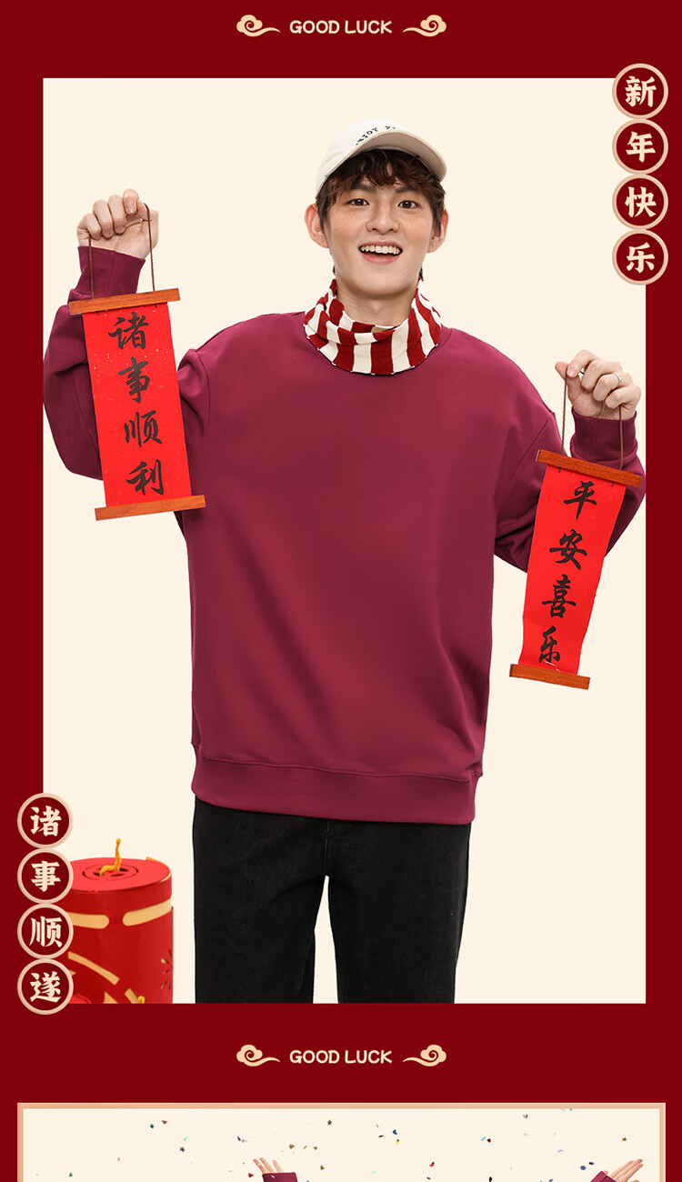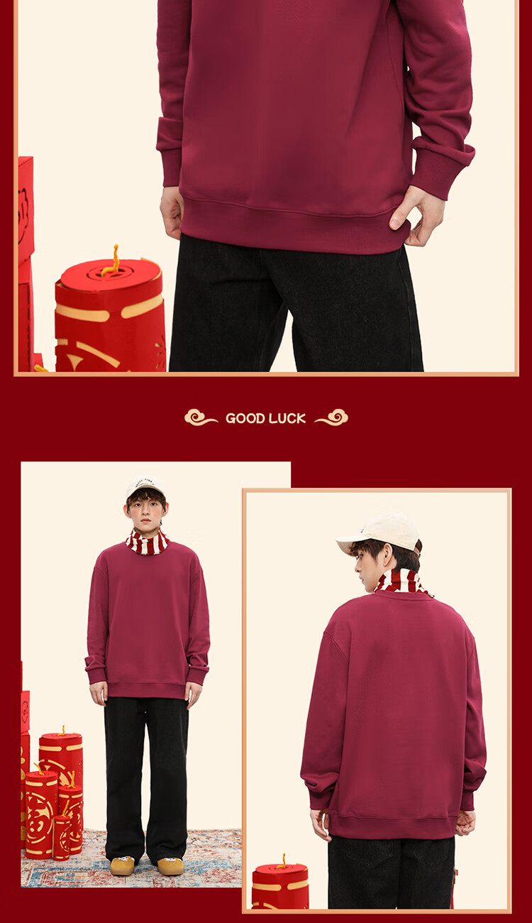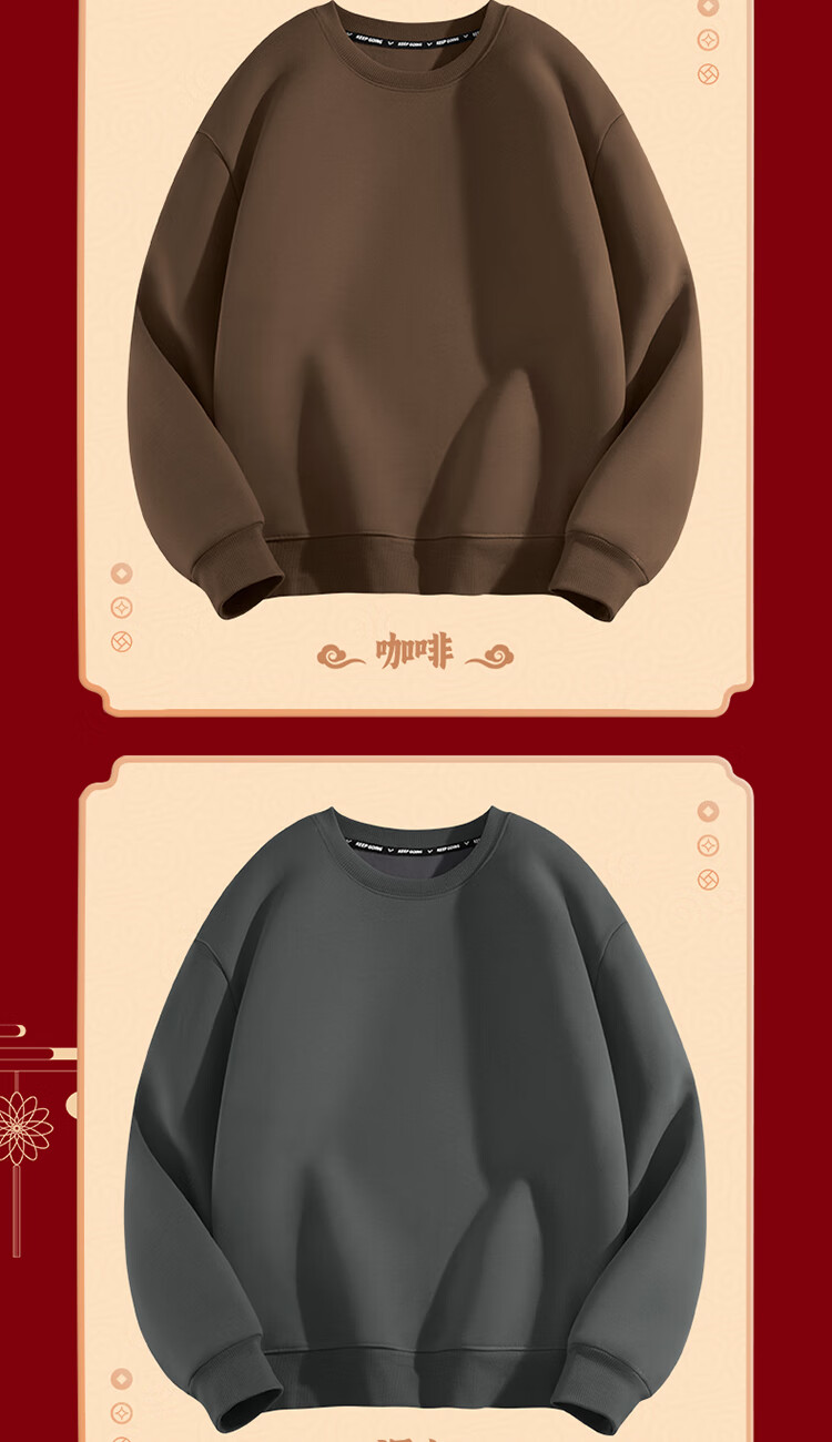真维斯(Jeanswest)新年印花圆领加绒卫衣男秋冬季情侣长袖外套本命年宽松大码打底衫 咖啡(诸事顺X) 3XL