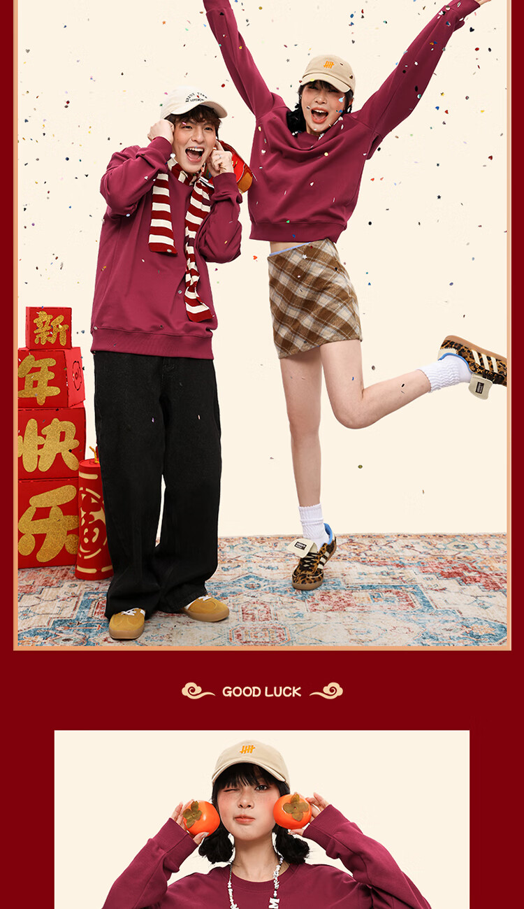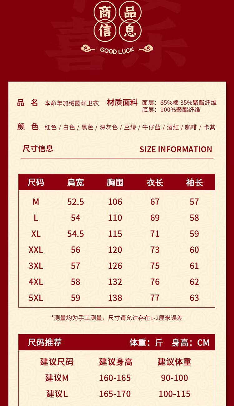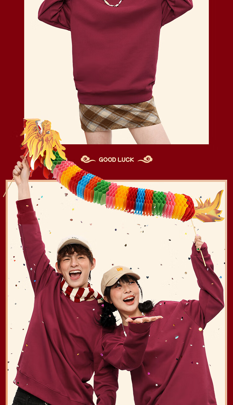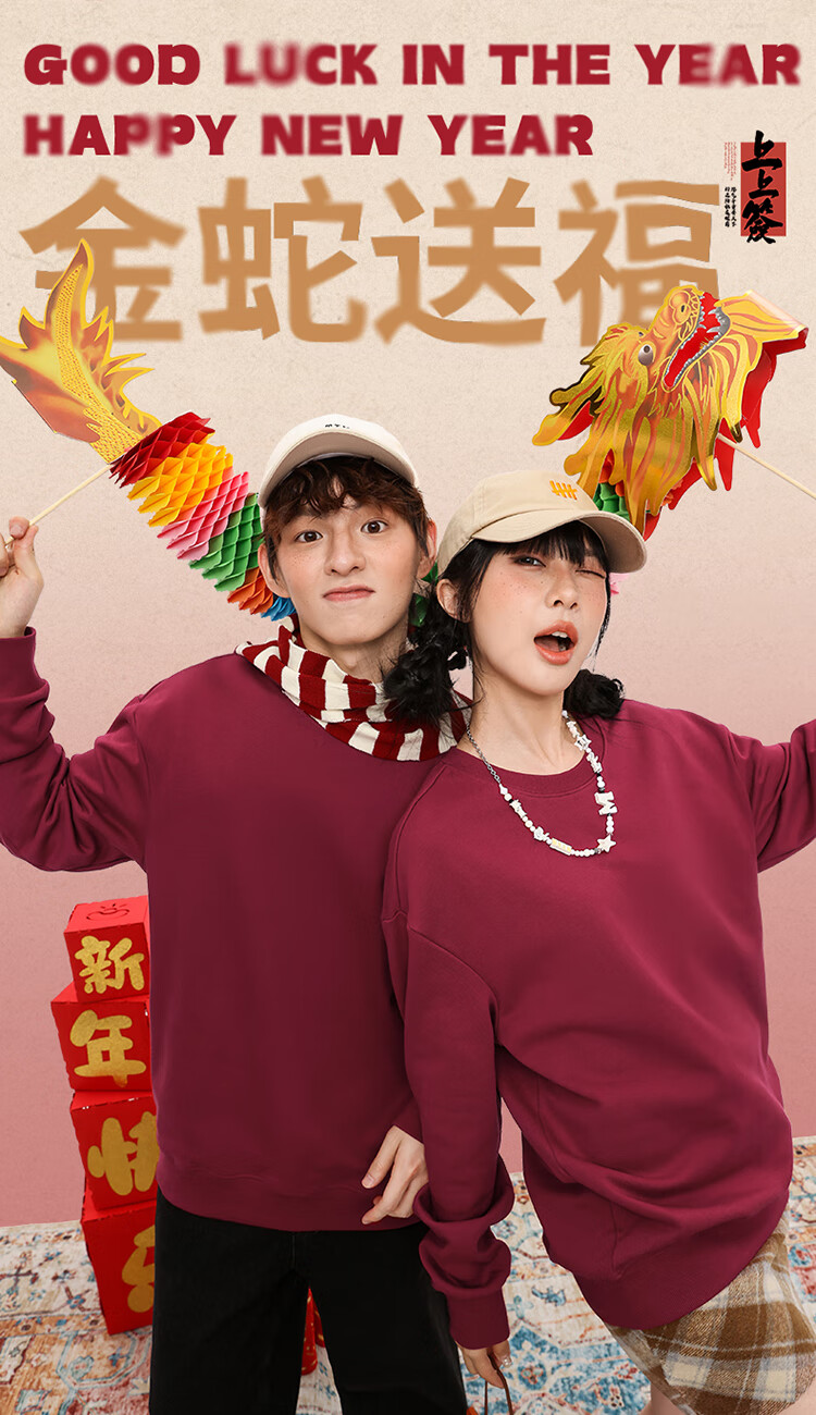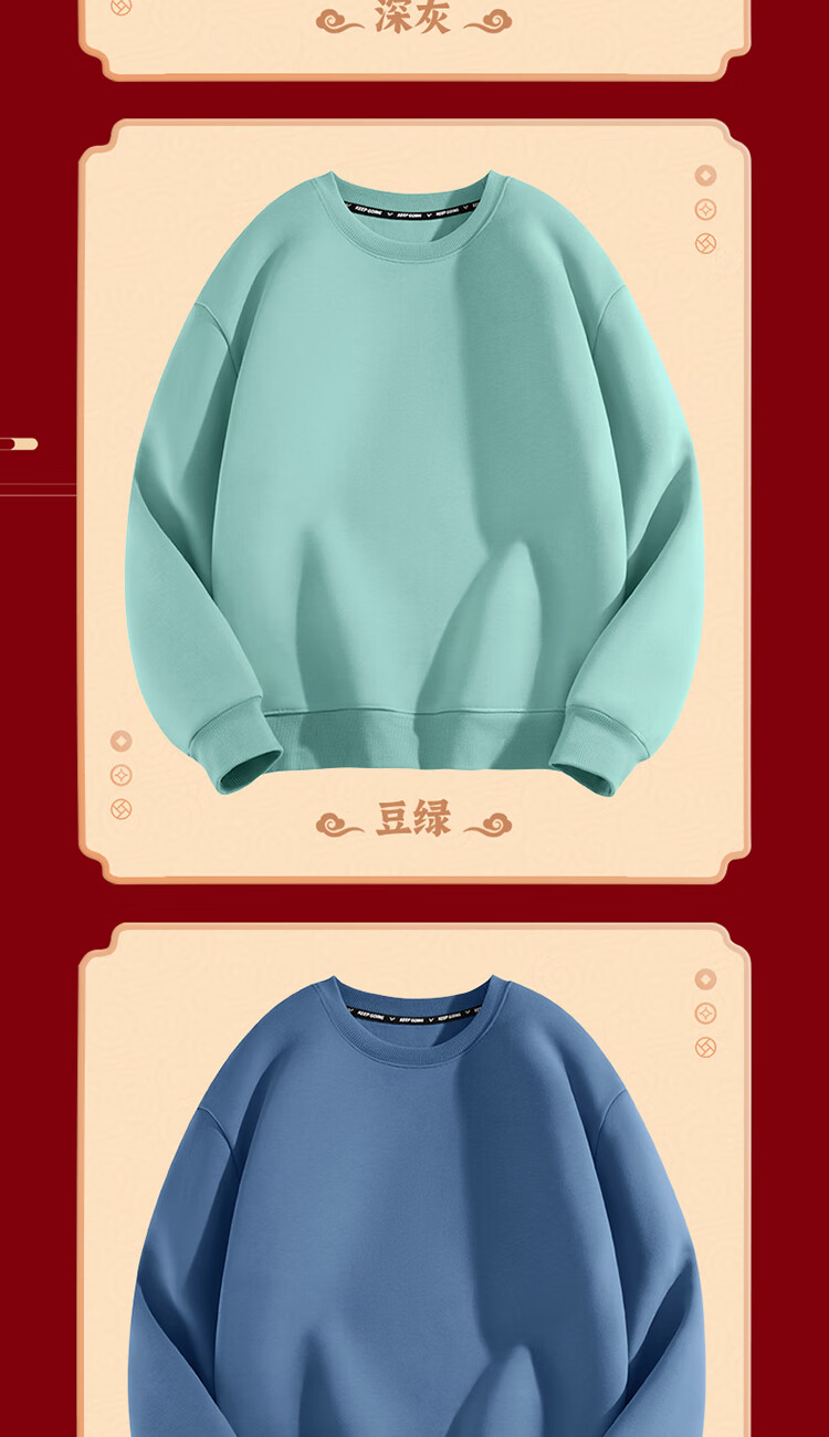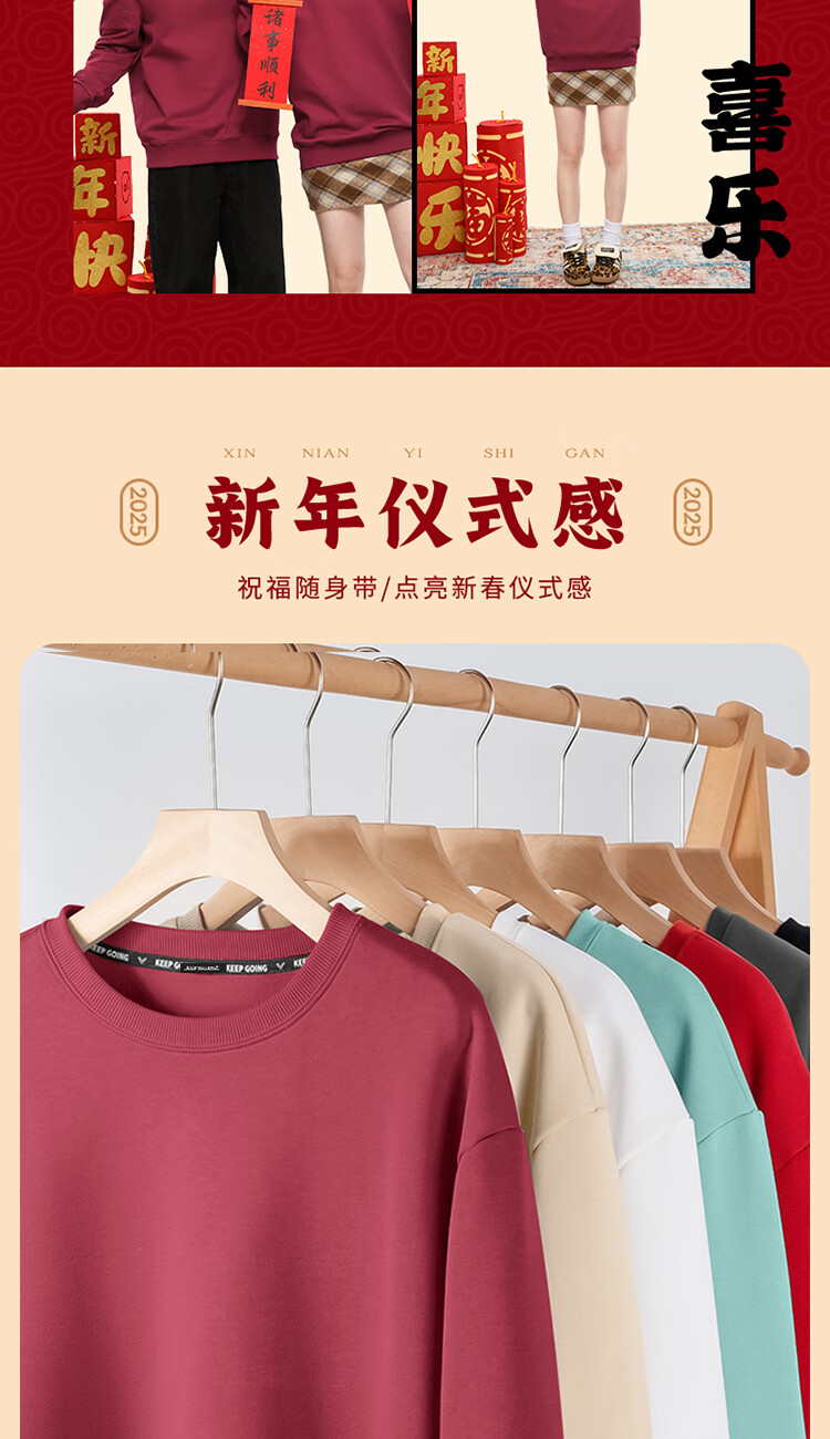 真维斯(Jeanswest)新年印花圆领加绒卫衣男秋冬季情侣长袖外套本命年宽松大码打底衫 咖啡(诸事顺X) 3XL