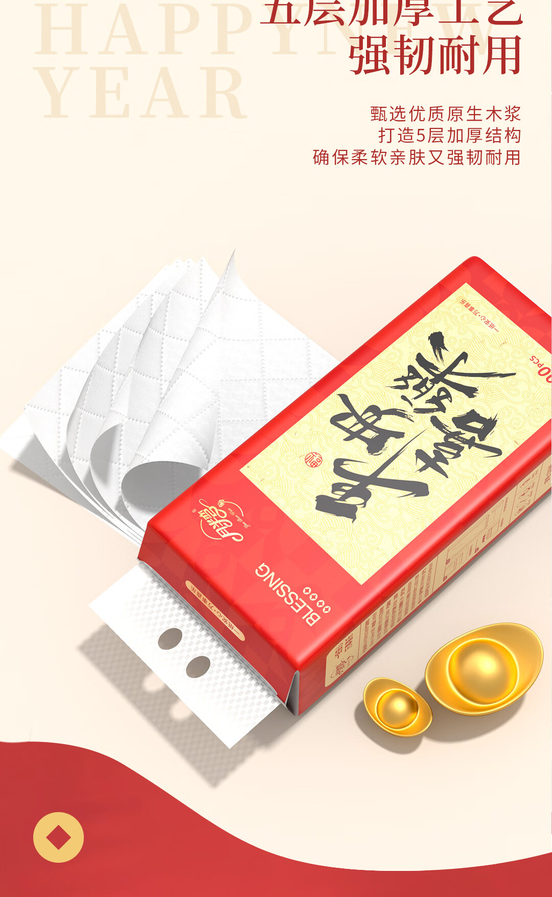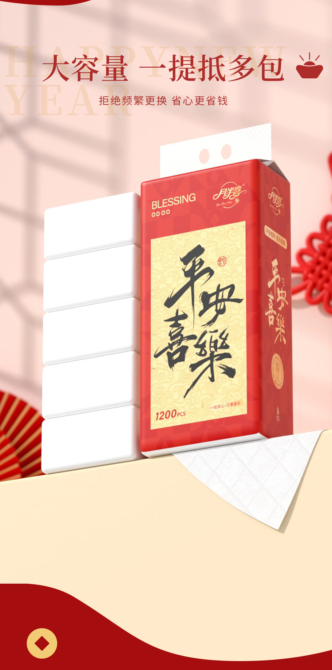 月半弯新年款悬挂式抽纸10大提整箱家用实惠装餐巾纸巾卫生纸抽厕纸批发 【平安喜乐】10大提