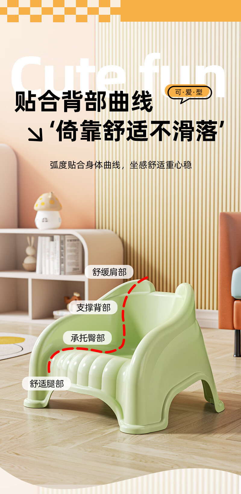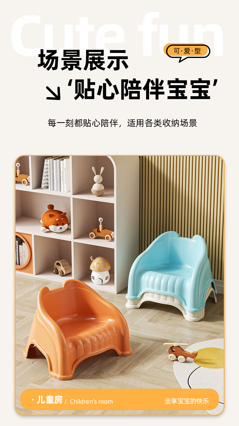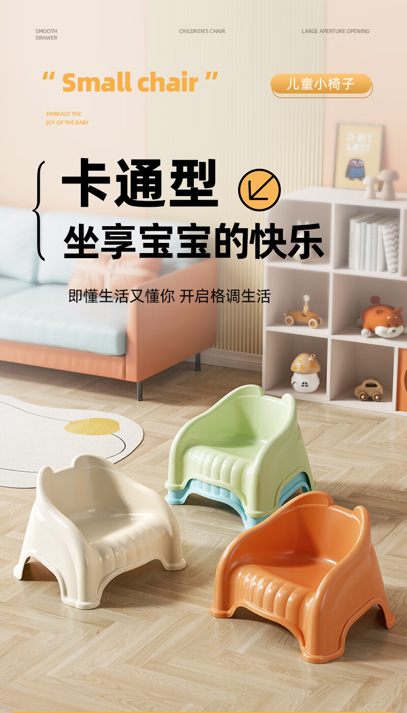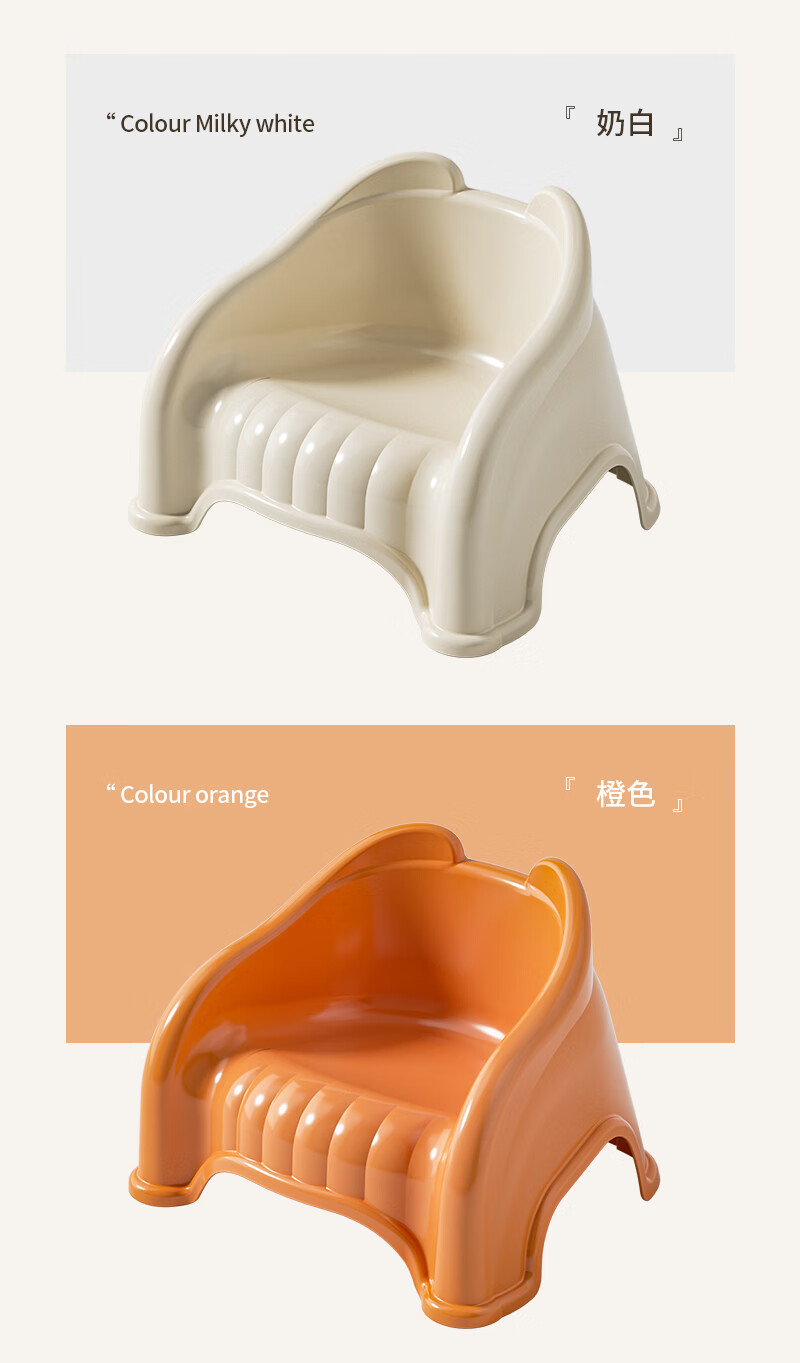 儿童塑料小凳子靠背椅家用婴幼儿宝宝沙发小椅子餐椅防滑洗澡矮凳 奶油色 13cm