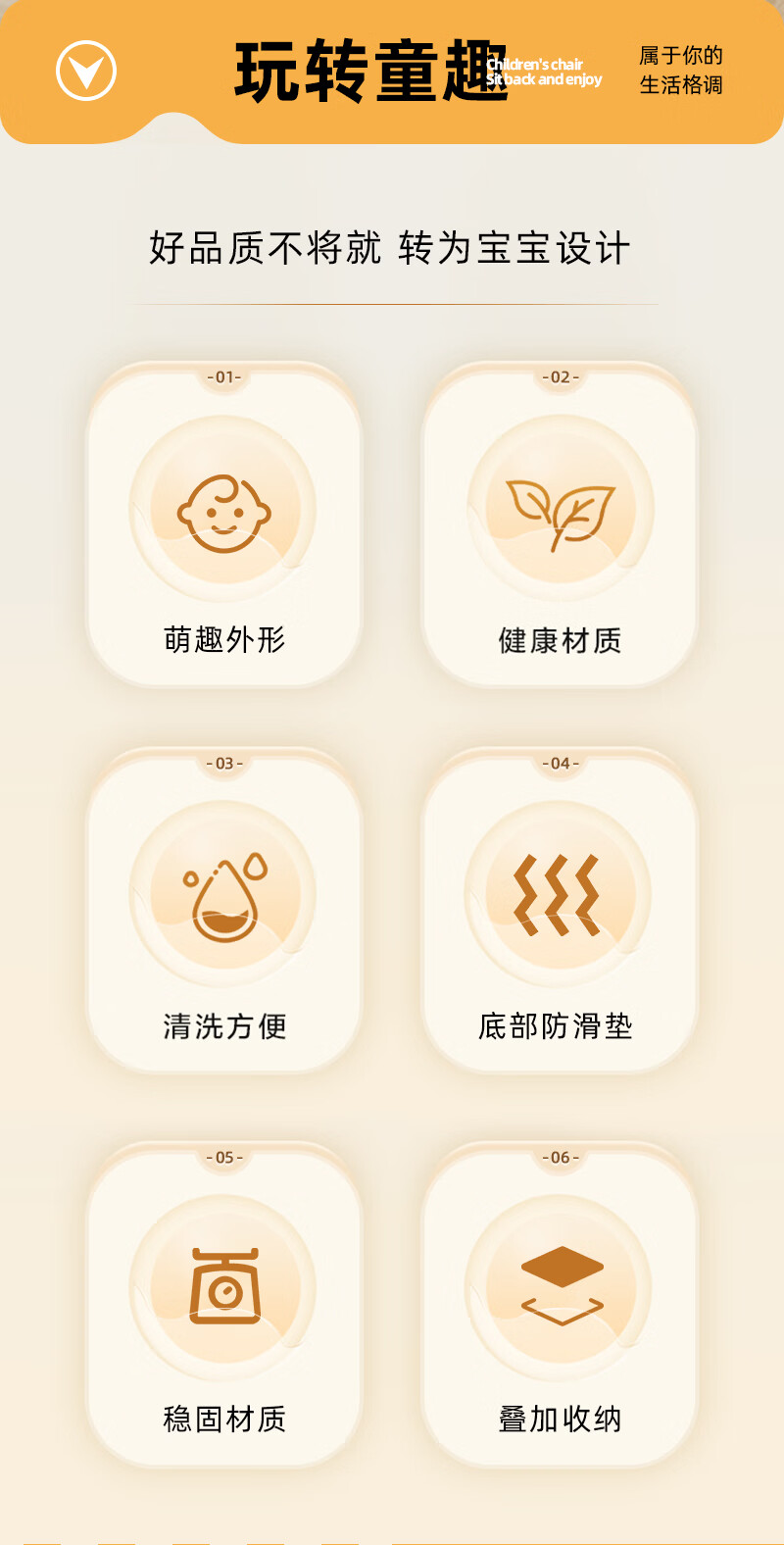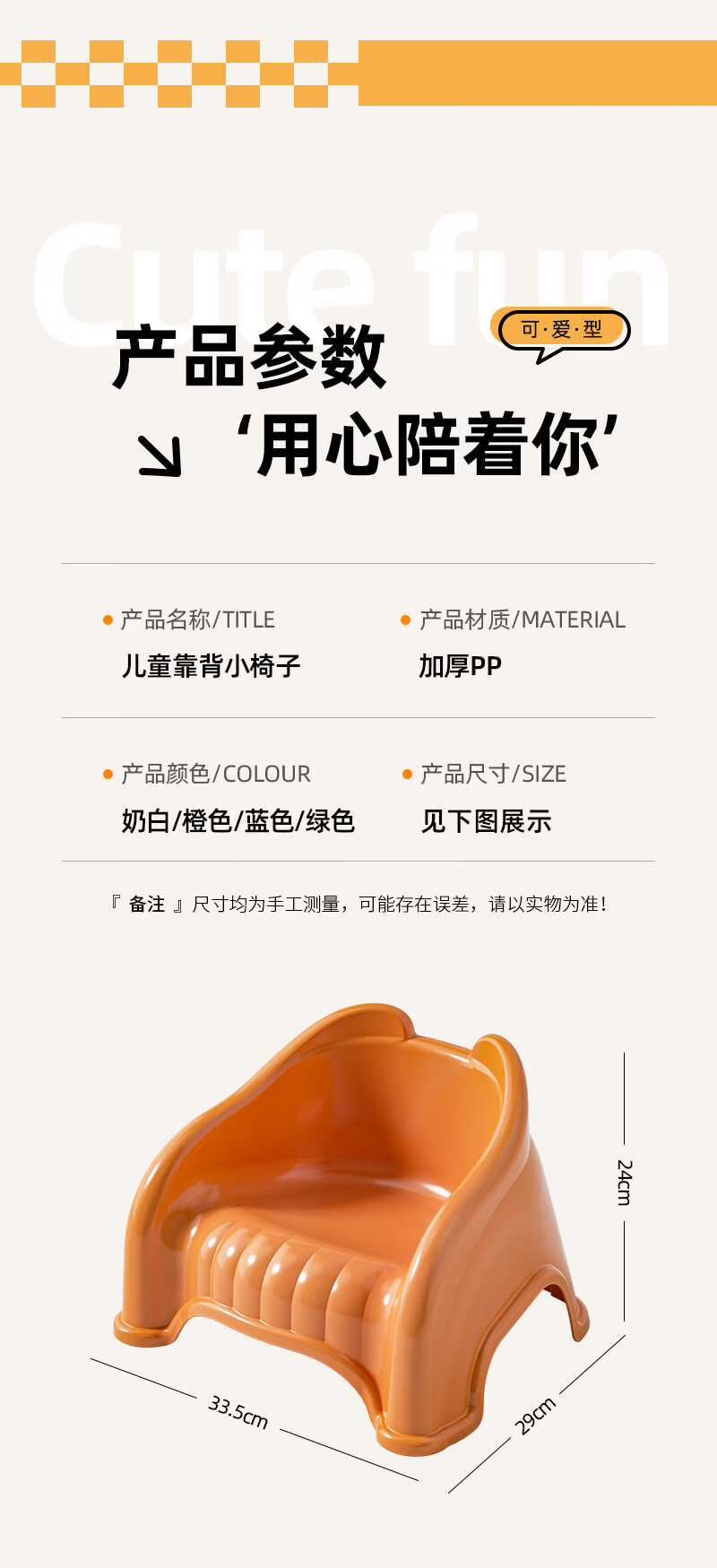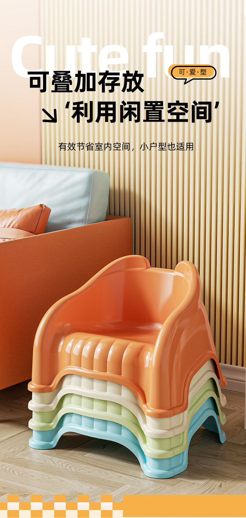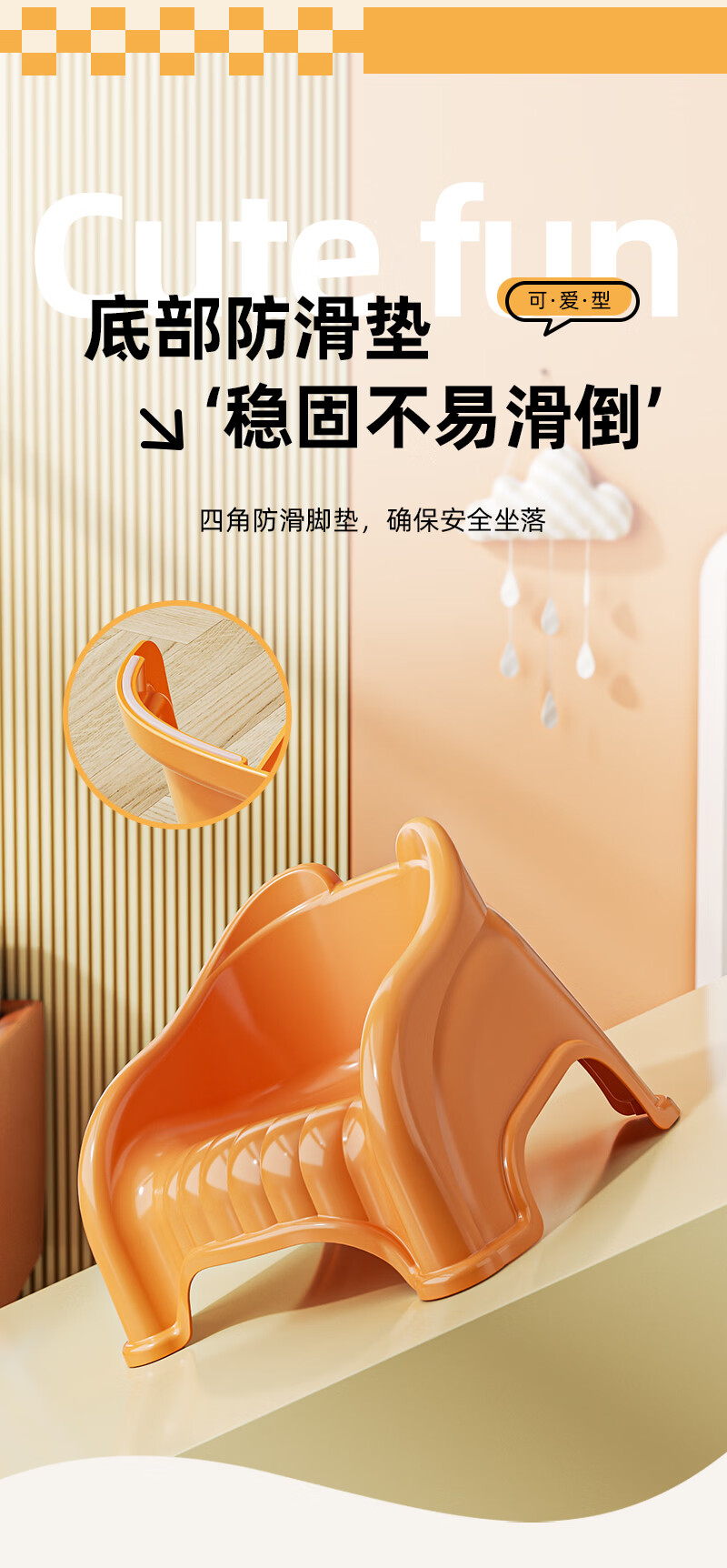 儿童塑料小凳子靠背椅家用婴幼儿宝宝沙发小椅子餐椅防滑洗澡矮凳 奶油色 13cm