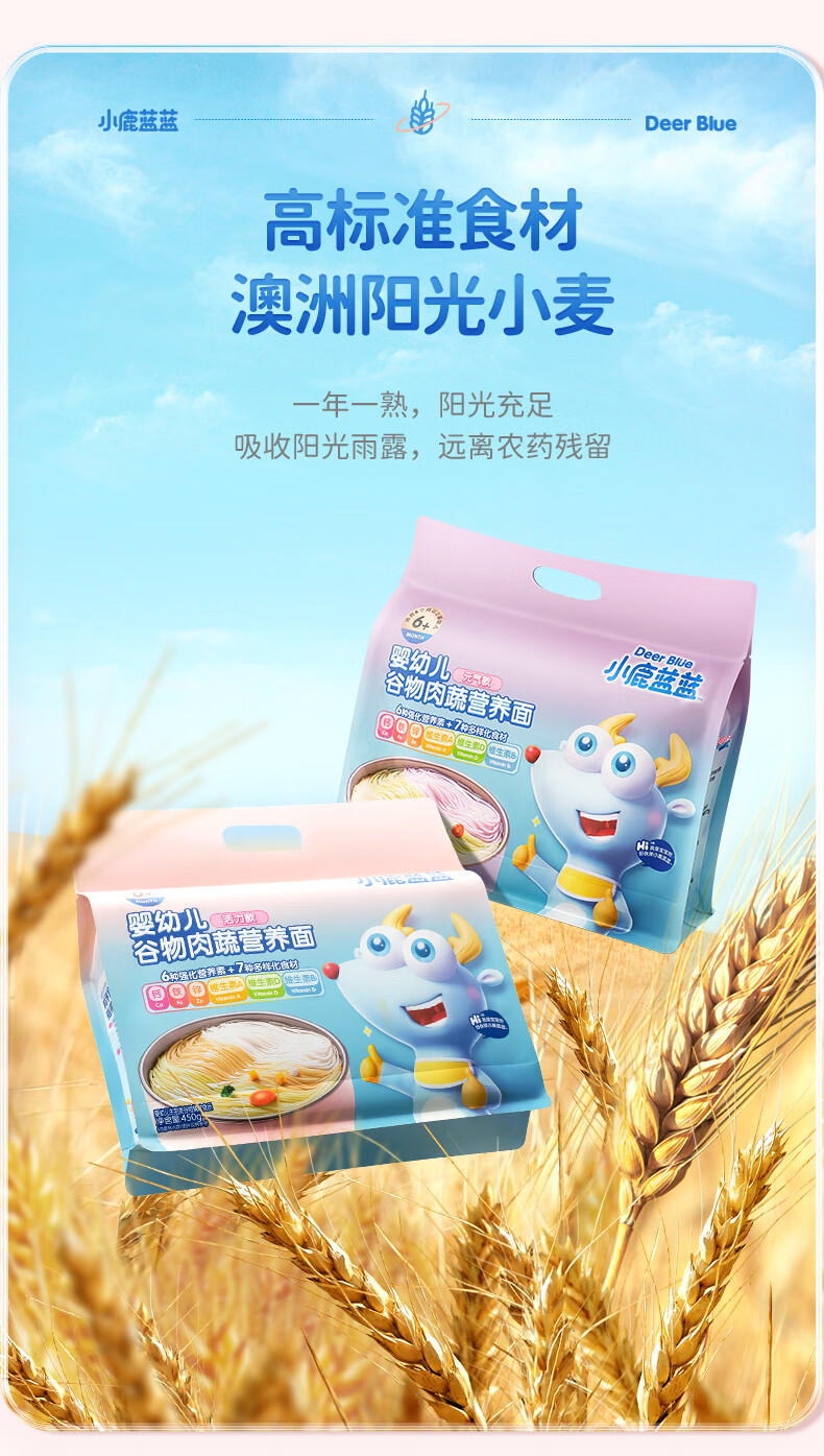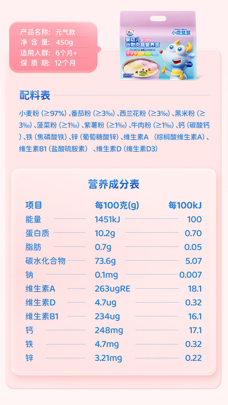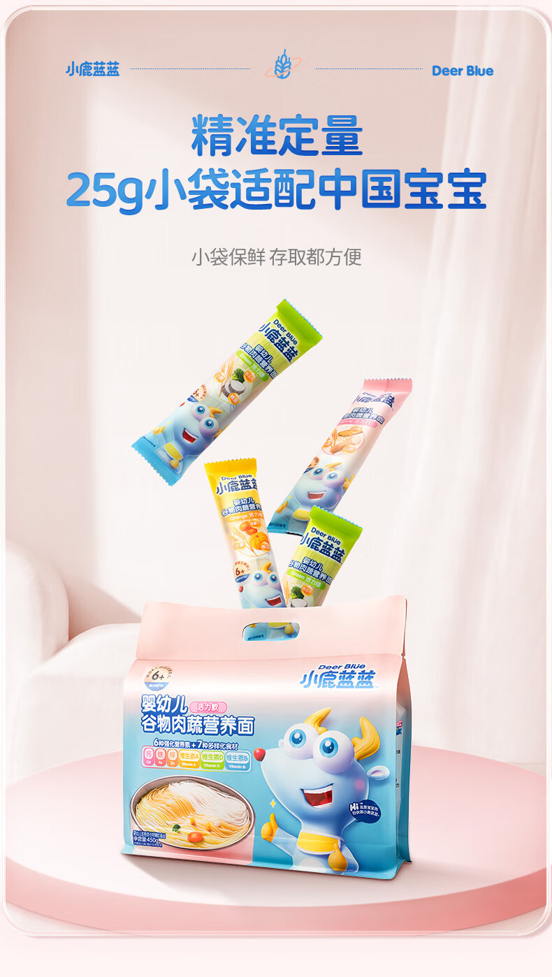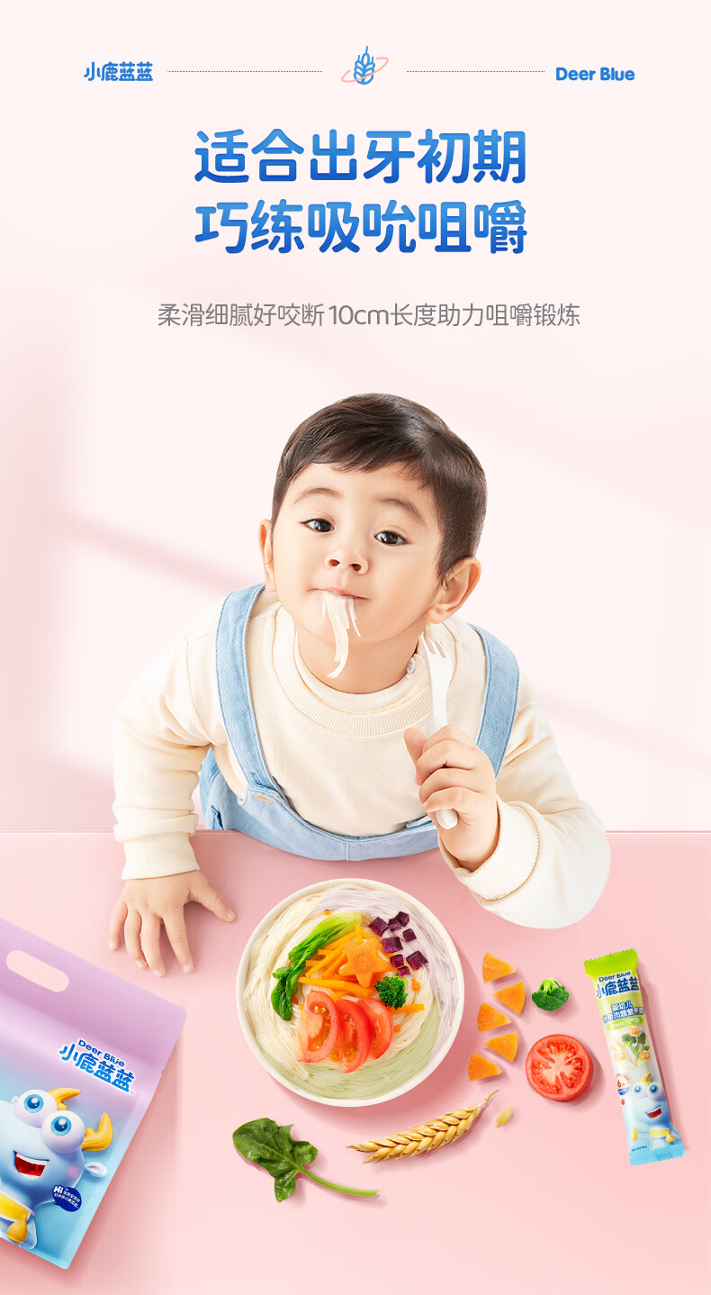 小鹿蓝蓝婴幼儿谷物肉蔬营养面组合装900g 热门商品儿童线面无盐