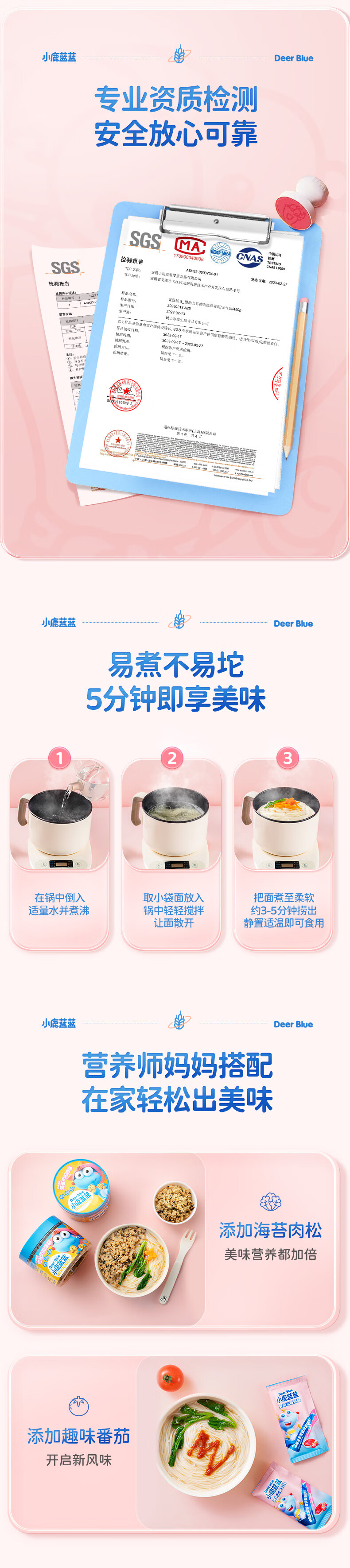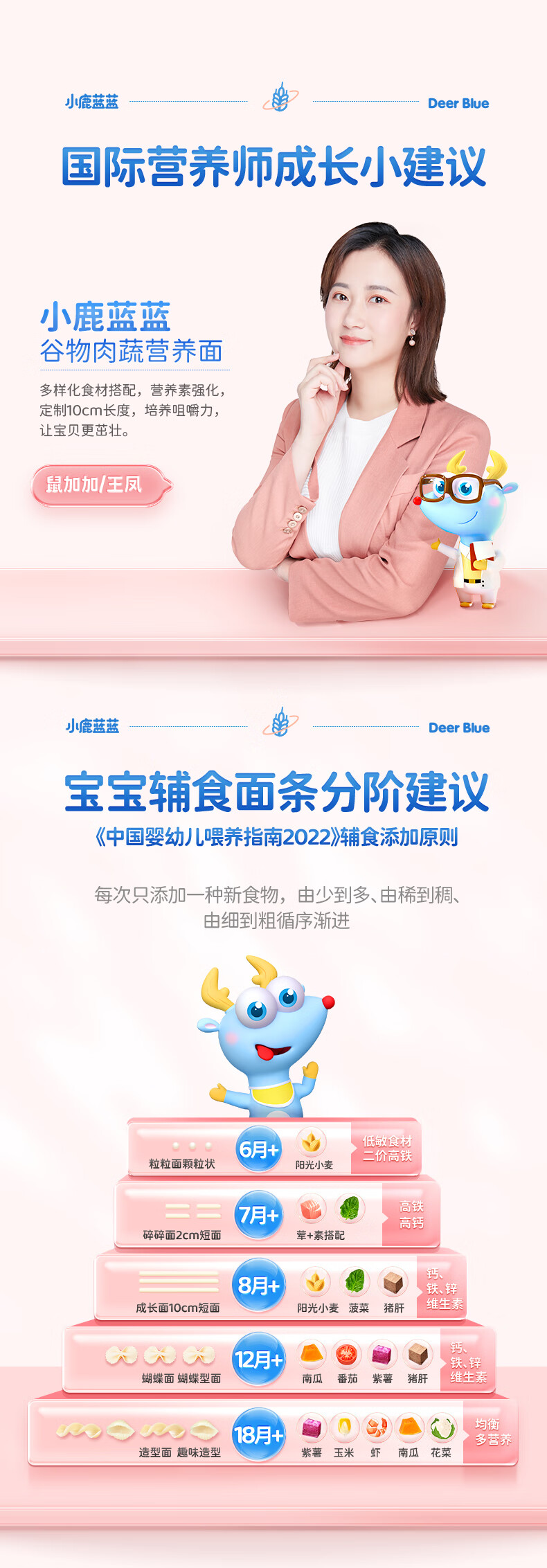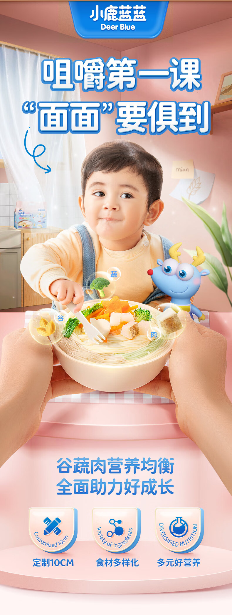 小鹿蓝蓝婴幼儿谷物肉蔬营养面组合装900g 热门商品儿童线面无盐