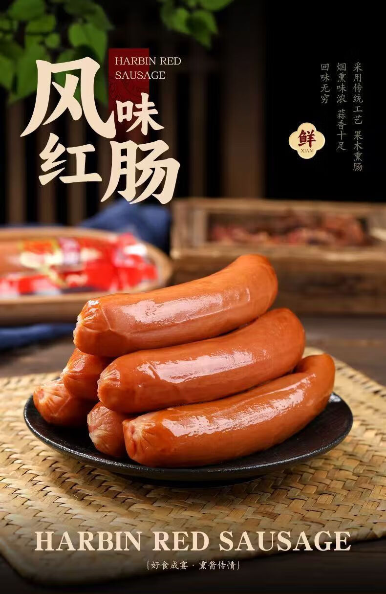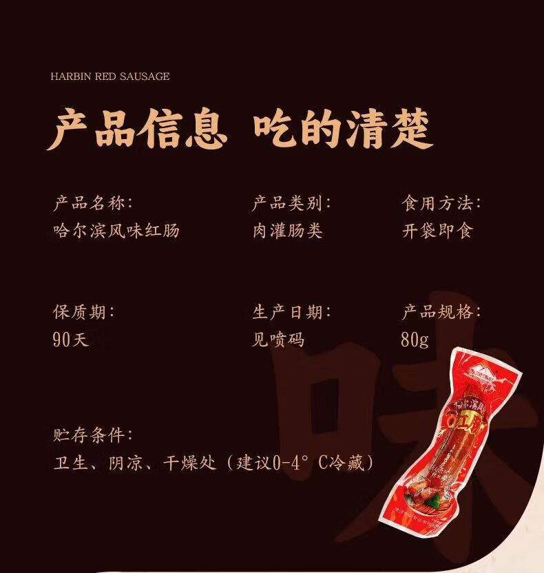 哈尔滨红肠香肠正宗风味特产俄式烟熏烤肠火腿肠即食肉肠零食外卖 【拍3发4】哈尔滨风味红肠80g*1根