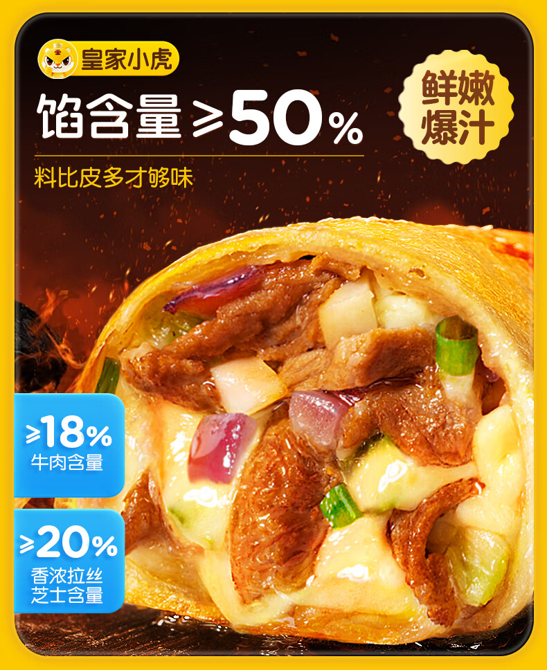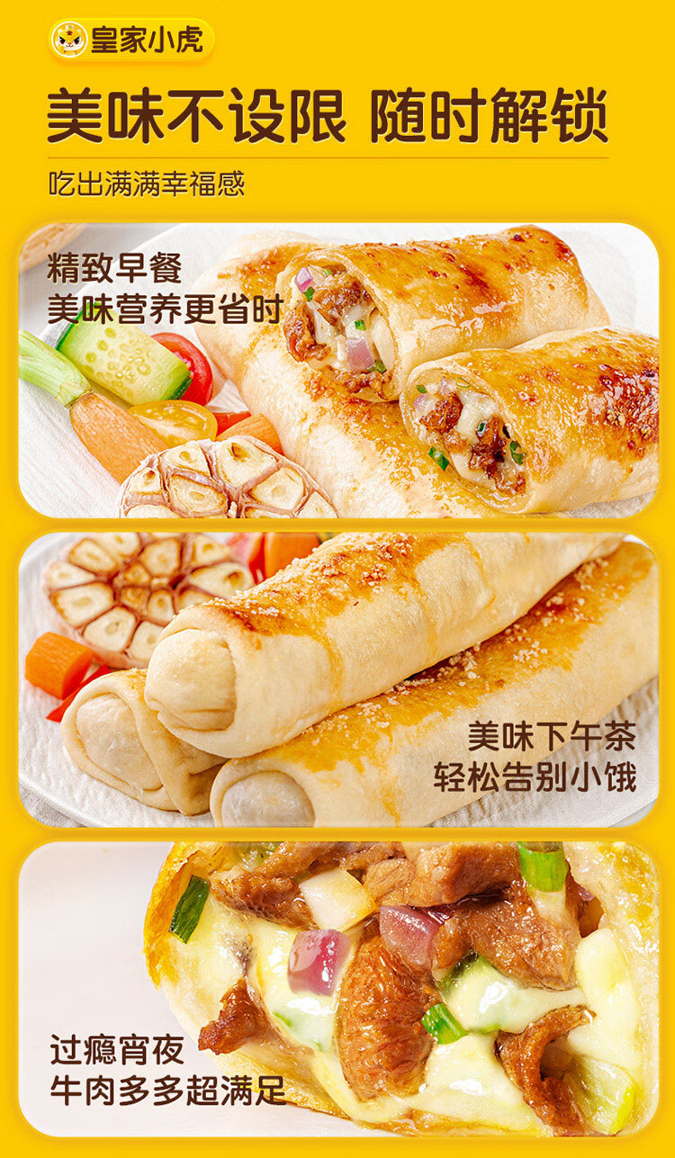 皇家小虎芝士牛肉卷4个/480g儿童学生早餐视频半成品空气炸锅食品源头直发