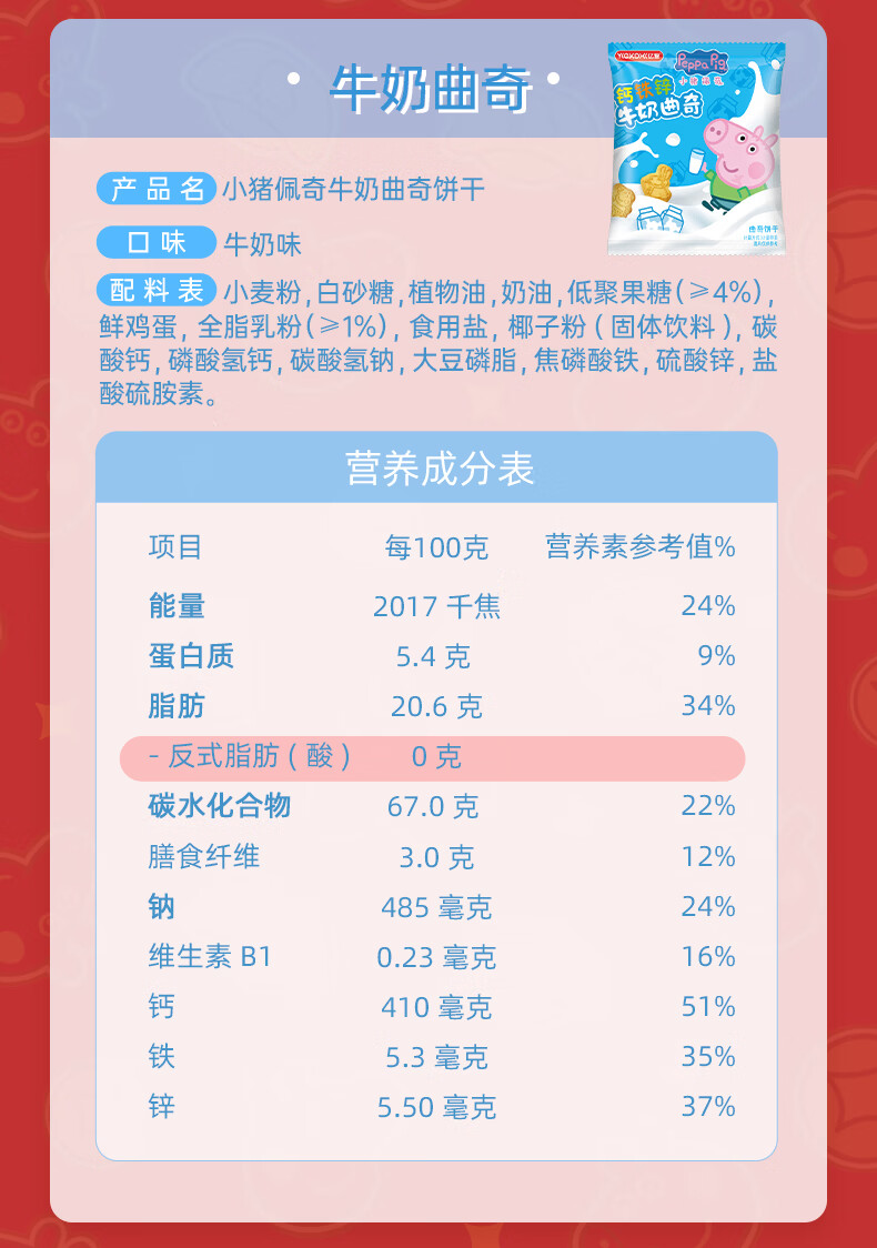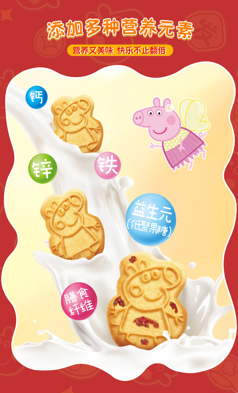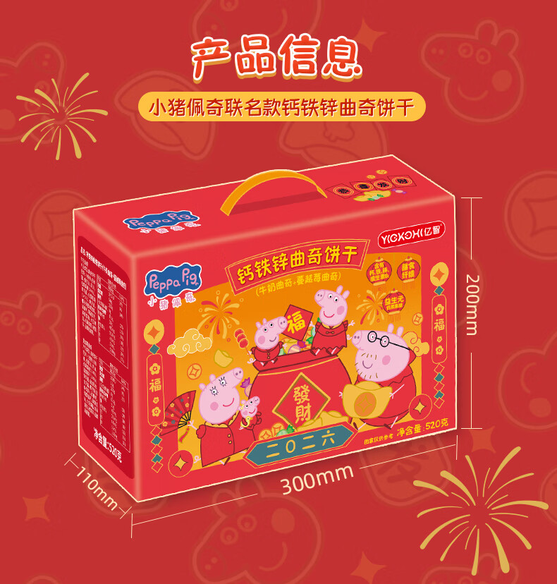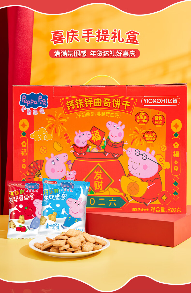 亿智小猪佩奇曲奇饼干混合味儿童休闲零食幼儿园开学过年货送礼物礼盒 【新春款礼盒】520g曲奇饼干混合口味