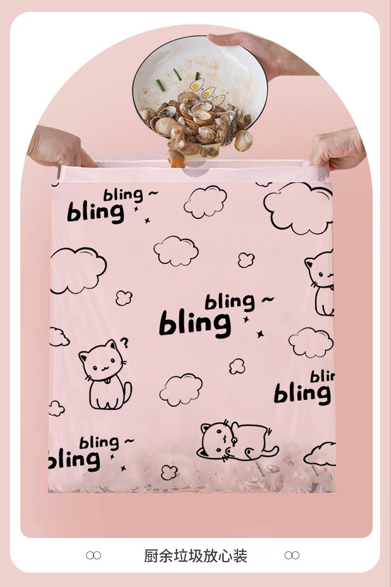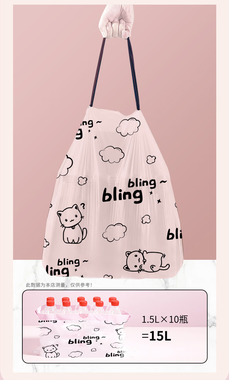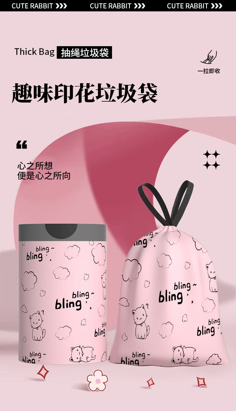 【优选好物】新款家用高颜值抽绳垃圾袋厨房卫生间拉绳式印花塑料 2卷20只