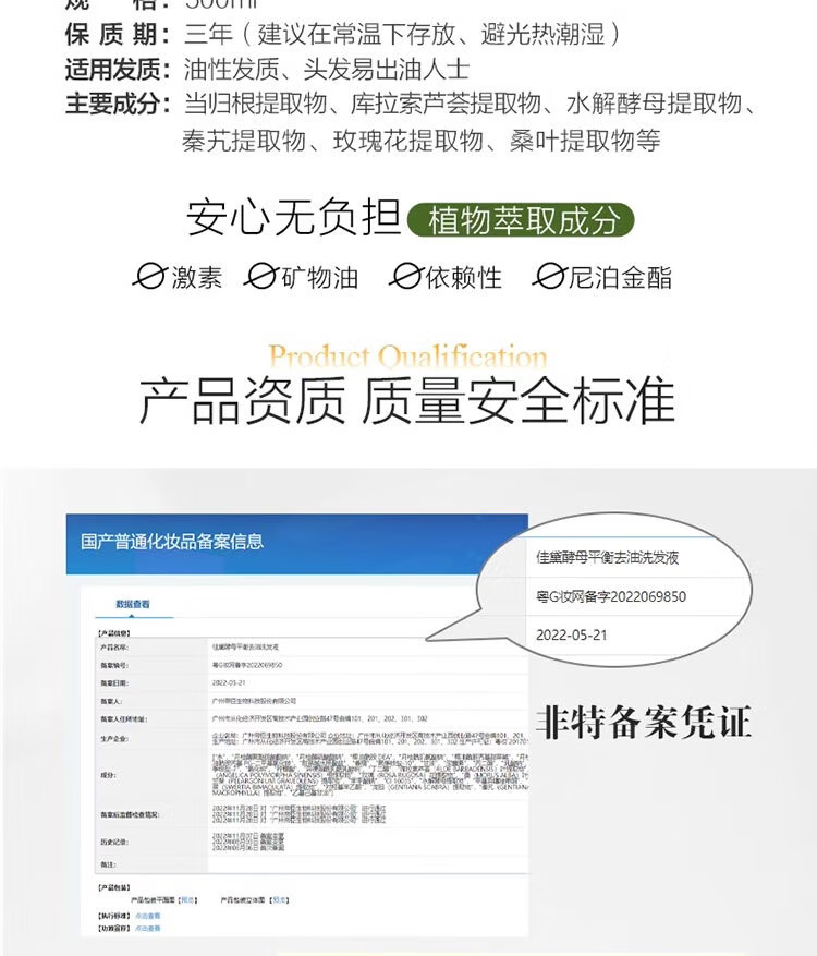 佳黛双重功效洗发水头皮去油洁净丰盈蓬松护发素柔顺留香洗护套装 【买一送一】500ml去屑止痒