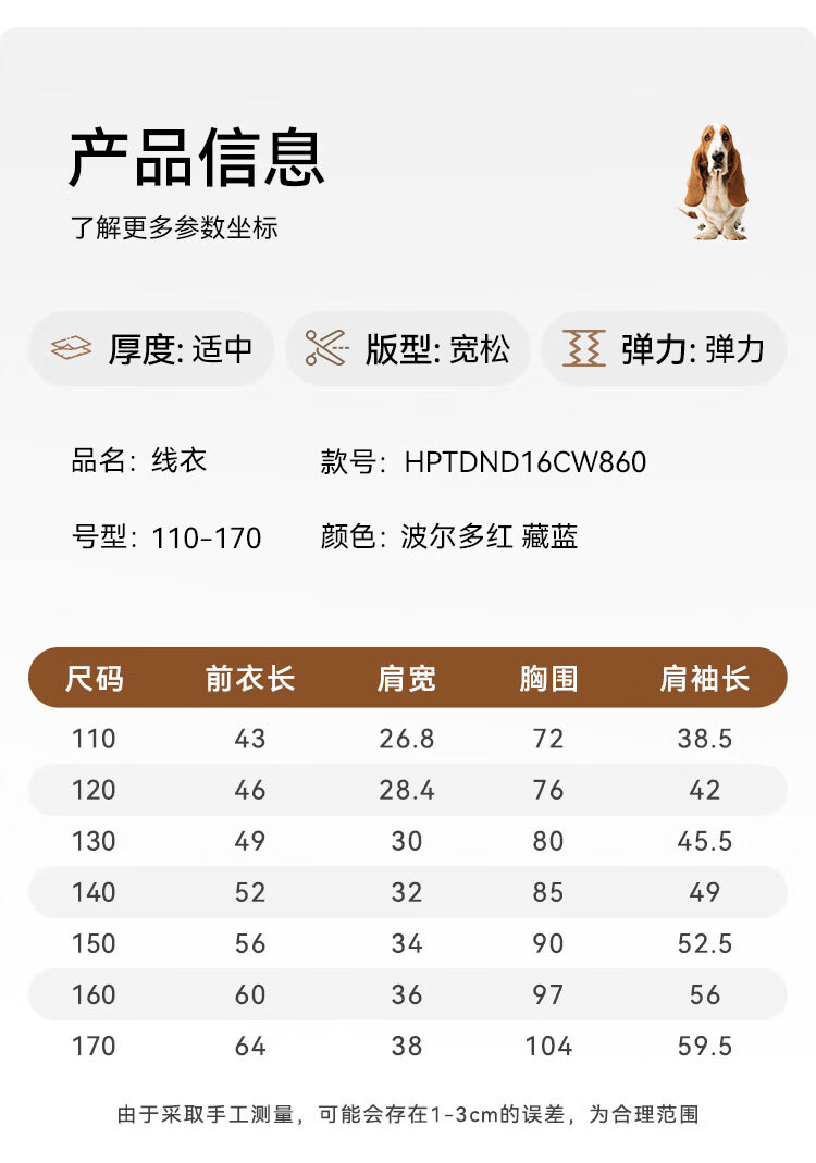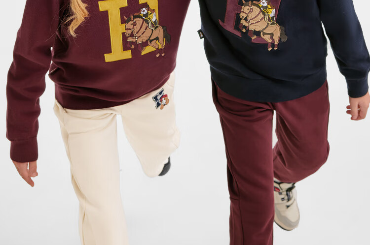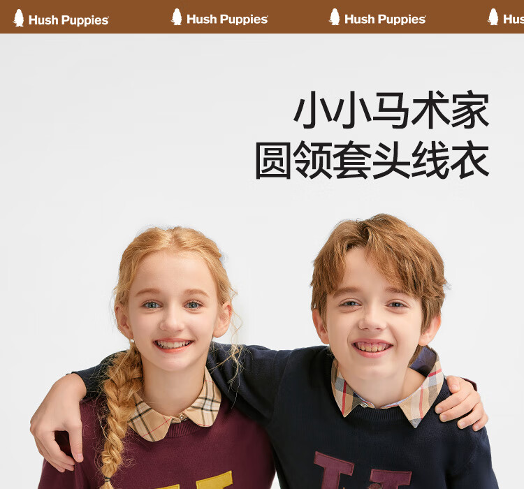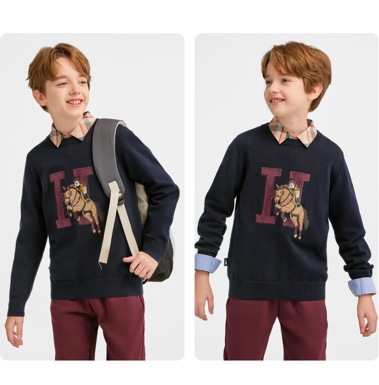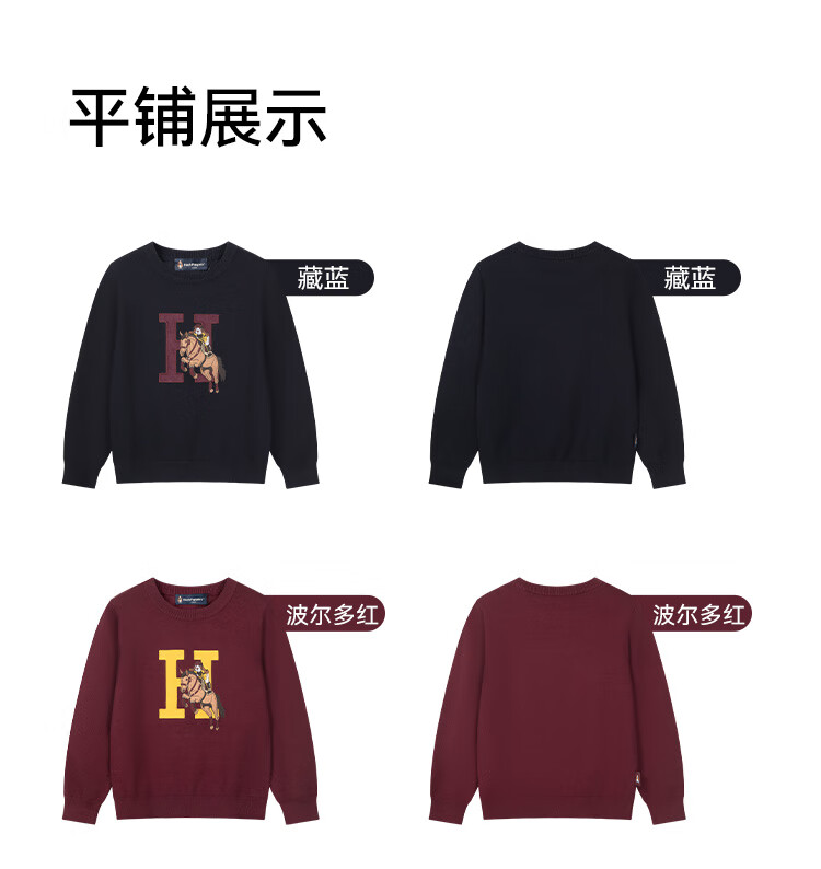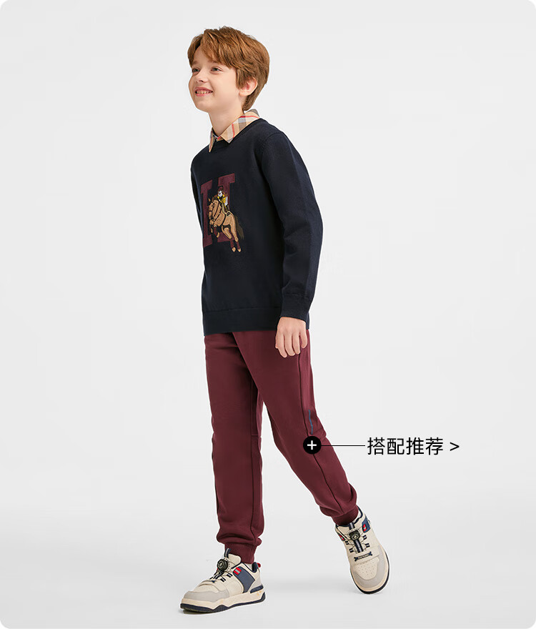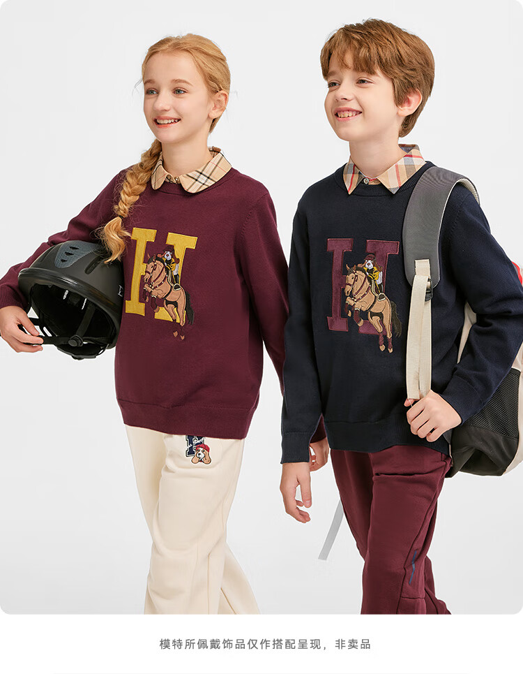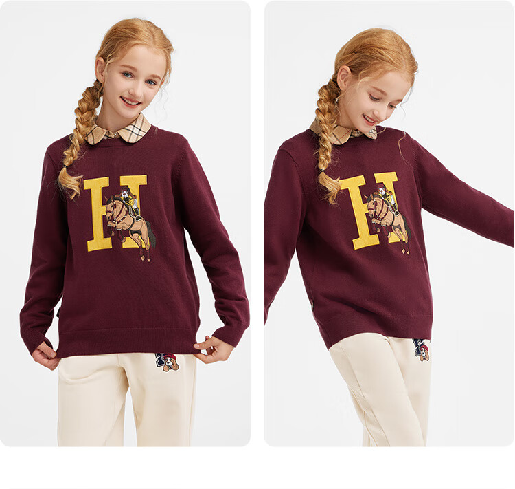 暇步士(Hush Puppies)童装儿童男女大童2025冬季新款帅气马术家系列帅气套头线衣 波尔多红 170