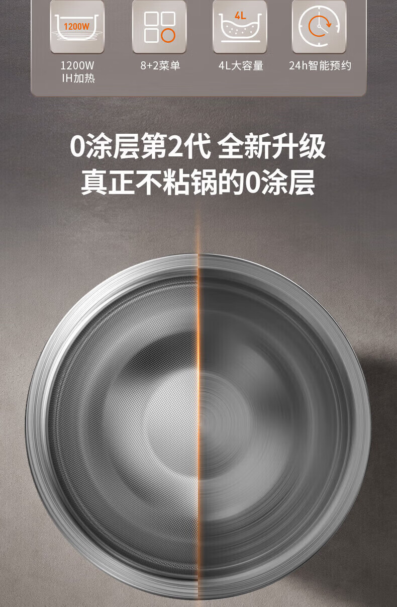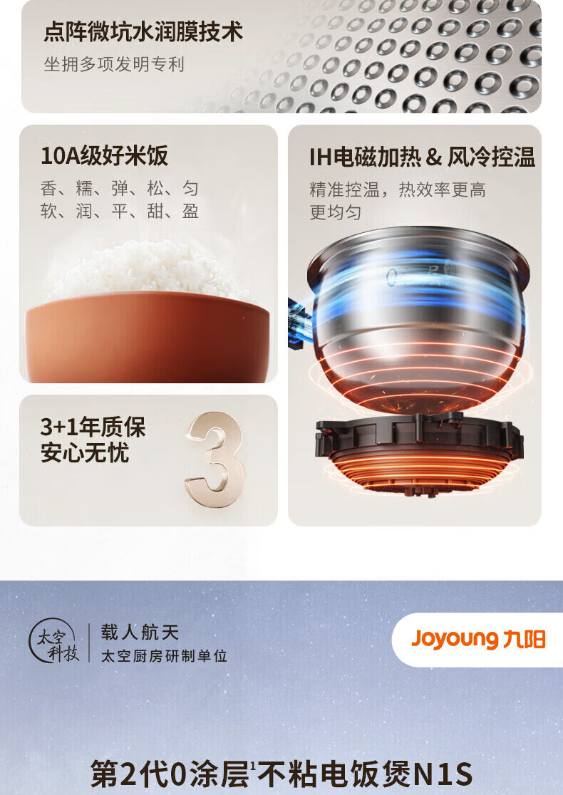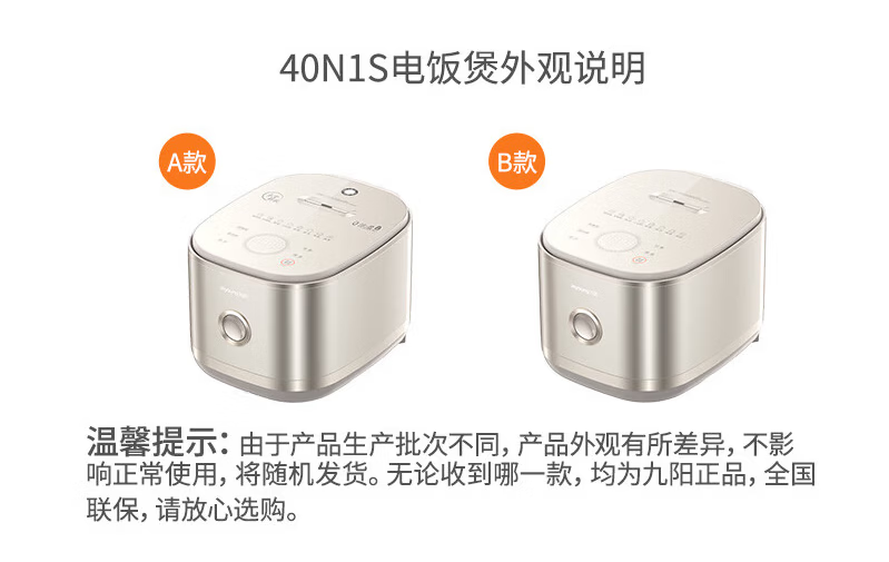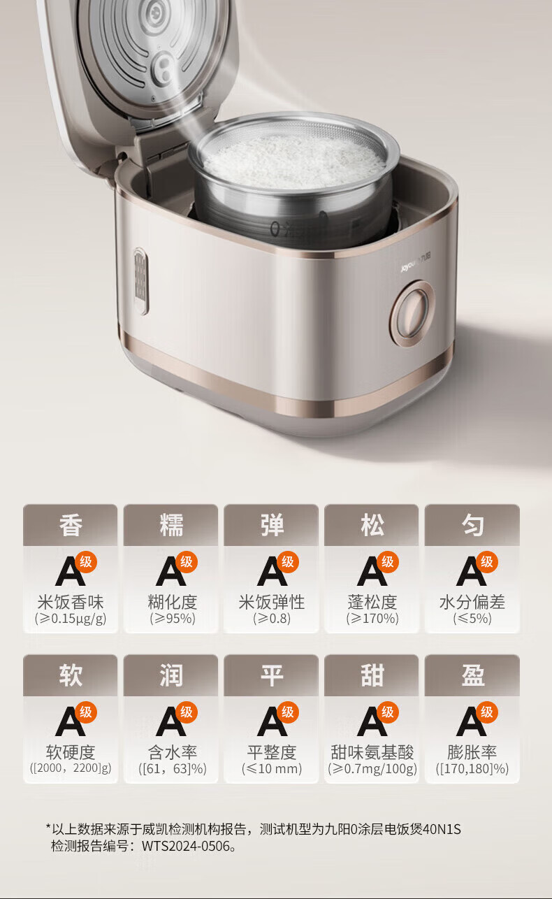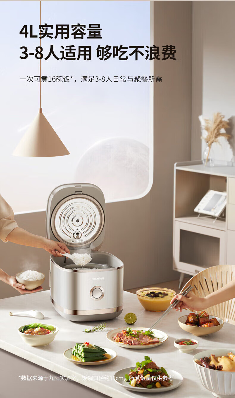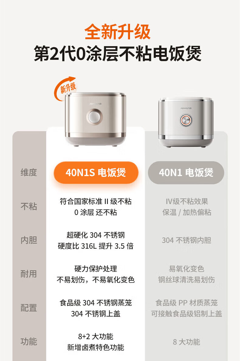 九阳(Joyoung)电饭煲 无涂层不粘电饭锅IH加热超硬化304不锈钢内胆健康不粘IH加热多功能电饭锅 4升3-8人使用 健康不粘IH加热 40N1S- 4L 4L