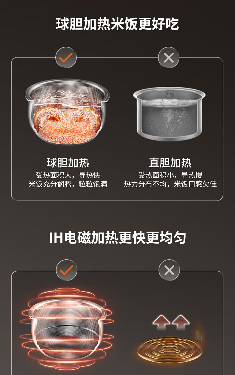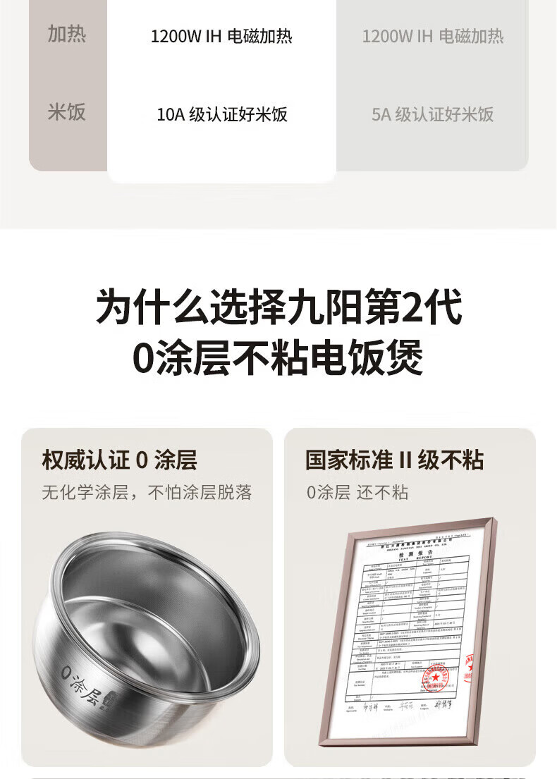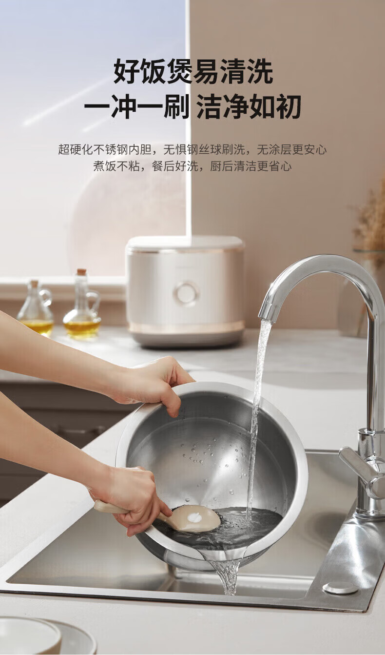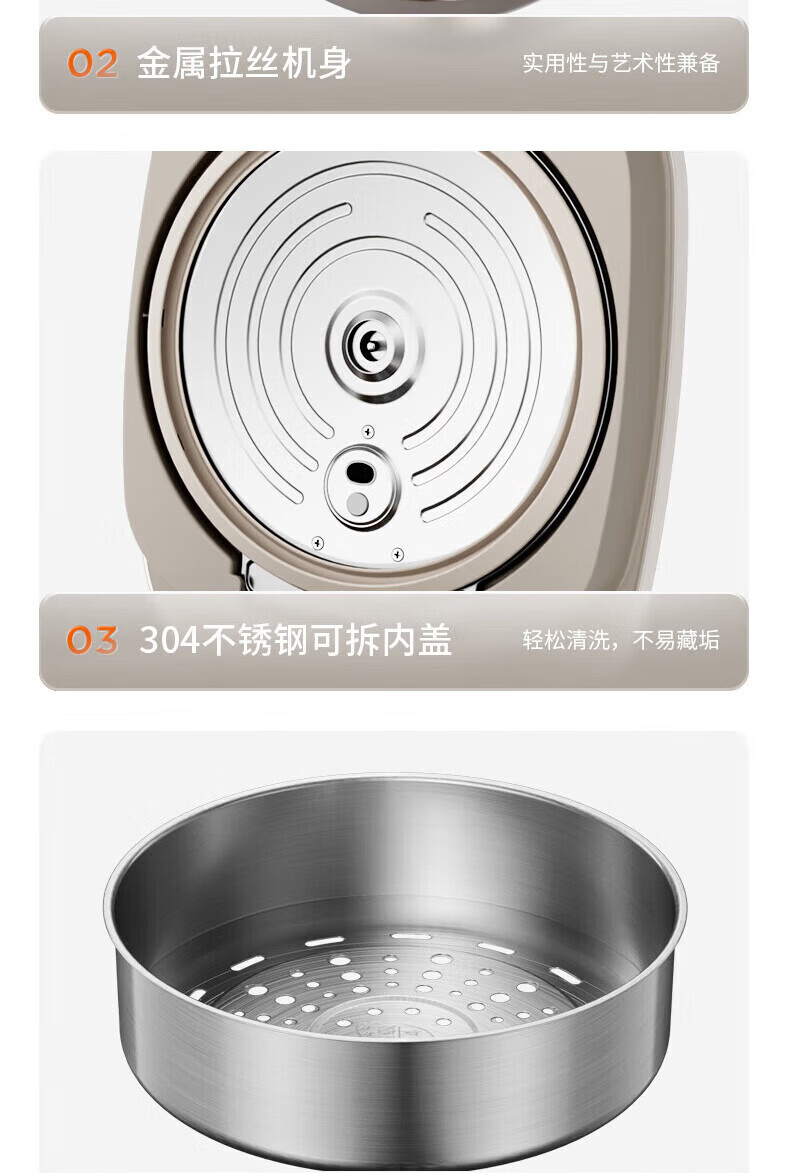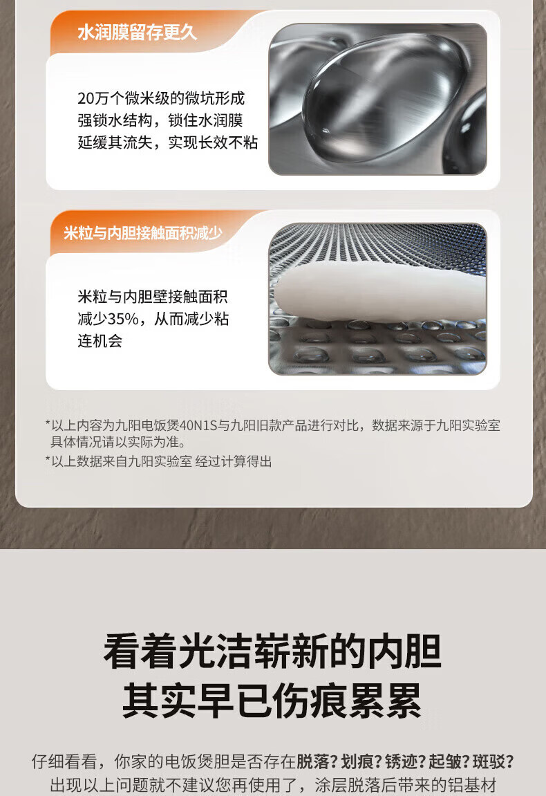 九阳(Joyoung)电饭煲 无涂层不粘电饭锅IH加热超硬化304不锈钢内胆健康不粘IH加热多功能电饭锅 4升3-8人使用 健康不粘IH加热 40N1S- 4L 4L