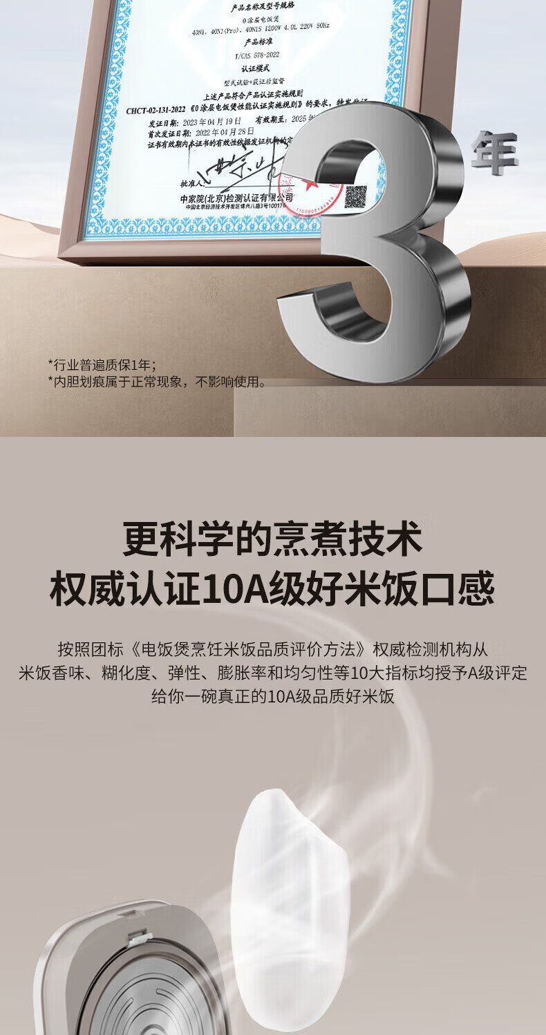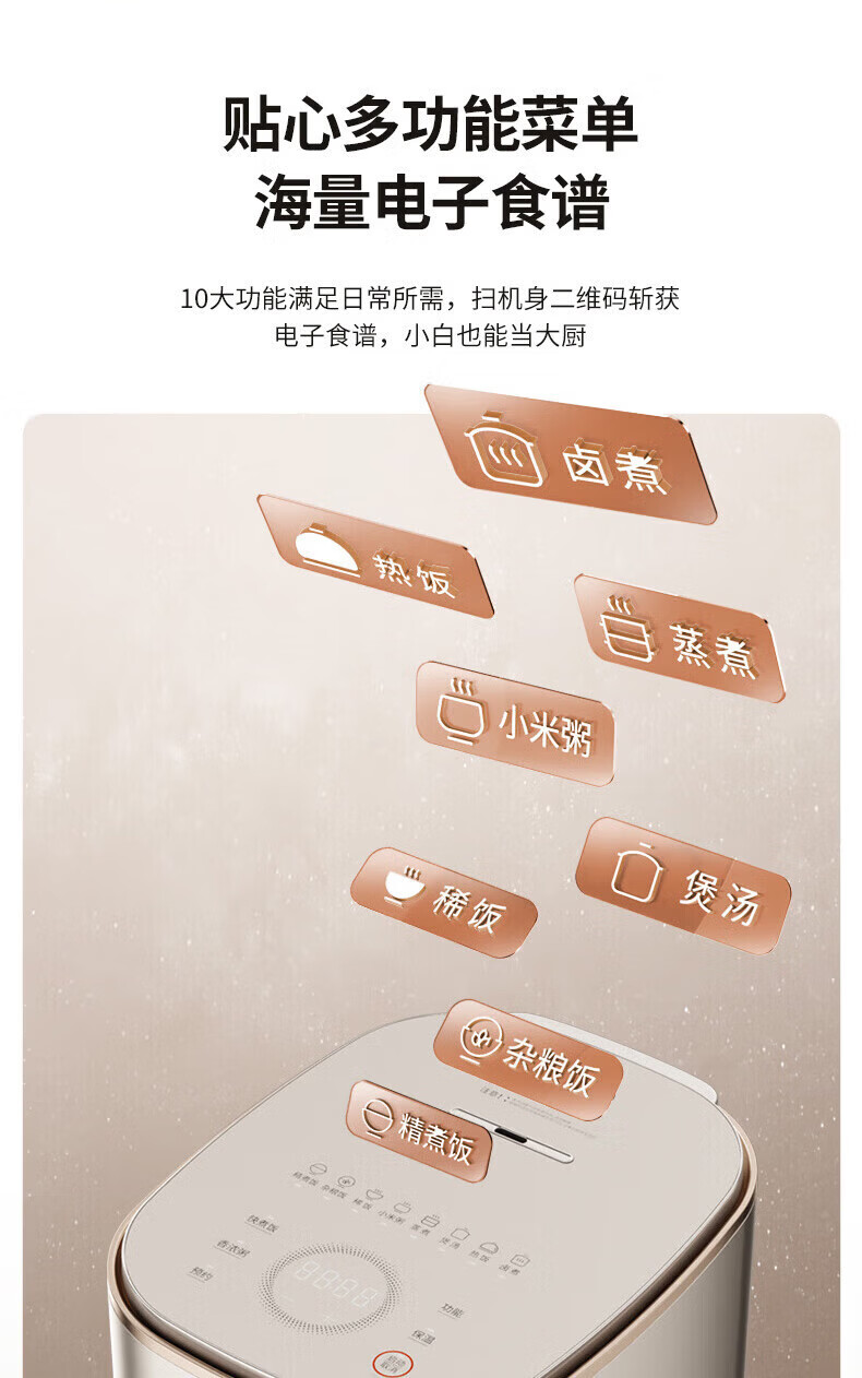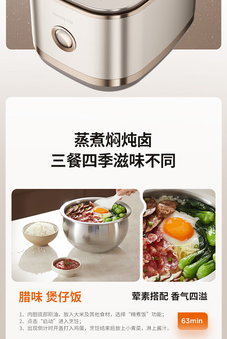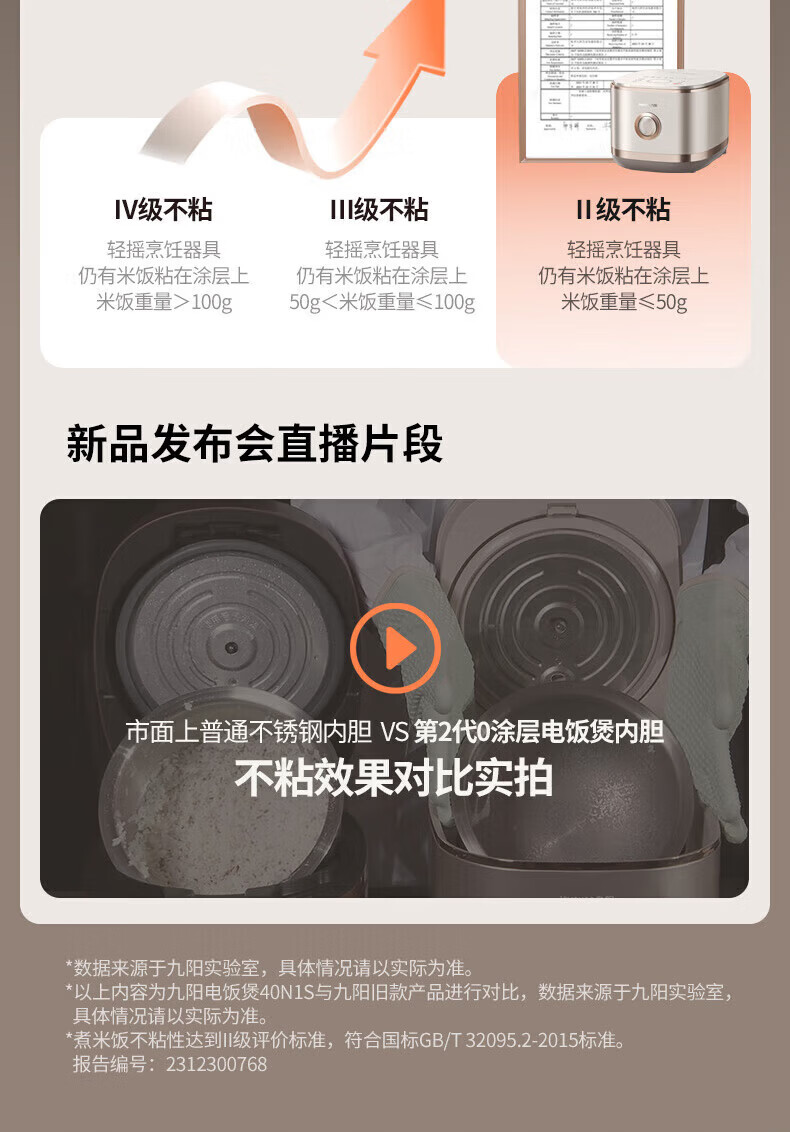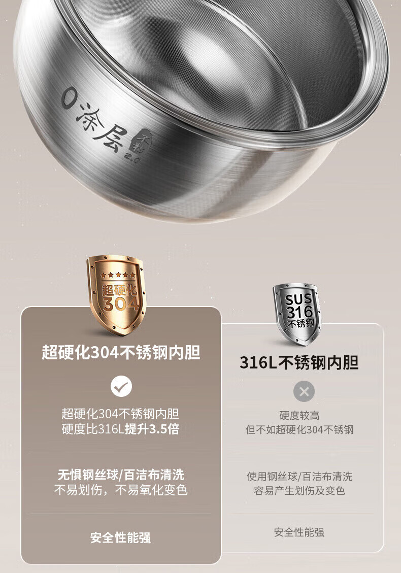 九阳(Joyoung)电饭煲 无涂层不粘电饭锅IH加热超硬化304不锈钢内胆健康不粘IH加热多功能电饭锅 4升3-8人使用 健康不粘IH加热 40N1S- 4L 4L