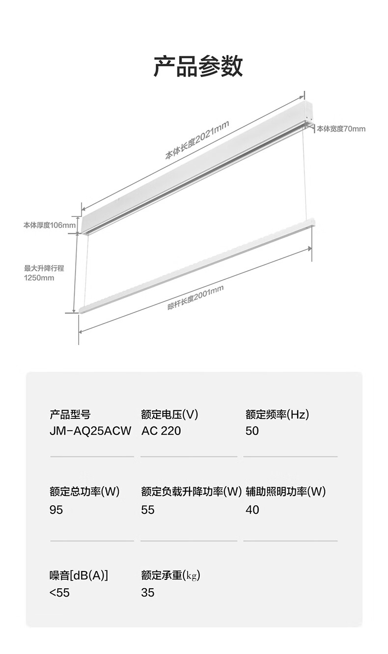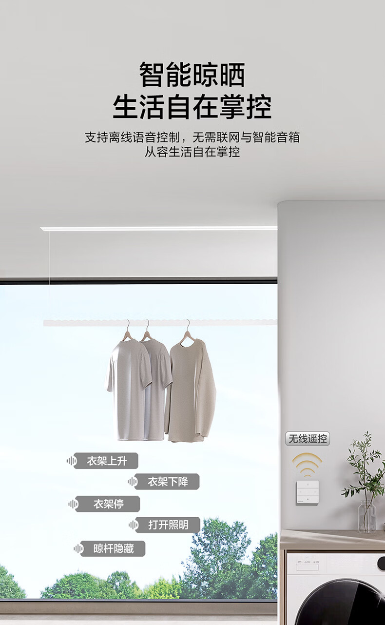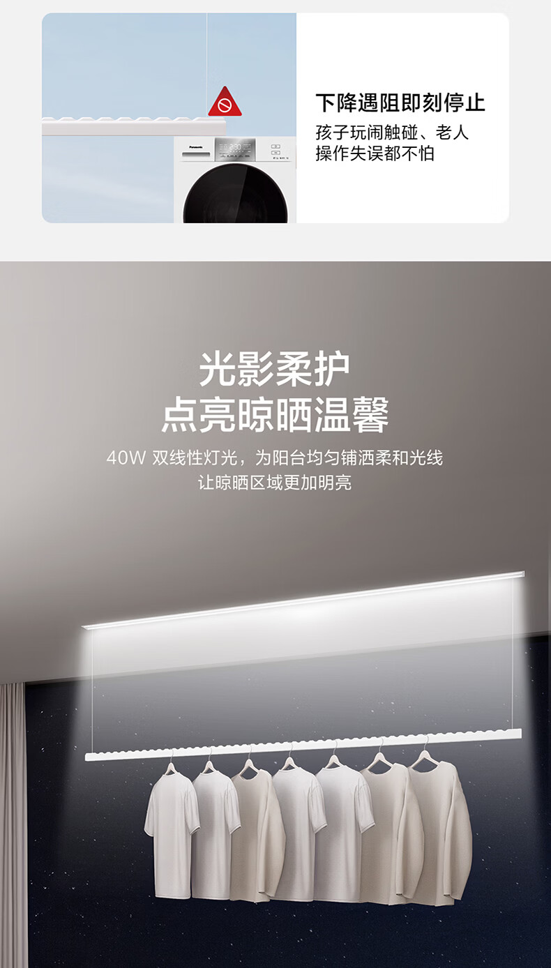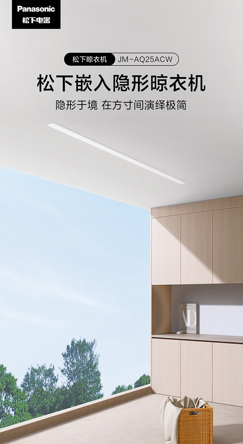 松下(Panasonic)电动晾衣架离线语音升降阳台隐形嵌入单杆晾衣机 单杆2米|离线语音【JM-AQ25ACW】