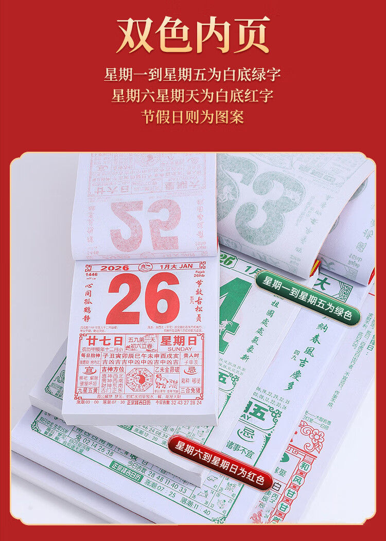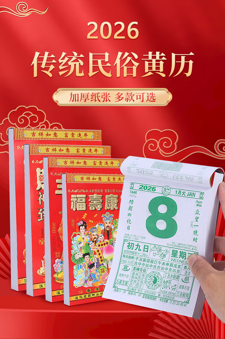 少年伴日历农历年历本挂式2026马年新年礼物老黄历挂历手撕家用挂墙传统挂厉 9k台历一本随机发CHM-207