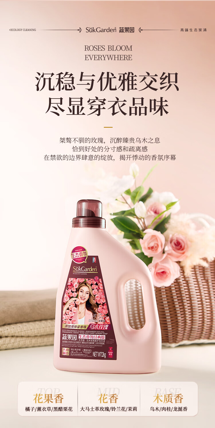 蔬果园洗衣液12斤大师香氛乌木玫瑰持久留香72小时除菌除螨深层洁净