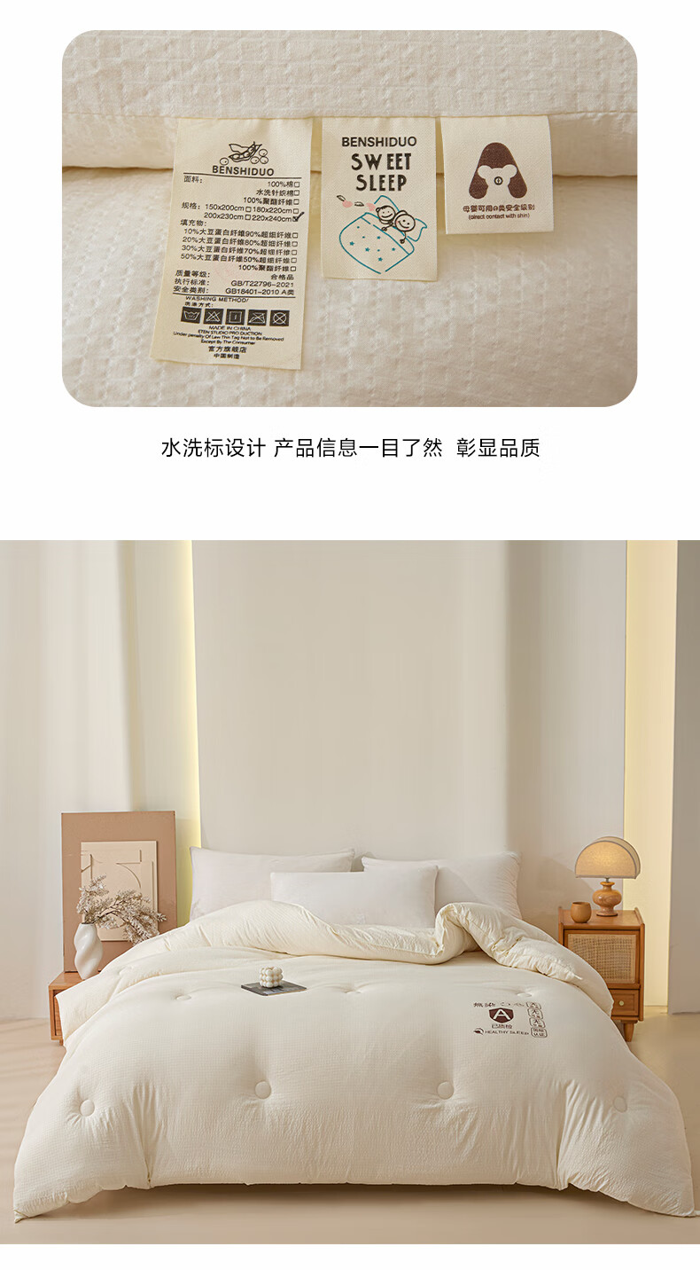 VJE大豆纤维被子冬被棉被芯被褥子学生宿舍单人加厚被春秋被四季通用 白【支持质检 假一赔十】 150*200cm【约4斤重】春秋被