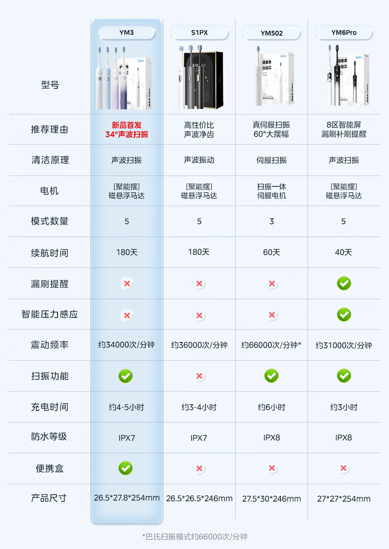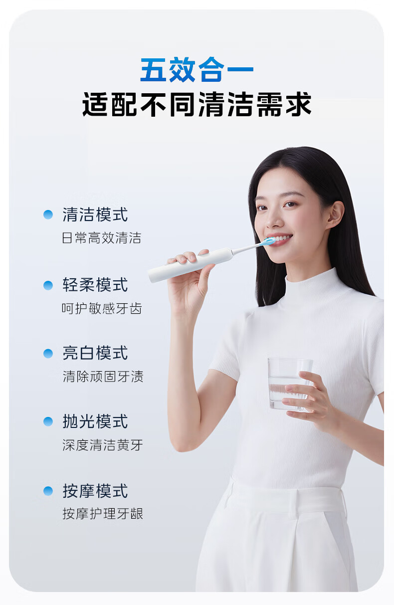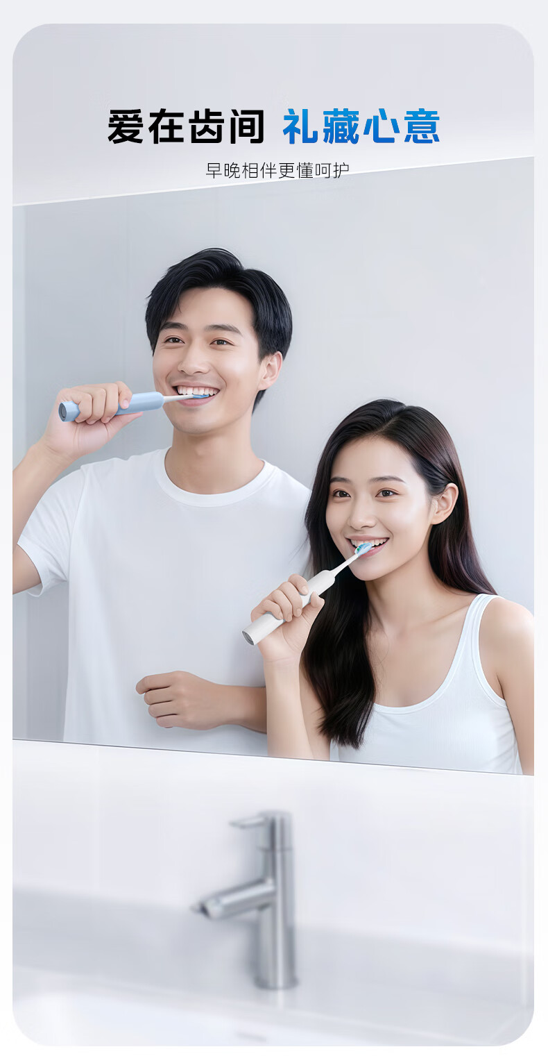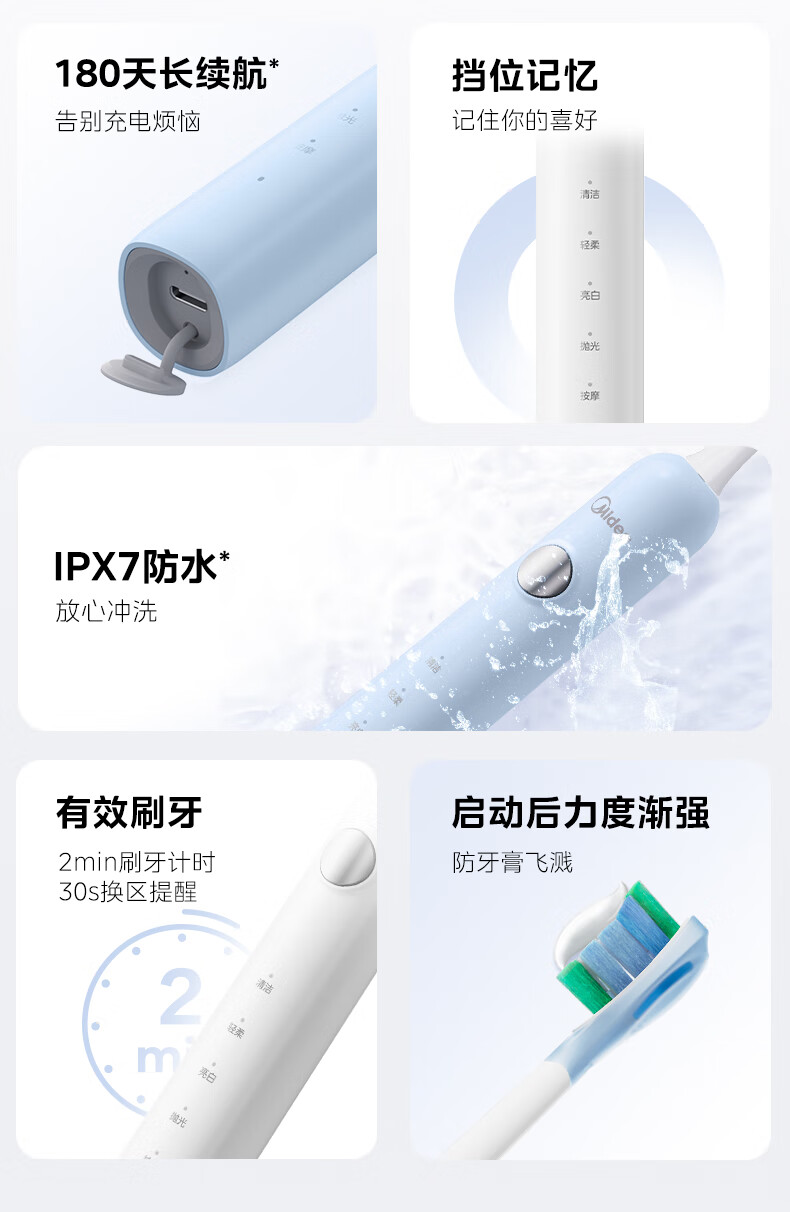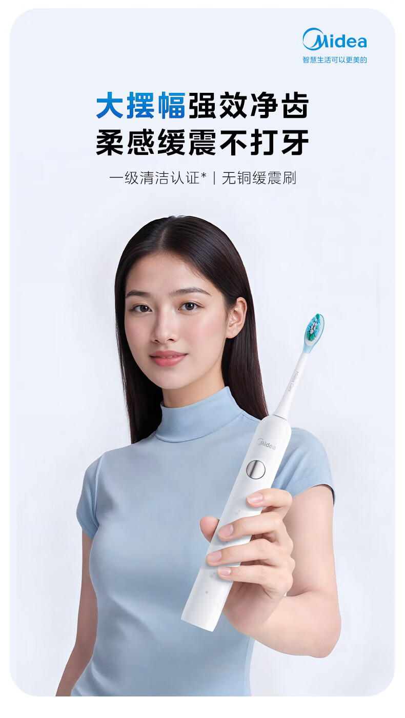 美的(Midea)电动牙刷成人声波扫振便携 180天长续航5种清洁模式 高效清洁牙齿YM3白色男女士 年货节情人节礼物