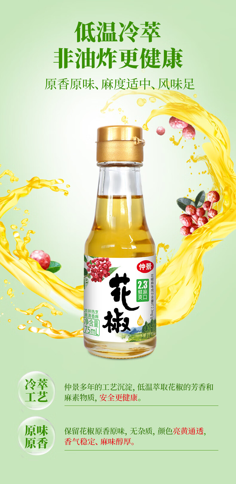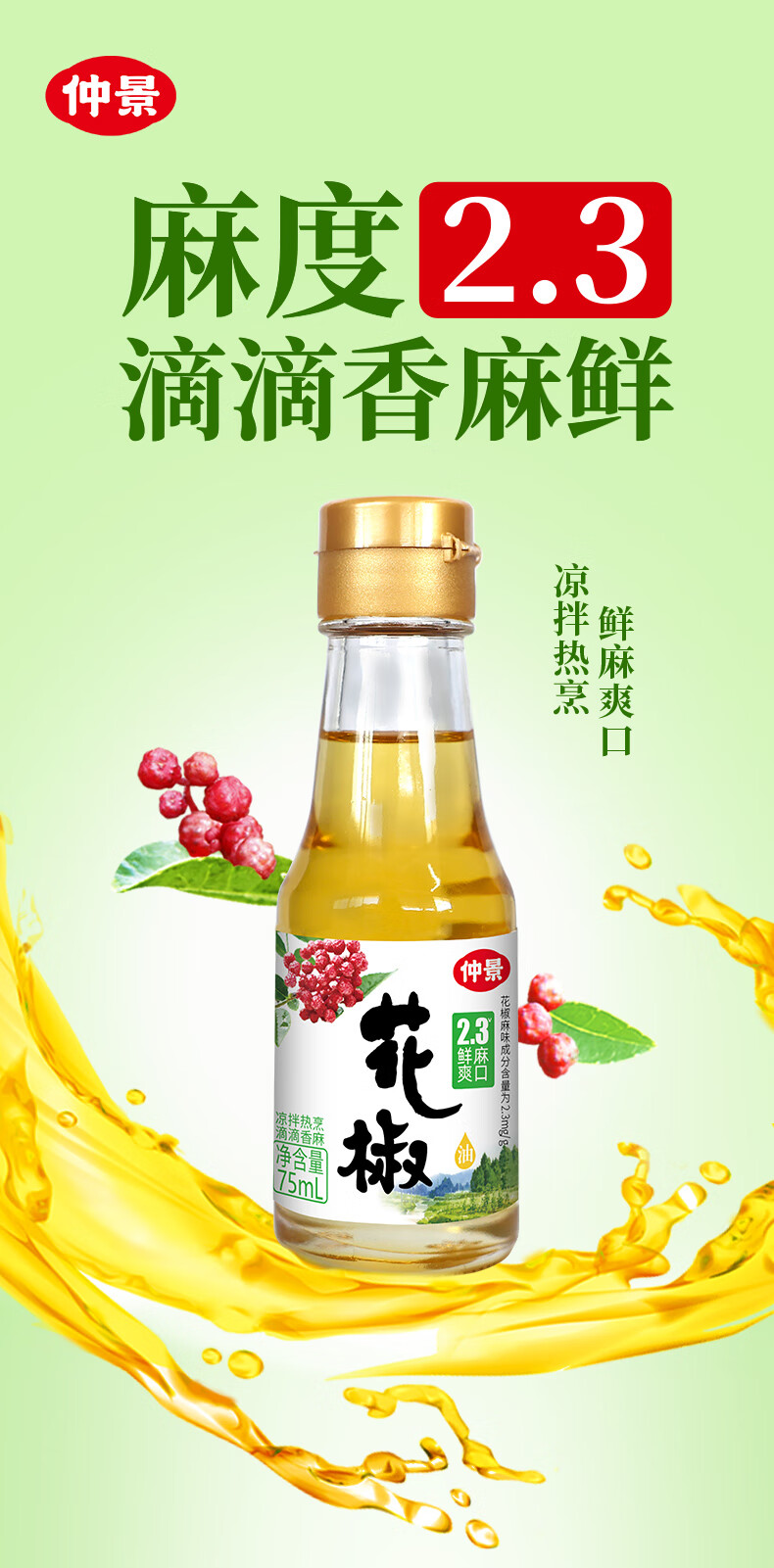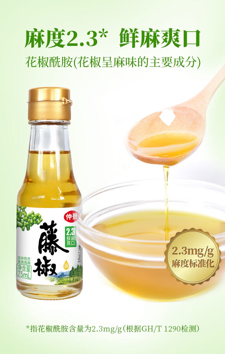 仲景 鲜花椒油藤椒油芥末油试用装 火锅麻辣烫凉拌菜海鲜料理调味油 花椒油75mlx2瓶