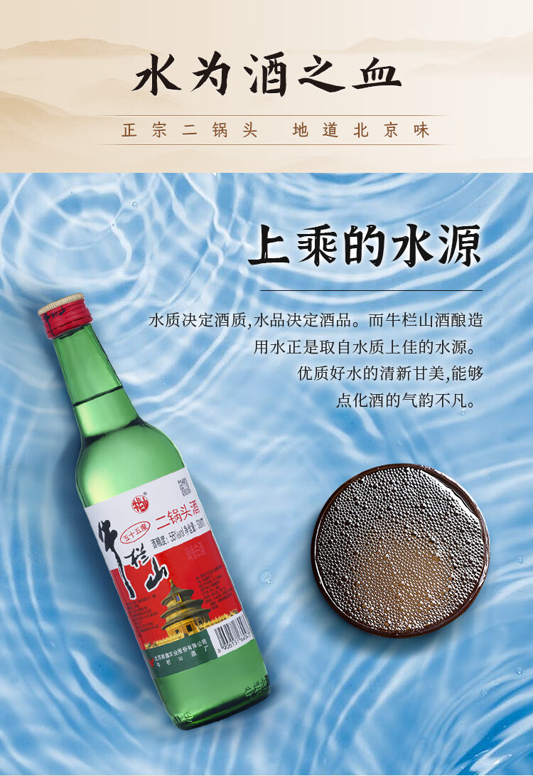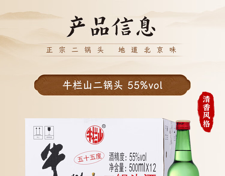 牛栏山 二锅头酒 绿牛二 清香风格 55度 500ml*1瓶 单瓶装