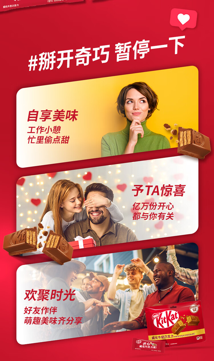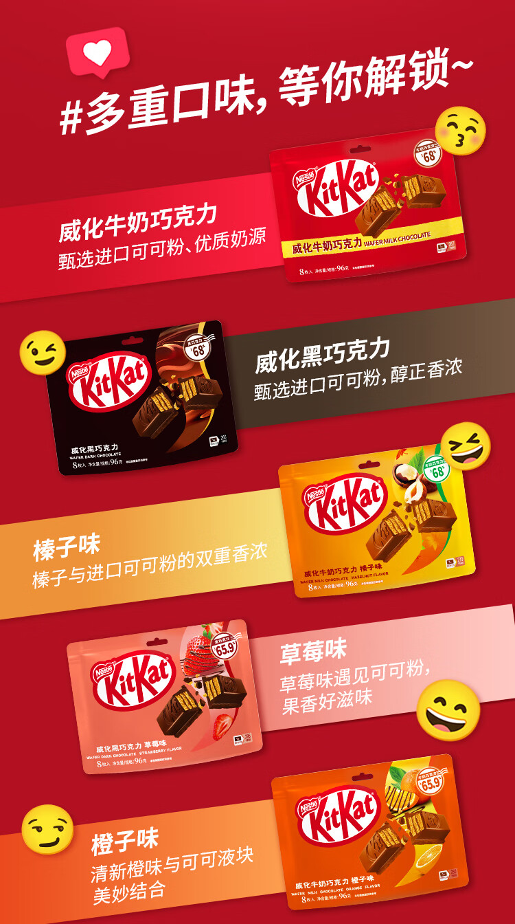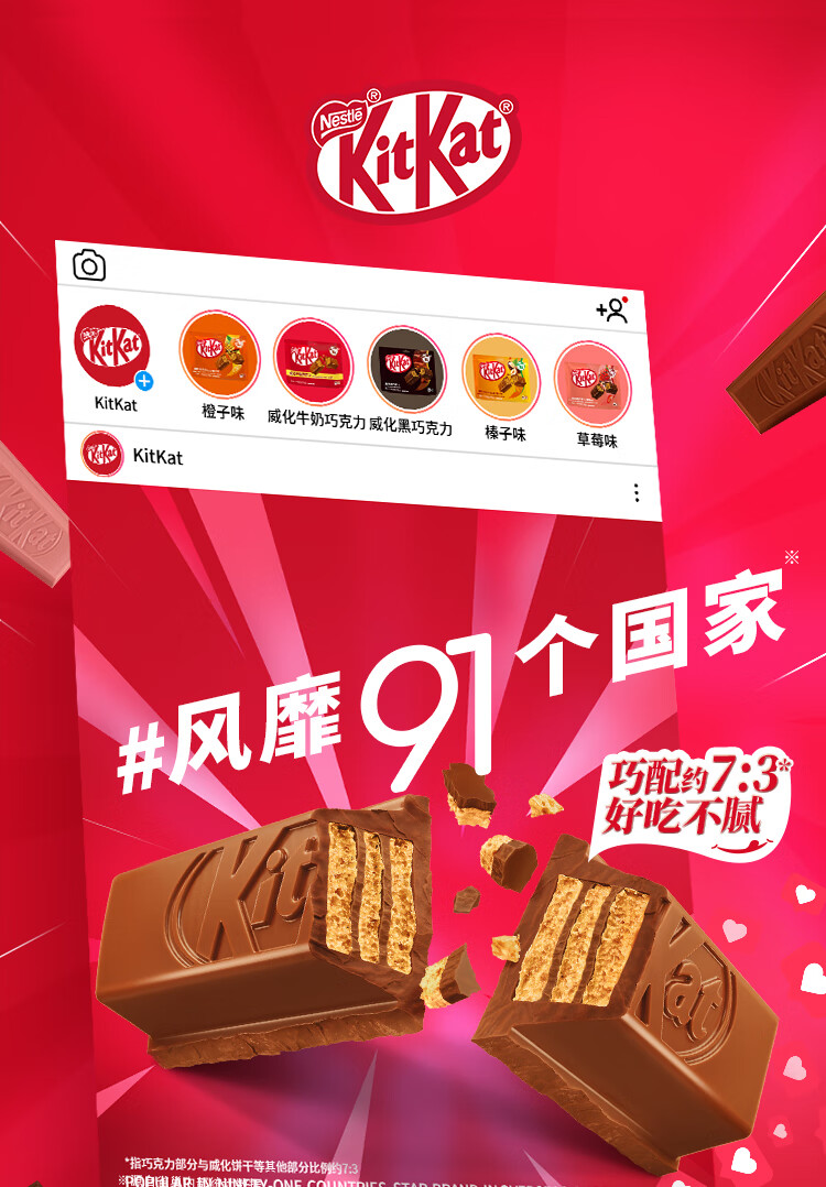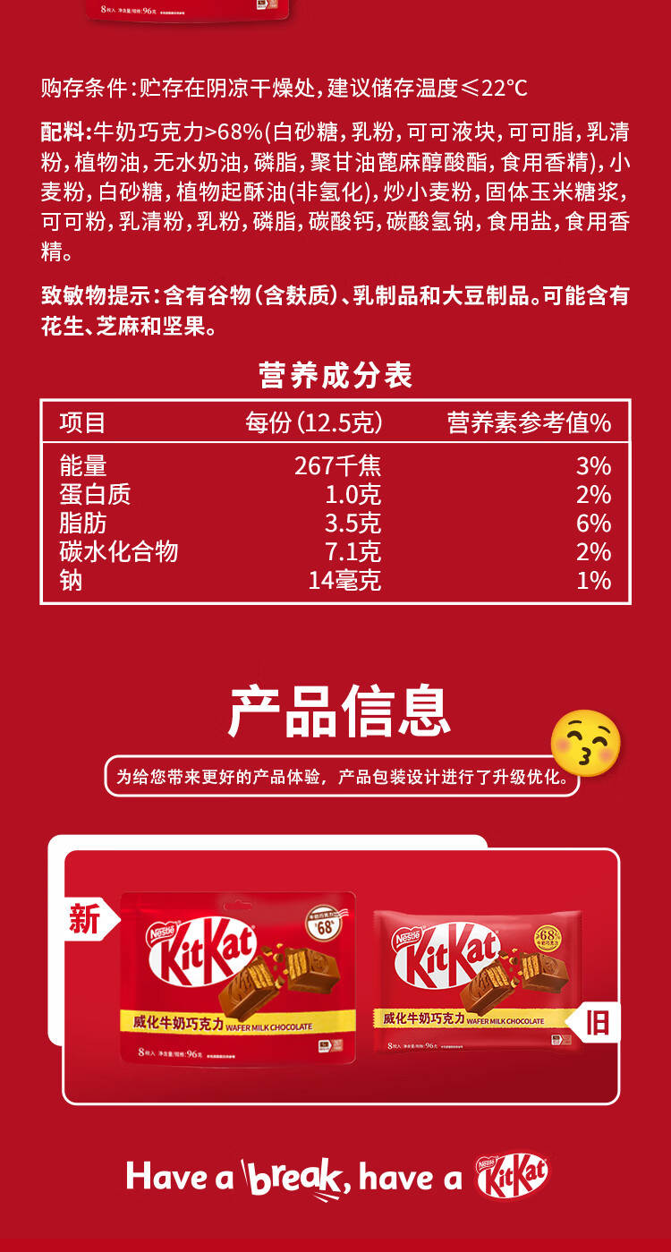 雀巢 奇巧kitkat 威化牛奶巧克力96g(8枚) 零食下午茶 休闲食品