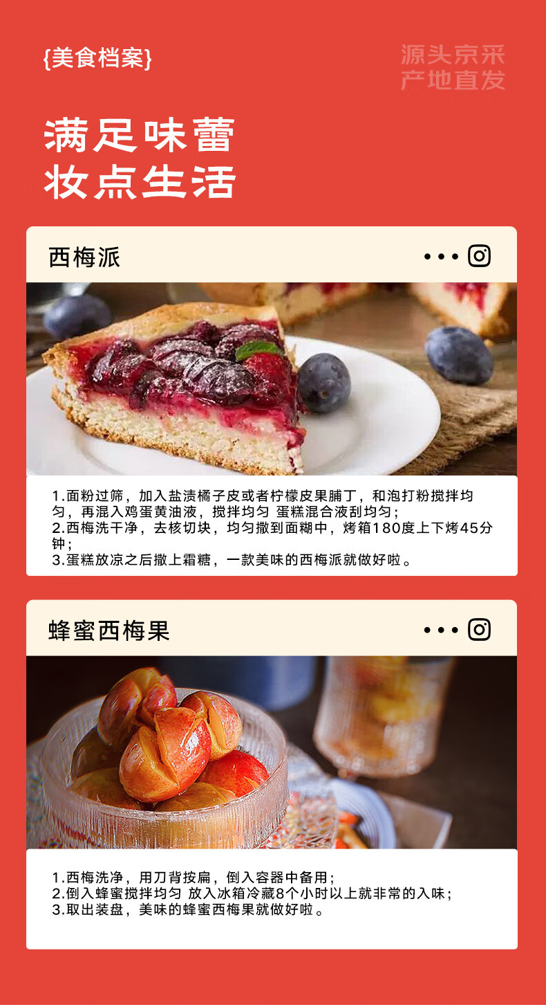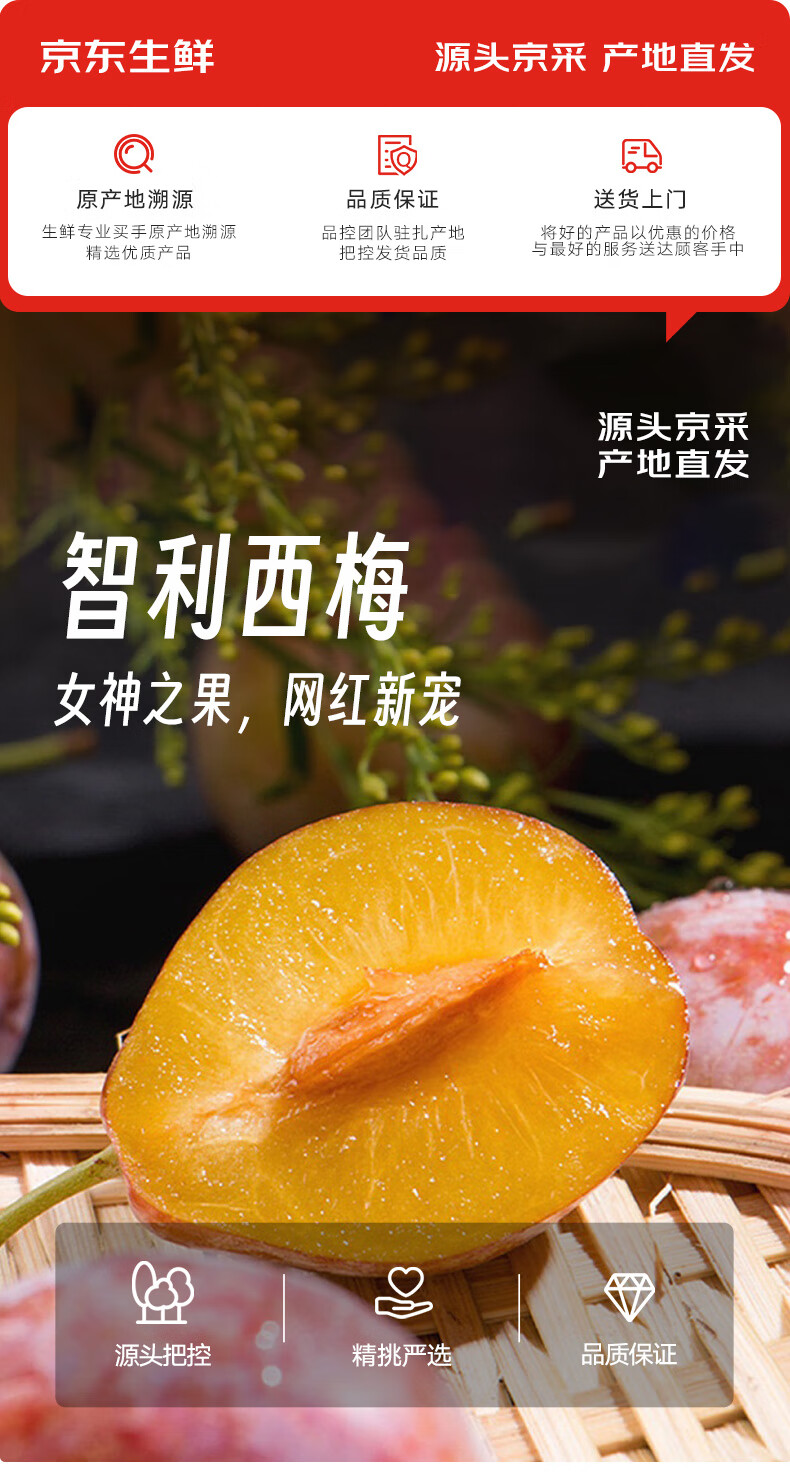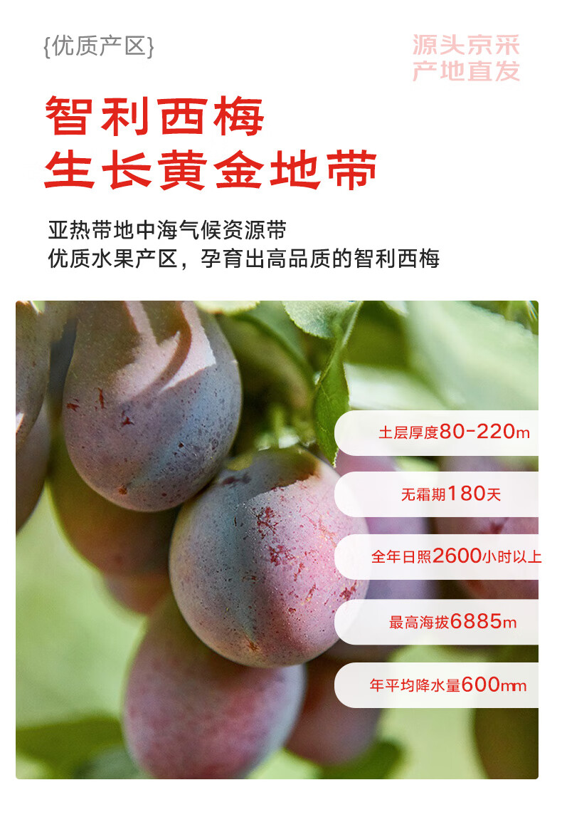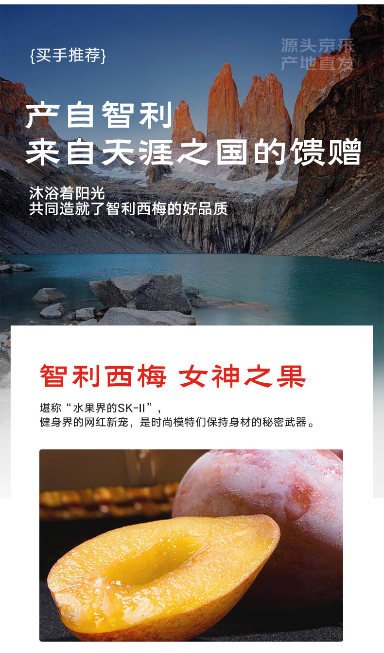 京鲜生 智利进口西梅J级大果500g装 单果20g起 新鲜水果