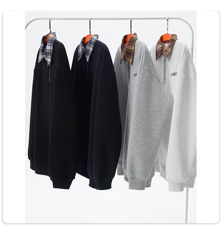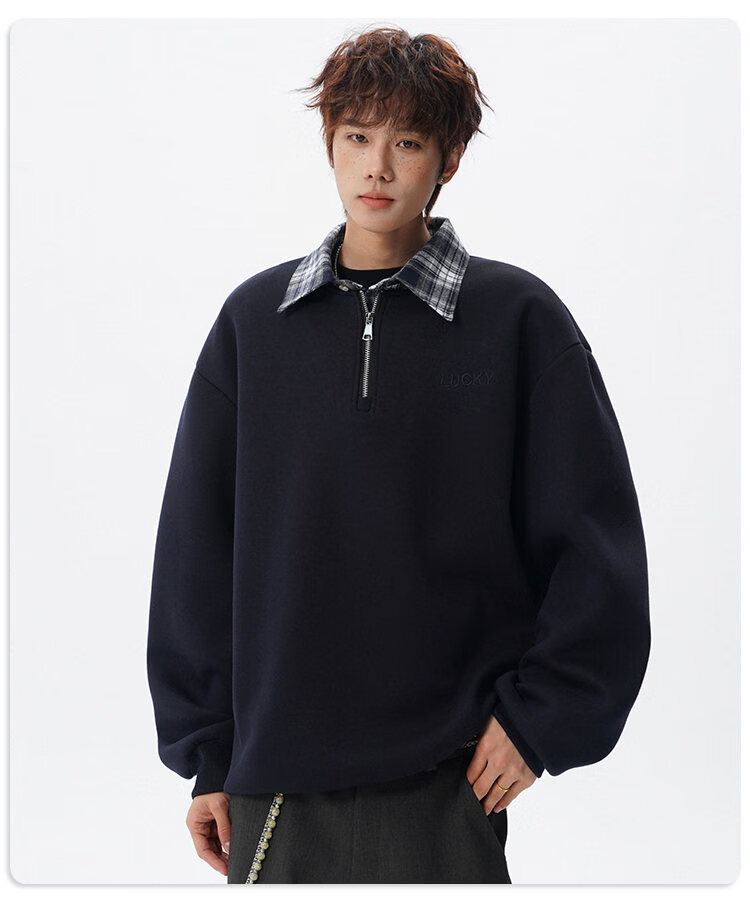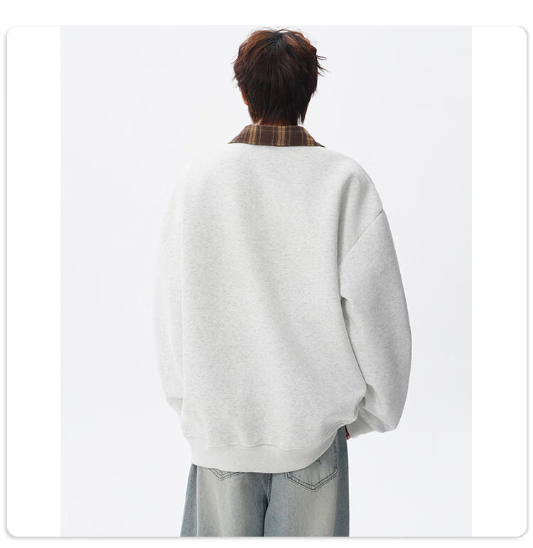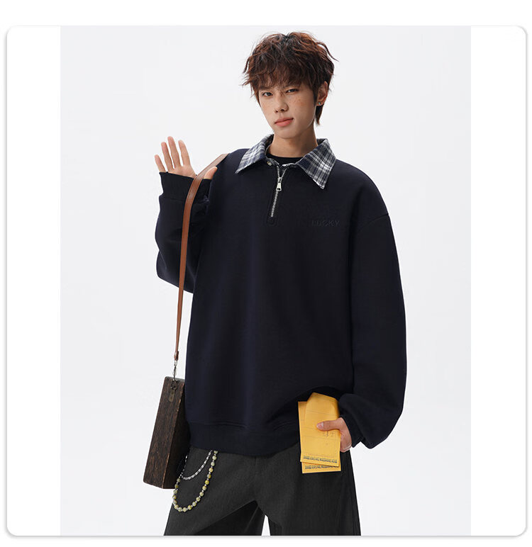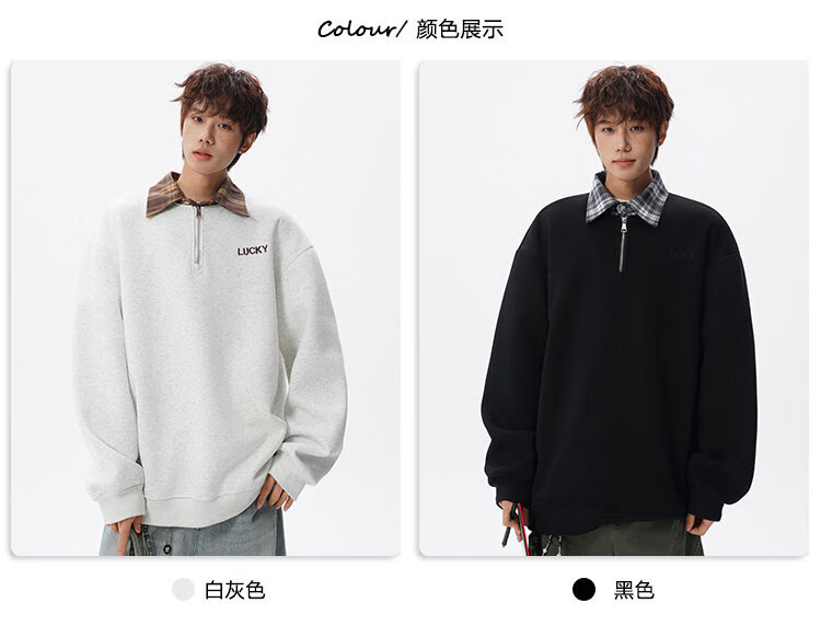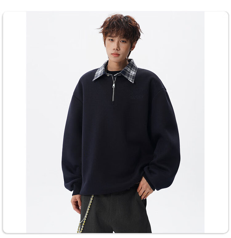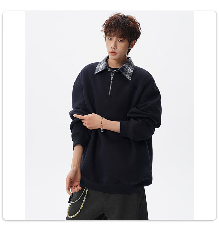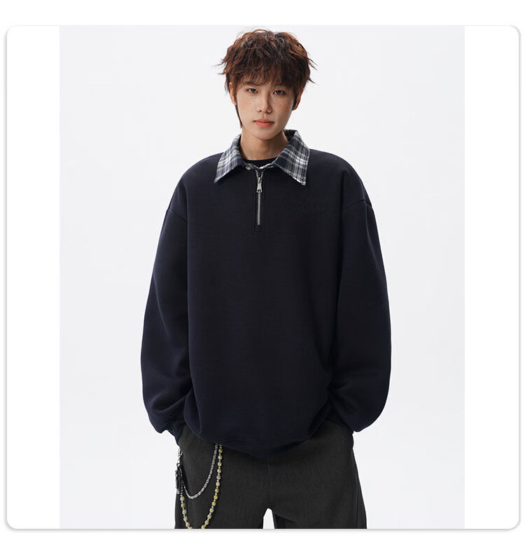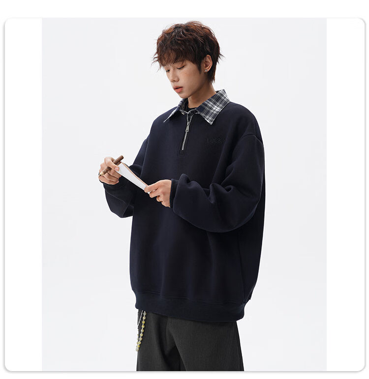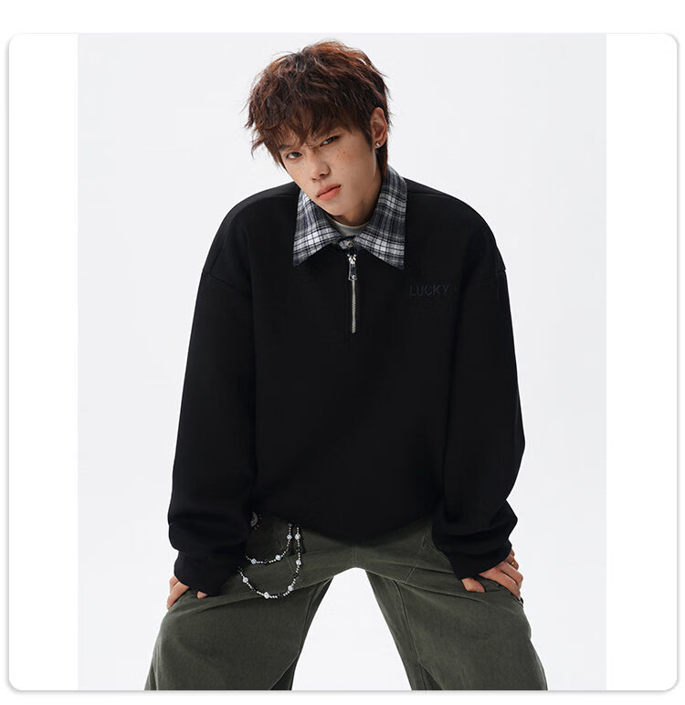 NEW OR MODE美式撞色假两件POLO衫卫衣男冬季新款加绒加厚保暖宽松套头打底衫 黑色加绒 M 【建议90-110斤】