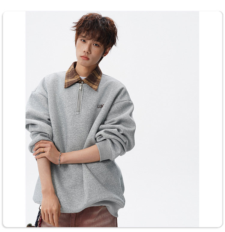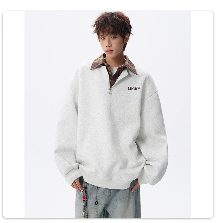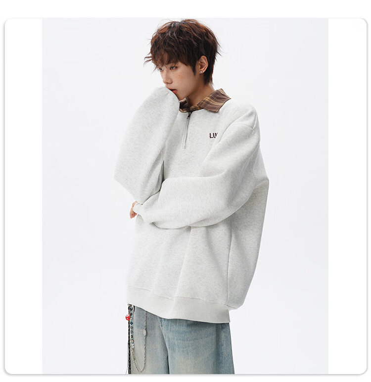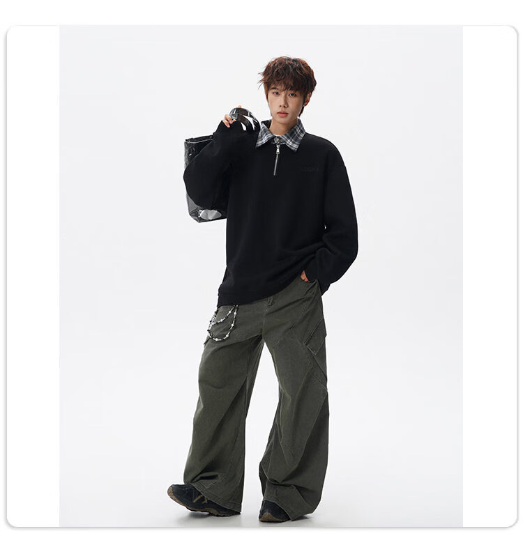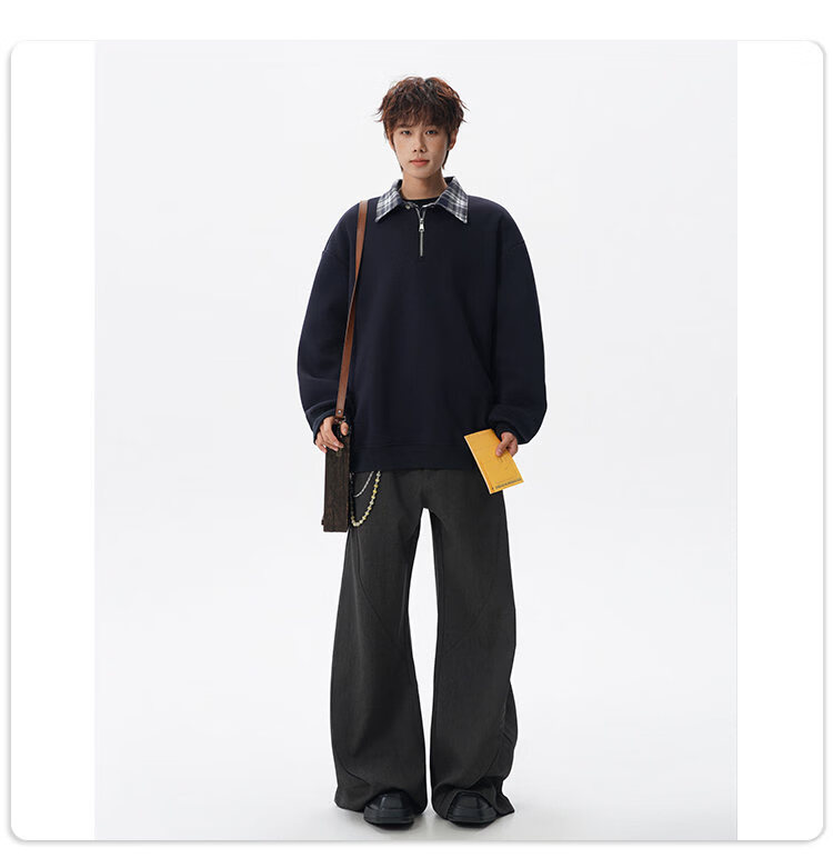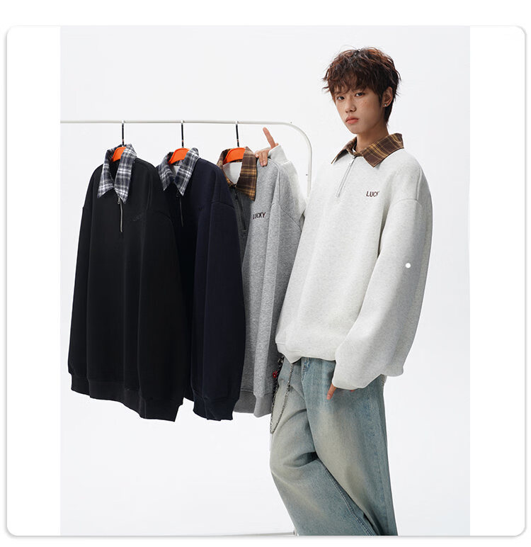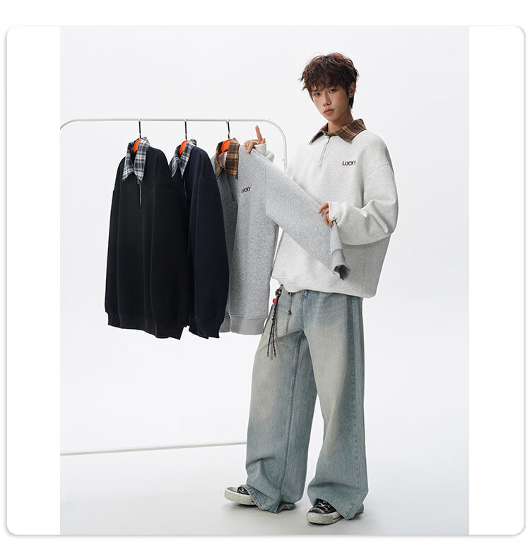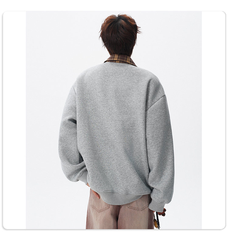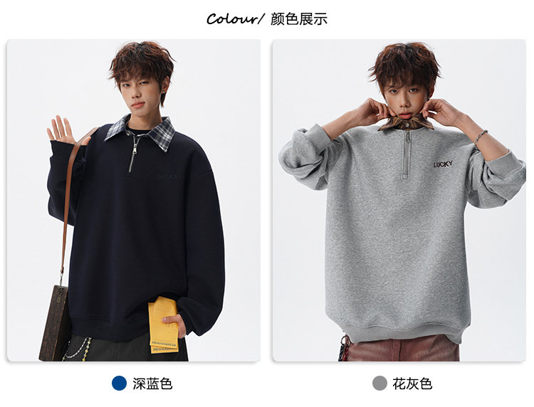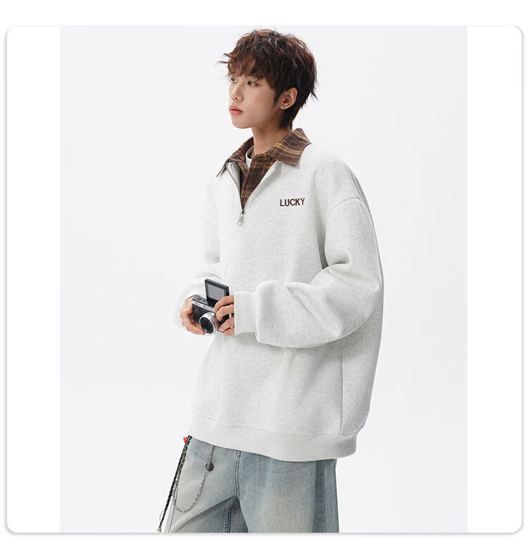 NEW OR MODE美式撞色假两件POLO衫卫衣男冬季新款加绒加厚保暖宽松套头打底衫 黑色加绒 M 【建议90-110斤】
