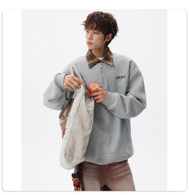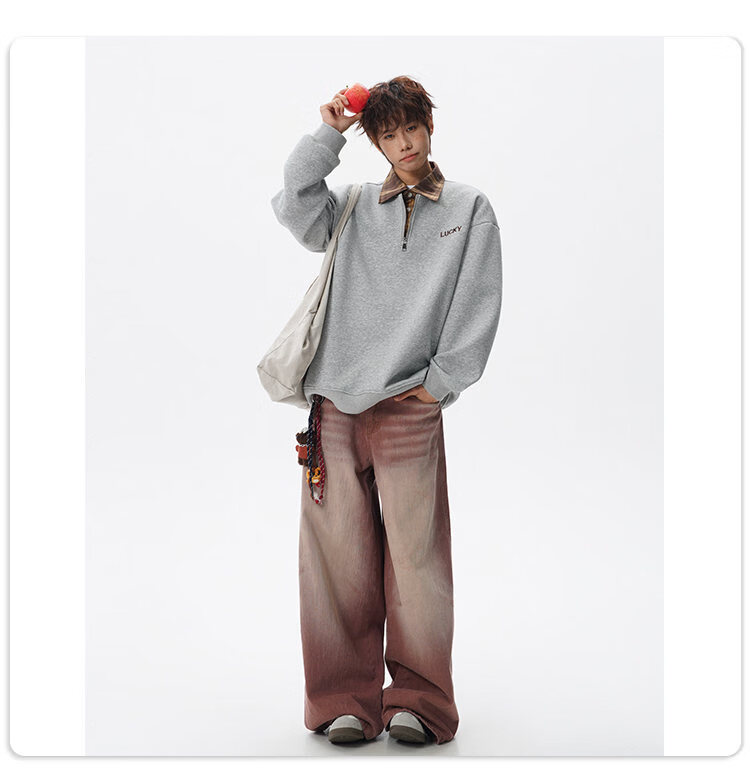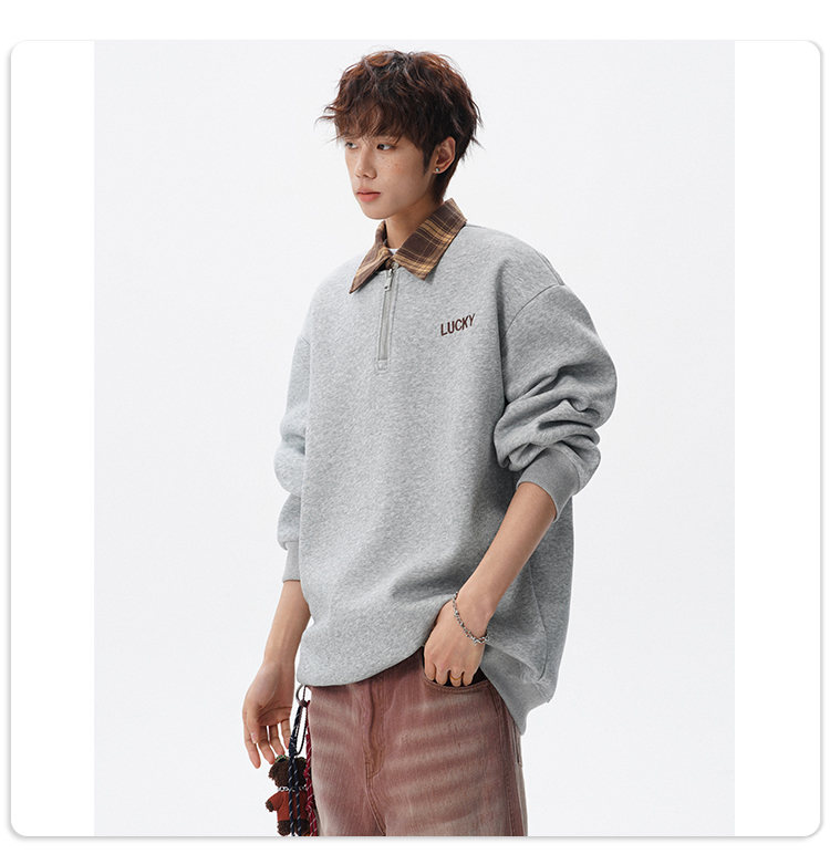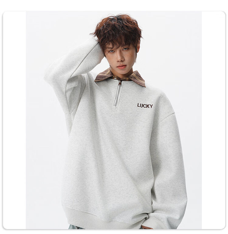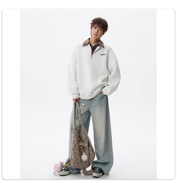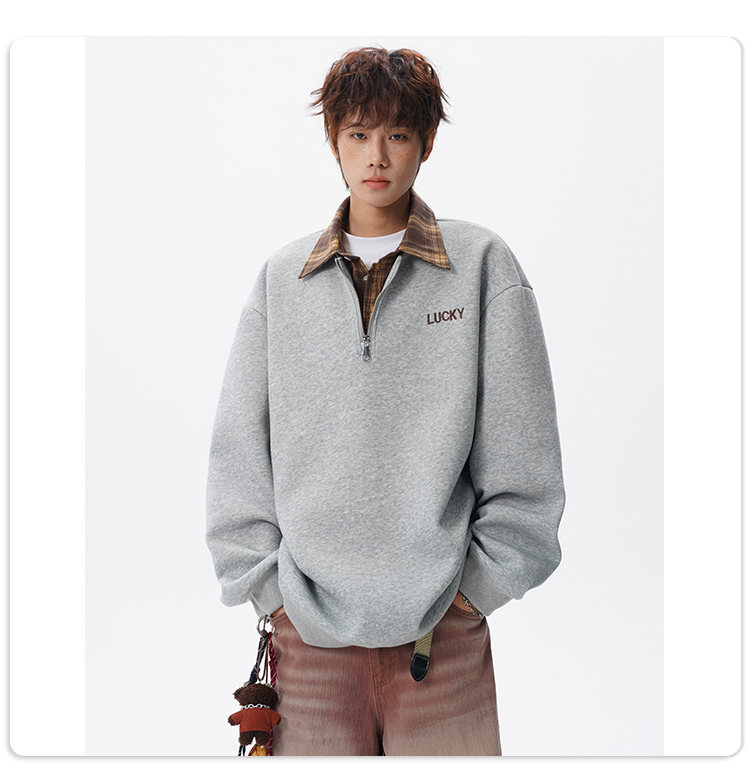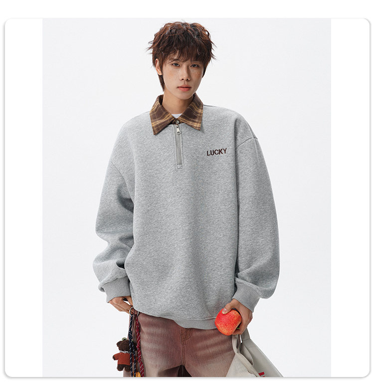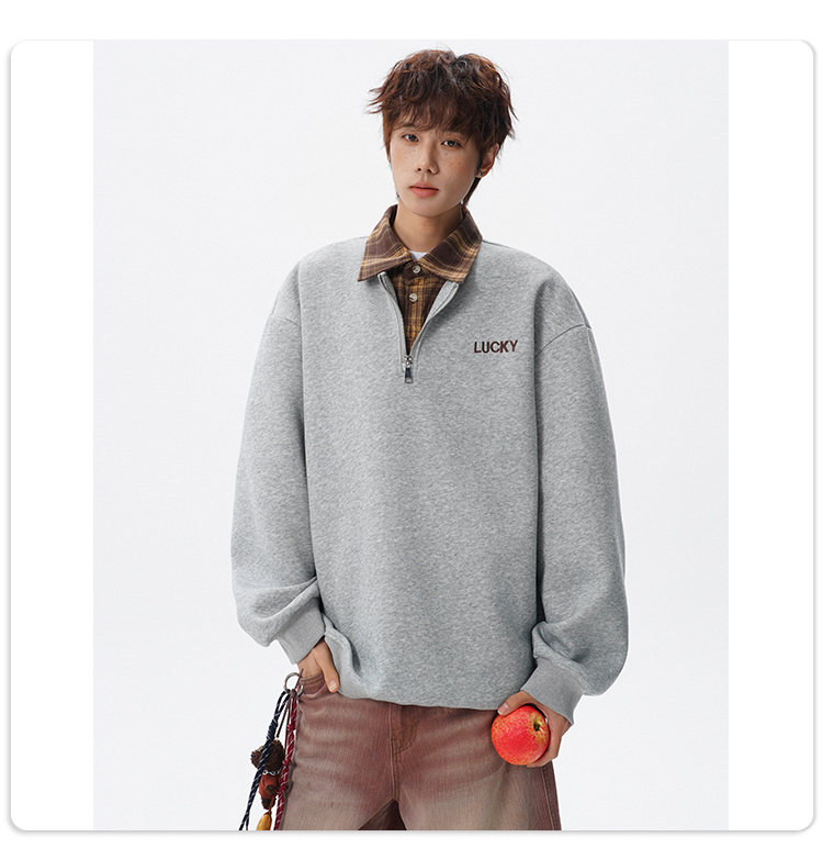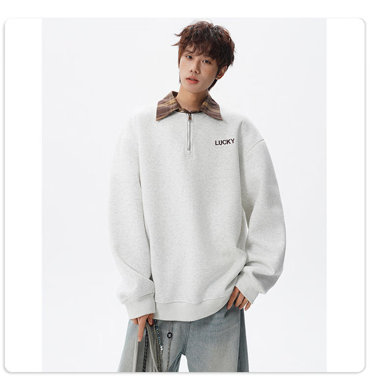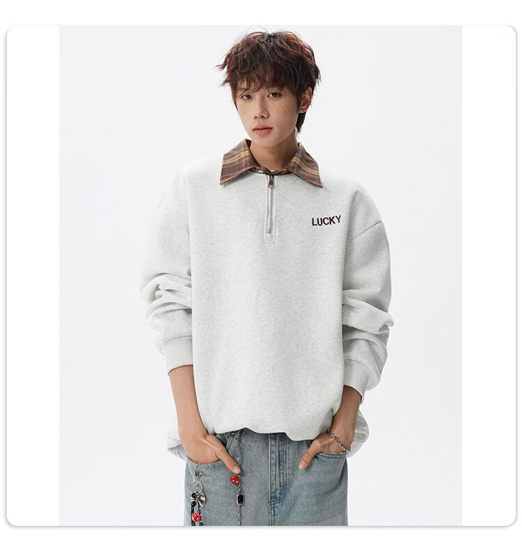 NEW OR MODE美式撞色假两件POLO衫卫衣男冬季新款加绒加厚保暖宽松套头打底衫 黑色加绒 M 【建议90-110斤】