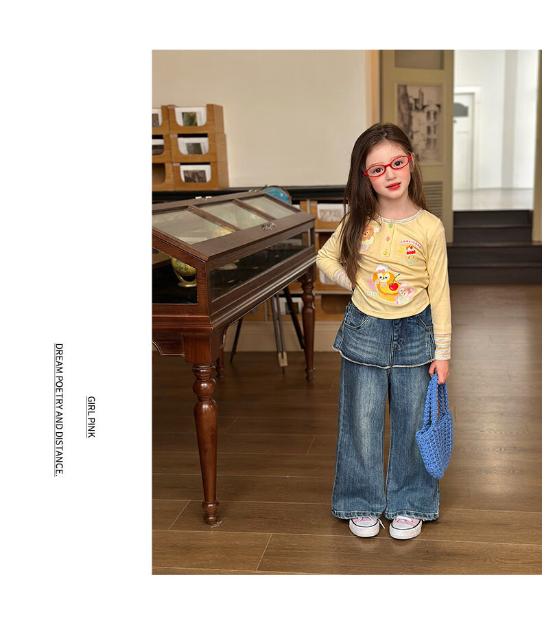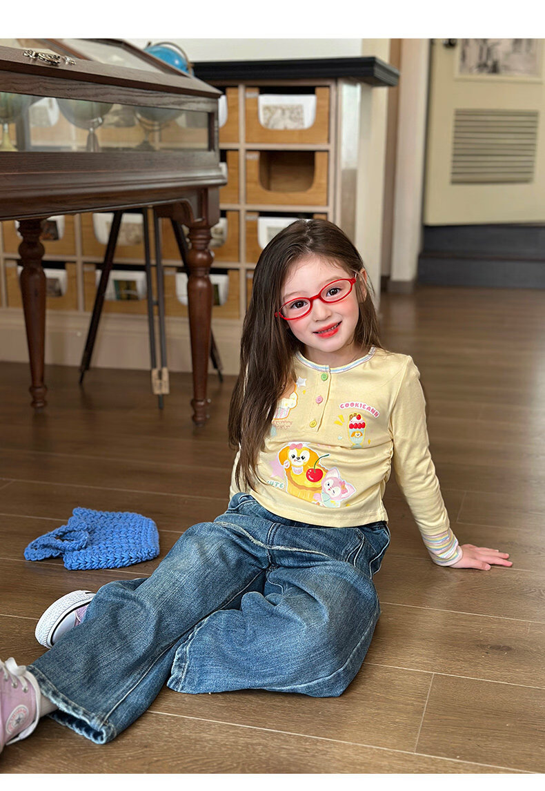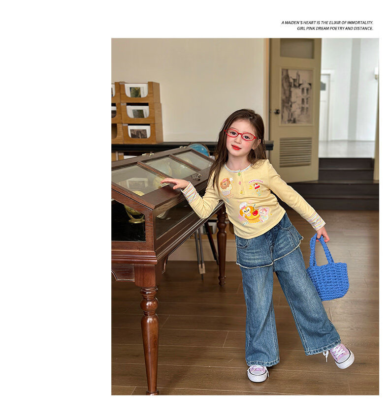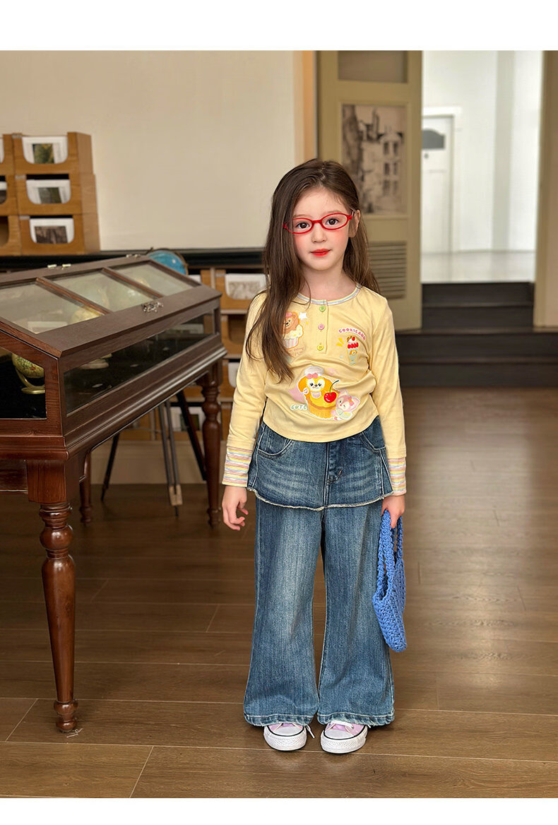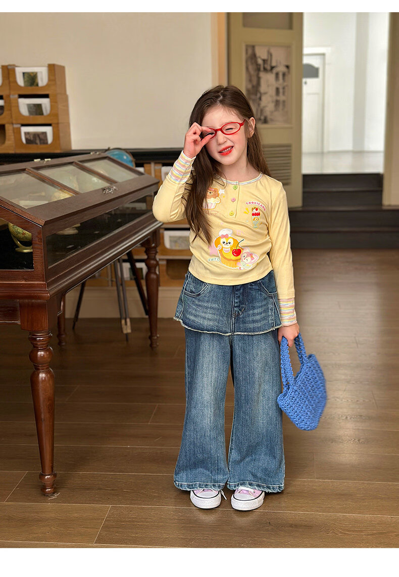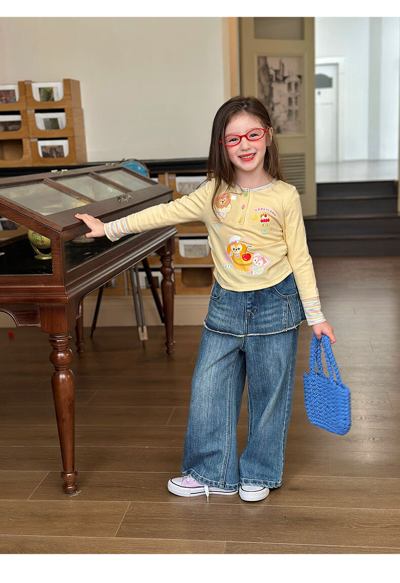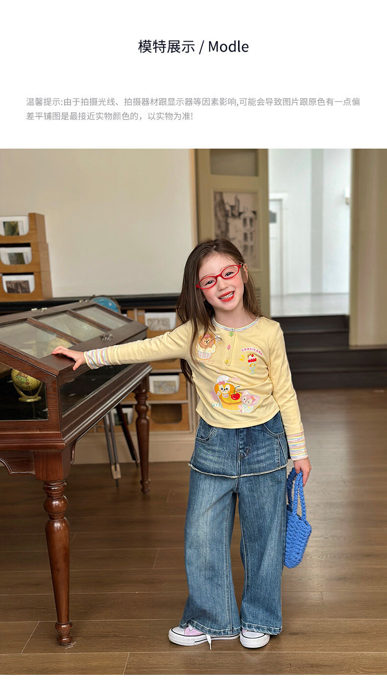 栀了成长记童装女童可爱假两件上衣2026春季儿童新款卡通长袖T恤 黄色 上衣 110 cm