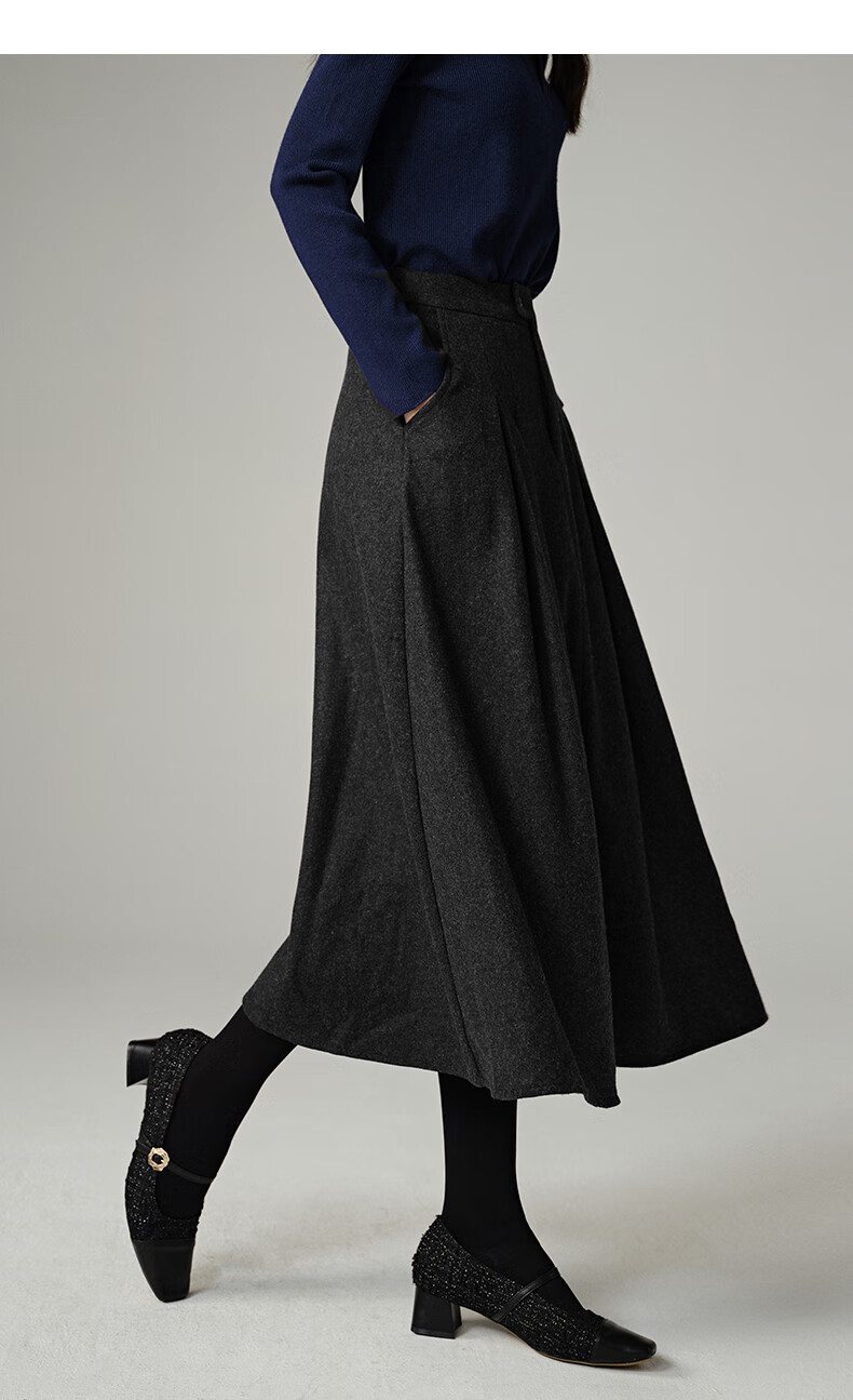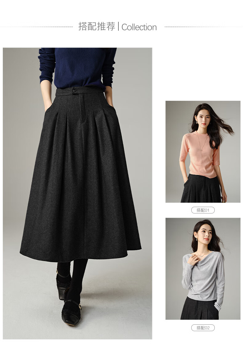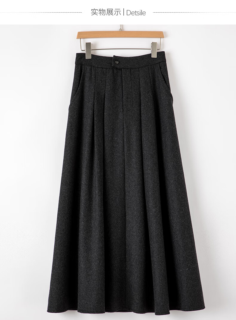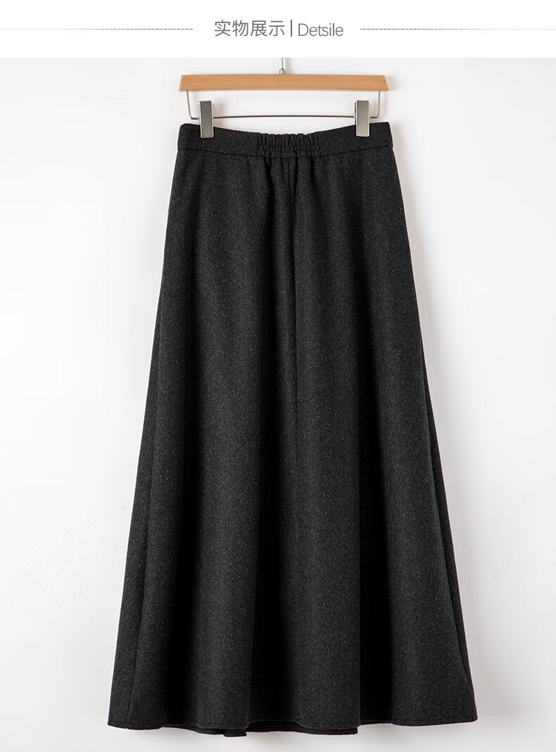 晚白【新品】冬款时尚半裙休闲高腰羊毛大摆半身裙【不含腰带】 深灰色 S