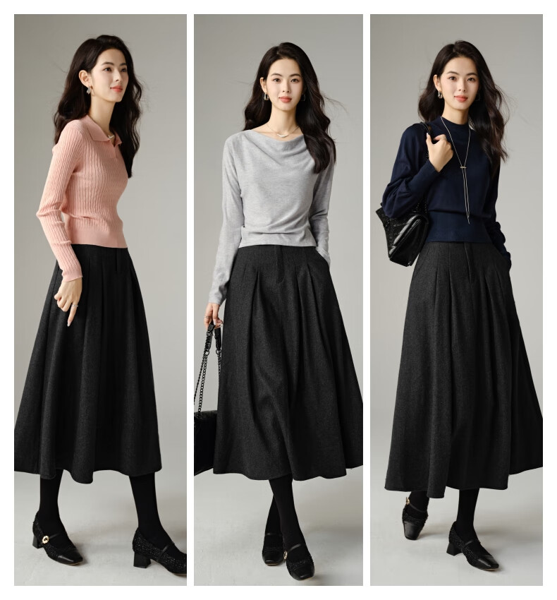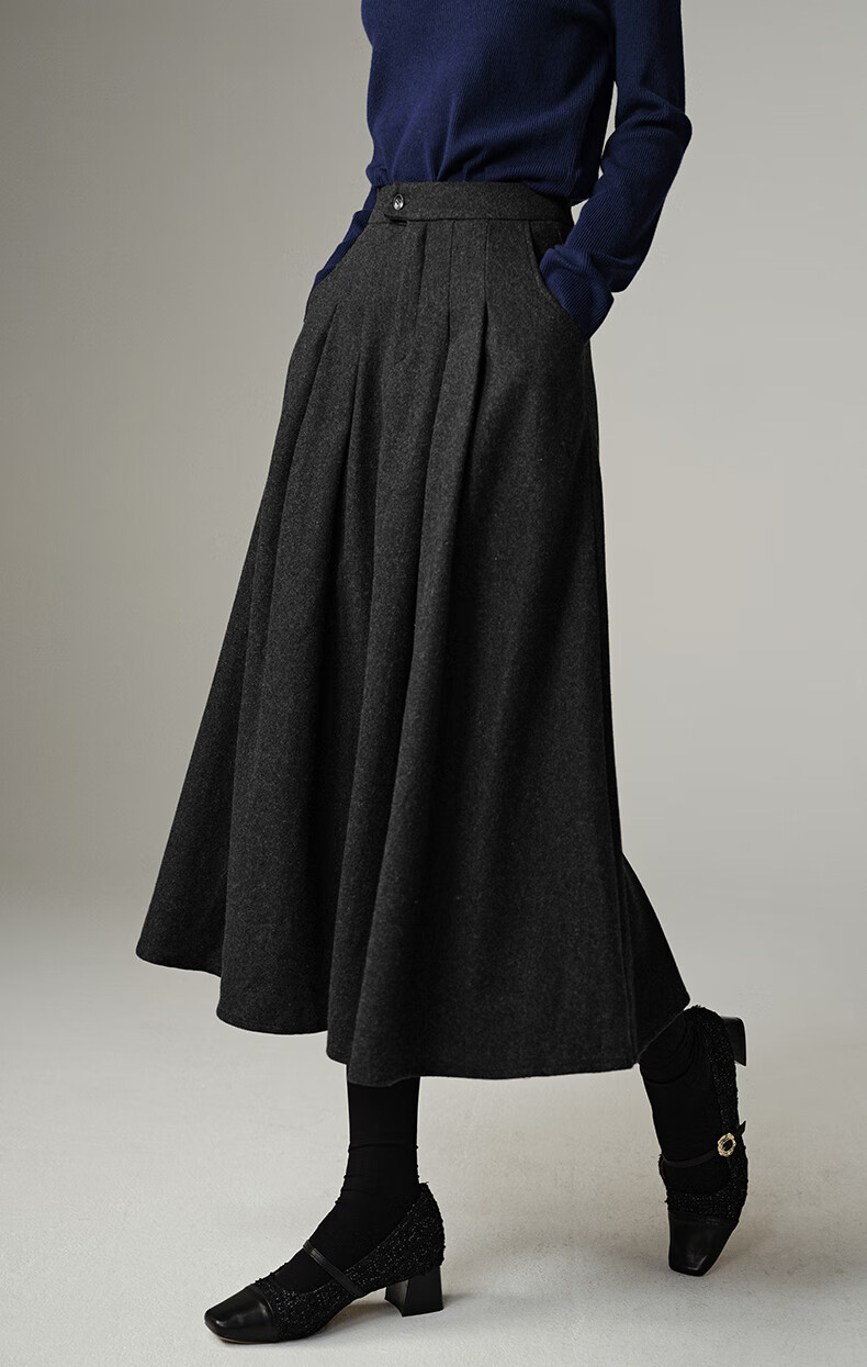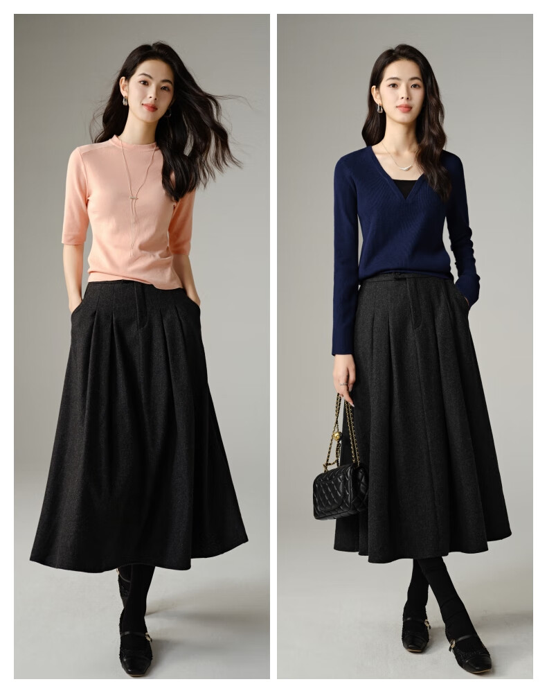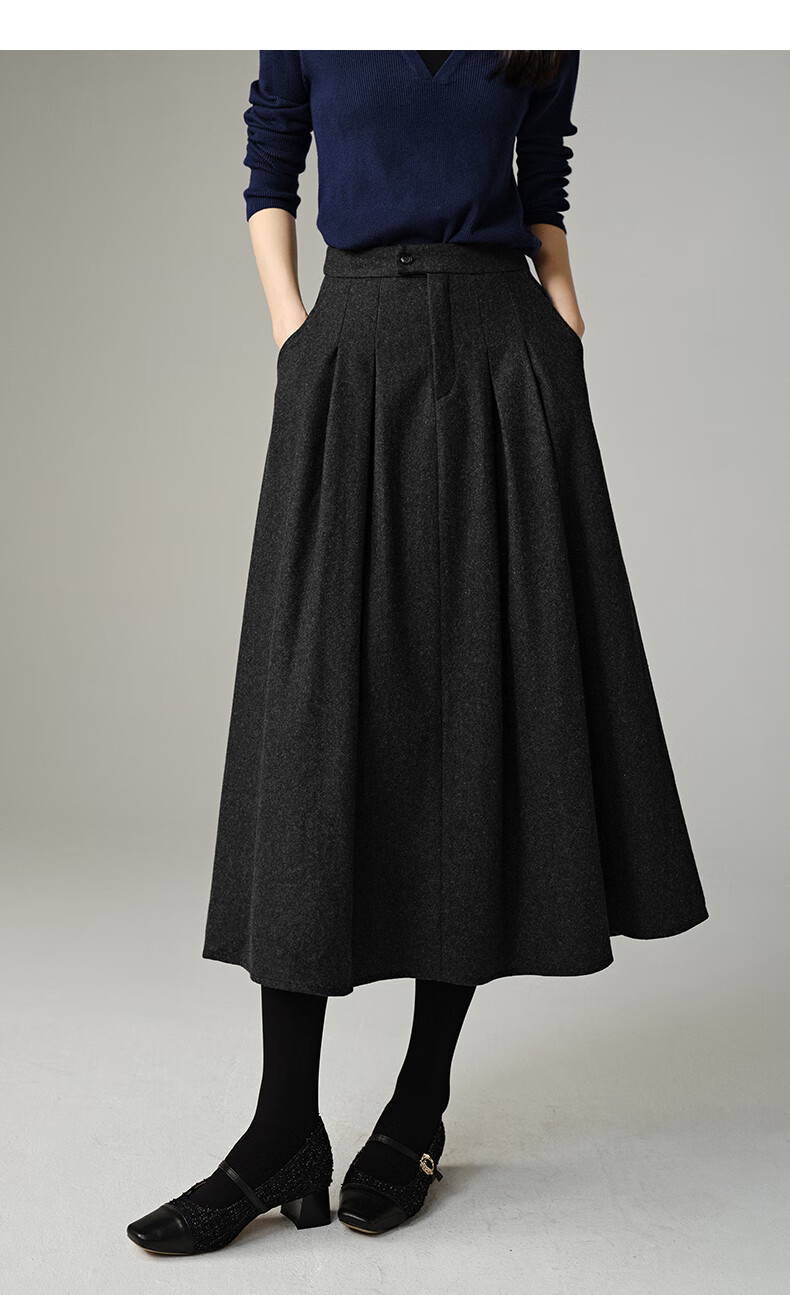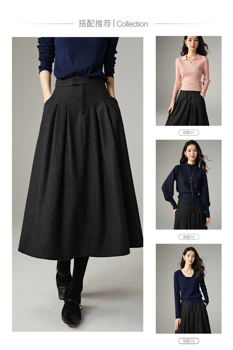 晚白【新品】冬款时尚半裙休闲高腰羊毛大摆半身裙【不含腰带】 深灰色 S