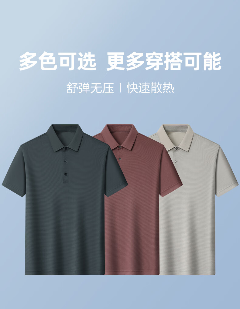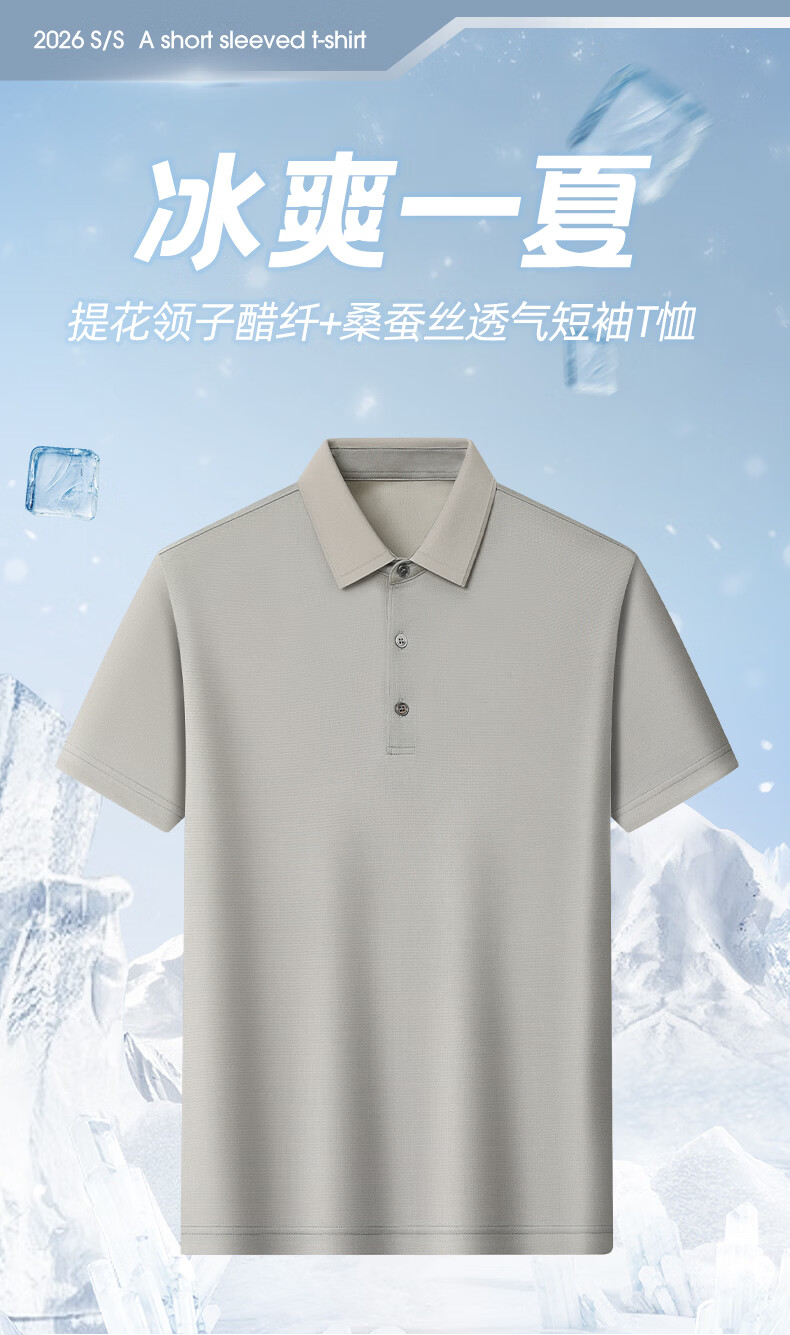 SHANSHAN杉杉【桑蚕丝+醋酯】短袖T恤男夏季新款商务休闲男士Polo打底衫 红色 S /165