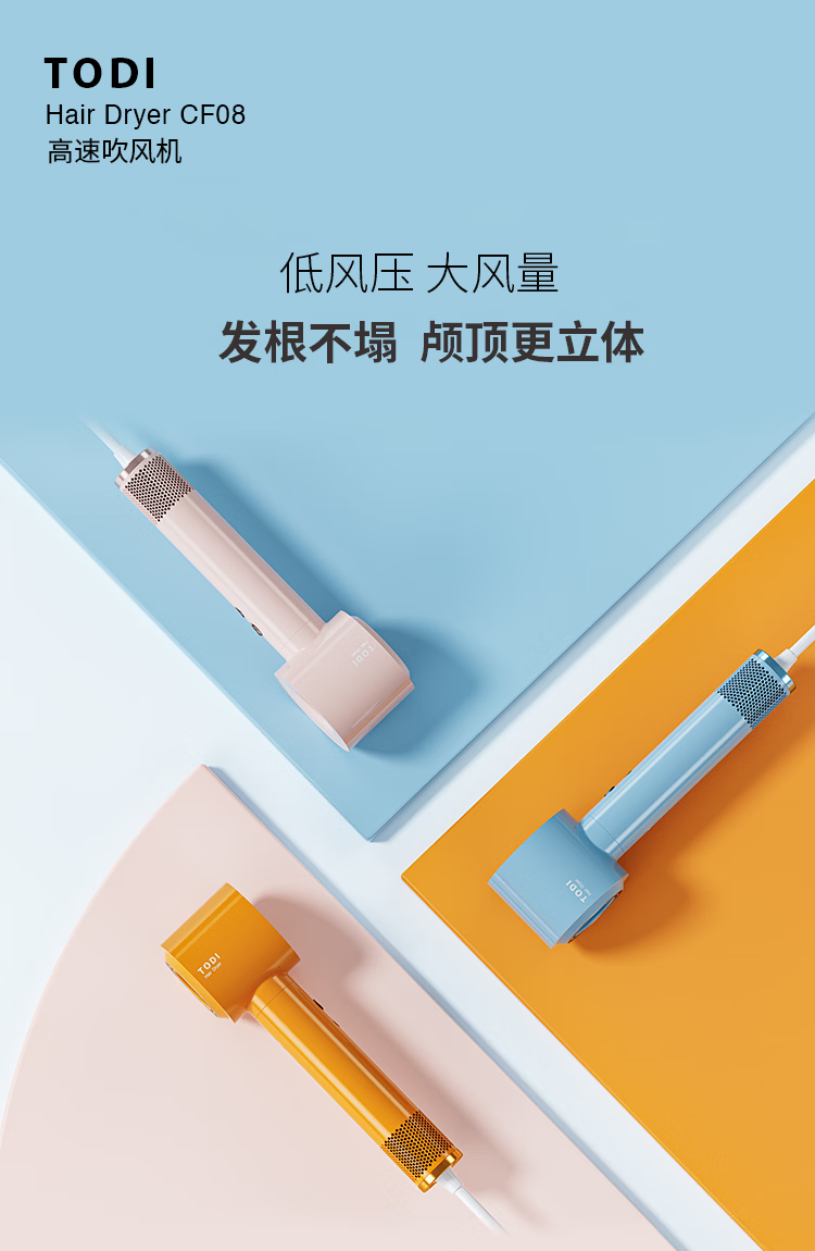 TODI汤迪高速吹风机舒适风轻巧速干负离子电吹风 家用大功率吹风筒 生日礼物送女友 千寻橙